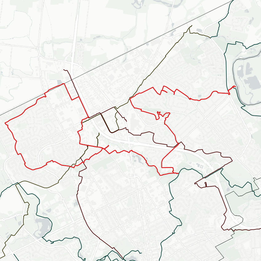 Behind a community centre and under the ION. Through some interesting woods to Albert Street.