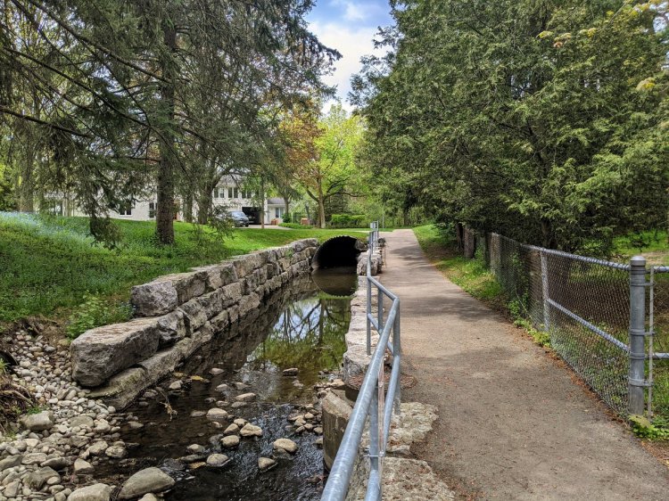 Next up is Blair Creek. It has a large catchment, though much of it is rural. Even calling this lower reach “urban” is a stretch. Nonetheless, you can find its confluence with the Grand River along the Great Trunk Trail, near the Blair Road / Fountain Street roundabout.