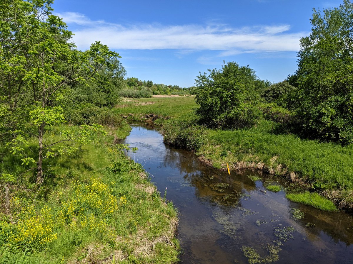 Views of the creek itself are limited, it’s one that’s buried in tall wetland vegetation, and the trail is off to the side of it all. And that’s fine. As long as I am walking on a parallel offroad trail in the riparian zone, I’m happy.