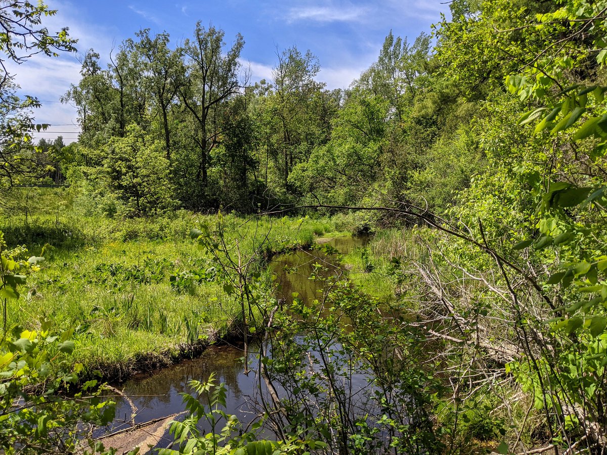Some definition to the creek, but it’s lost in thick wetland again. Eventually makes its way to Doon Creek north of Robert Ferrie Drive.