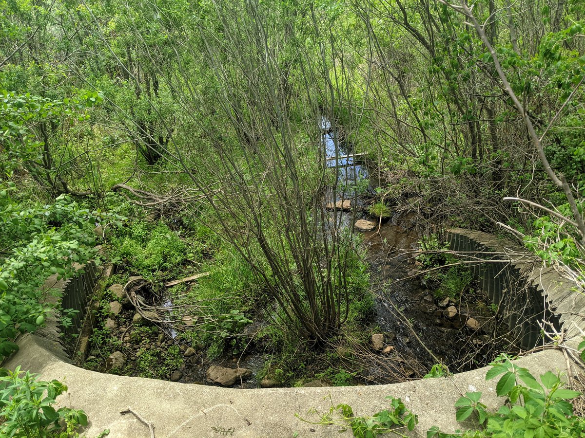 The creek does a funny thing, going under Fountain twice and around the roundabout before going west under Blair Road. There a neat stone arch here.