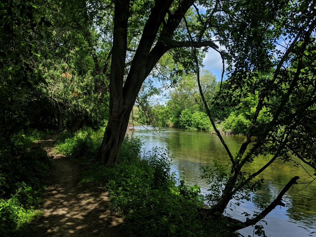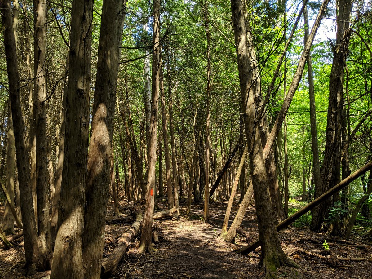 This trail is 10/10. Nice, cool and shady, defined with pretty good clear zone, and excellent views of the river. Hats off to the Guelph Hiking Trail Club, who maintains this trail and gets it established with private landowner consent.