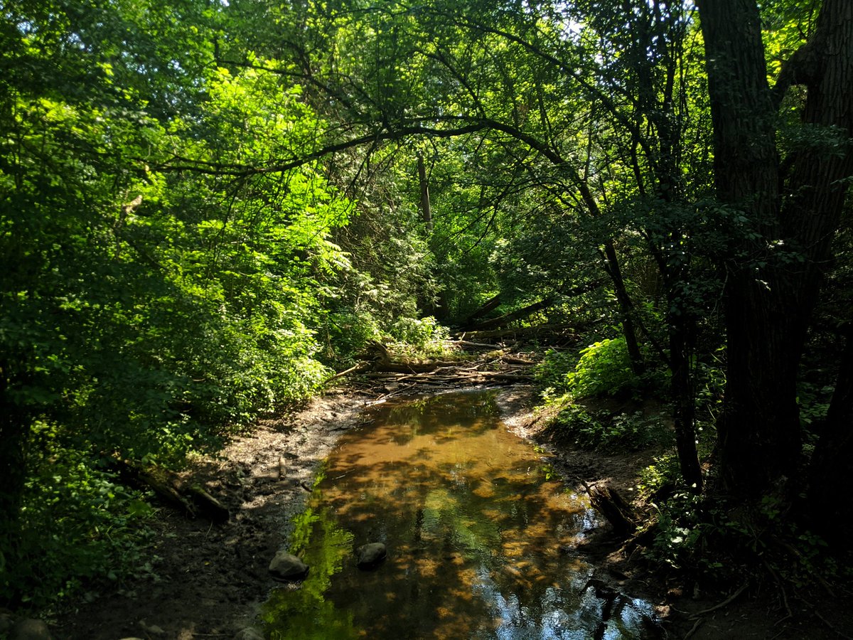 A bit of backtracking to start, I must get to Niska Road to cross onto the west shore. No complaints, a beautiful forest, good views, and even a small tributary draining stormwater from Stone Road. A detour is required to get past the wetlands around the Hanlon Creek confluence.