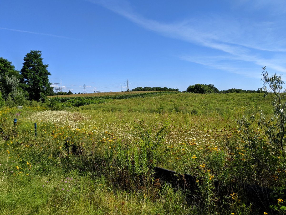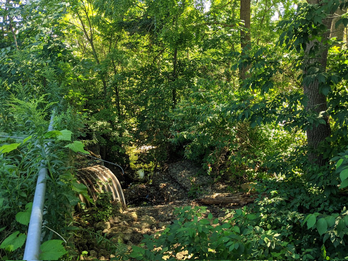 Round the outside until you parallel Highway 8. Some more woods, and then a brief look at the creek where it pops out of a culvert from under the highway. Pretty stagnant, which is expected given this year’s weather, but also because there’s nothing upstream to provide baseflow.