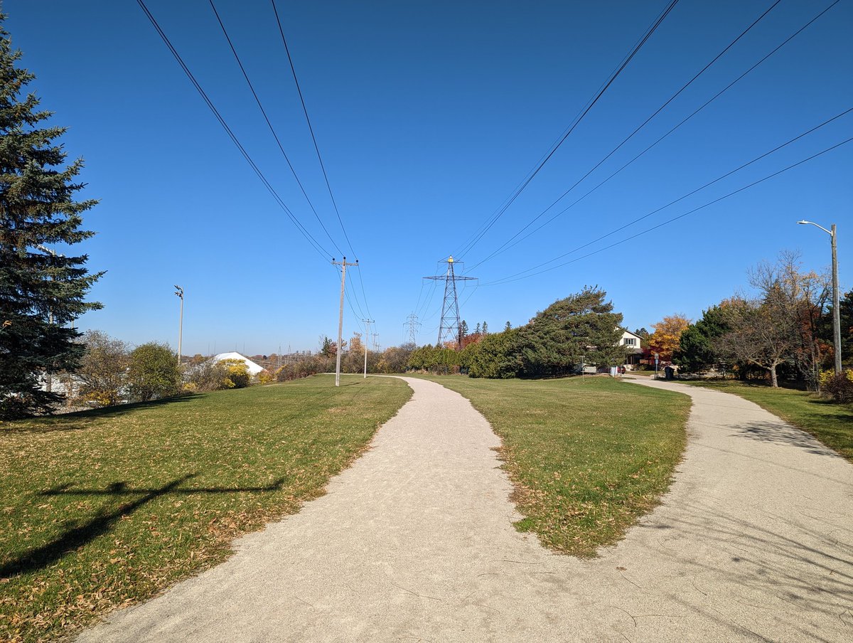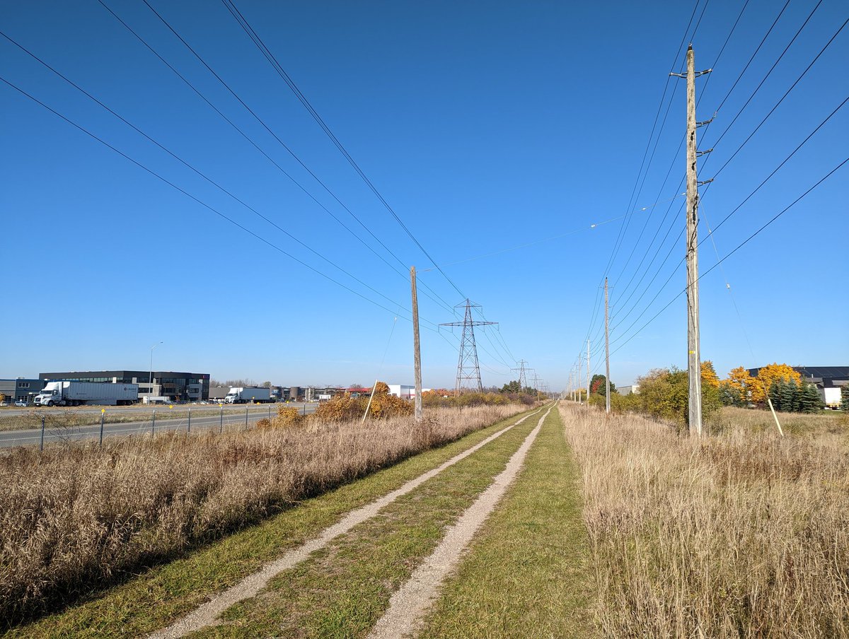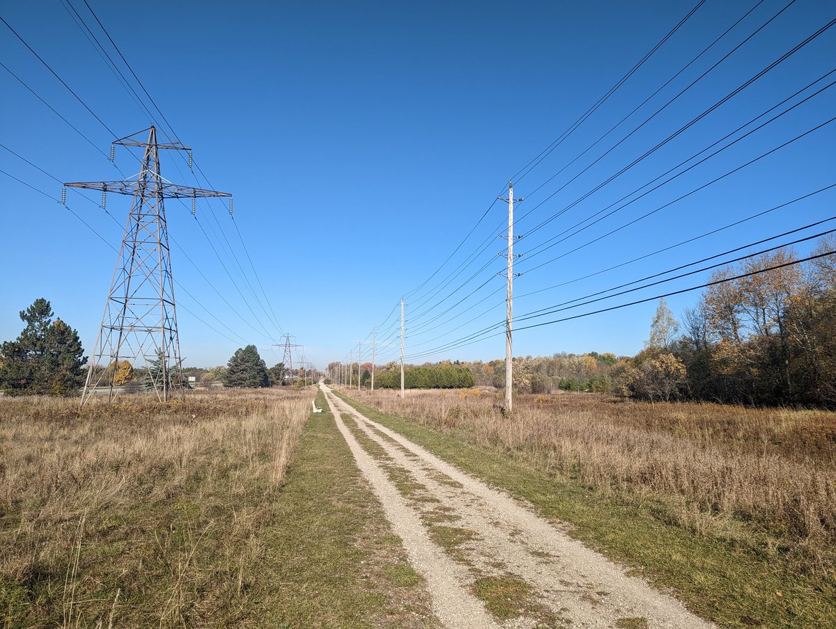 Like many other hydro corridors, this is actually a shared utility right-of-way. So as the hydro lines split off to the northeast here, there’s local hydro distribution, a natural gas pipeline and telecom wires that continue straight. I’m continuing on the latter for a bit.