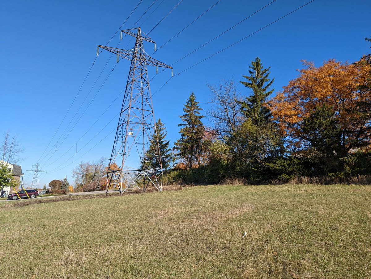 West of the transformer station, there’s technically a branch here. The pair of towers stick together across Highway 6 and through the wastewater treatment plant. Unfortunately there’s no River crossing between Edinburgh and Niska Road, so a very large detour is required.