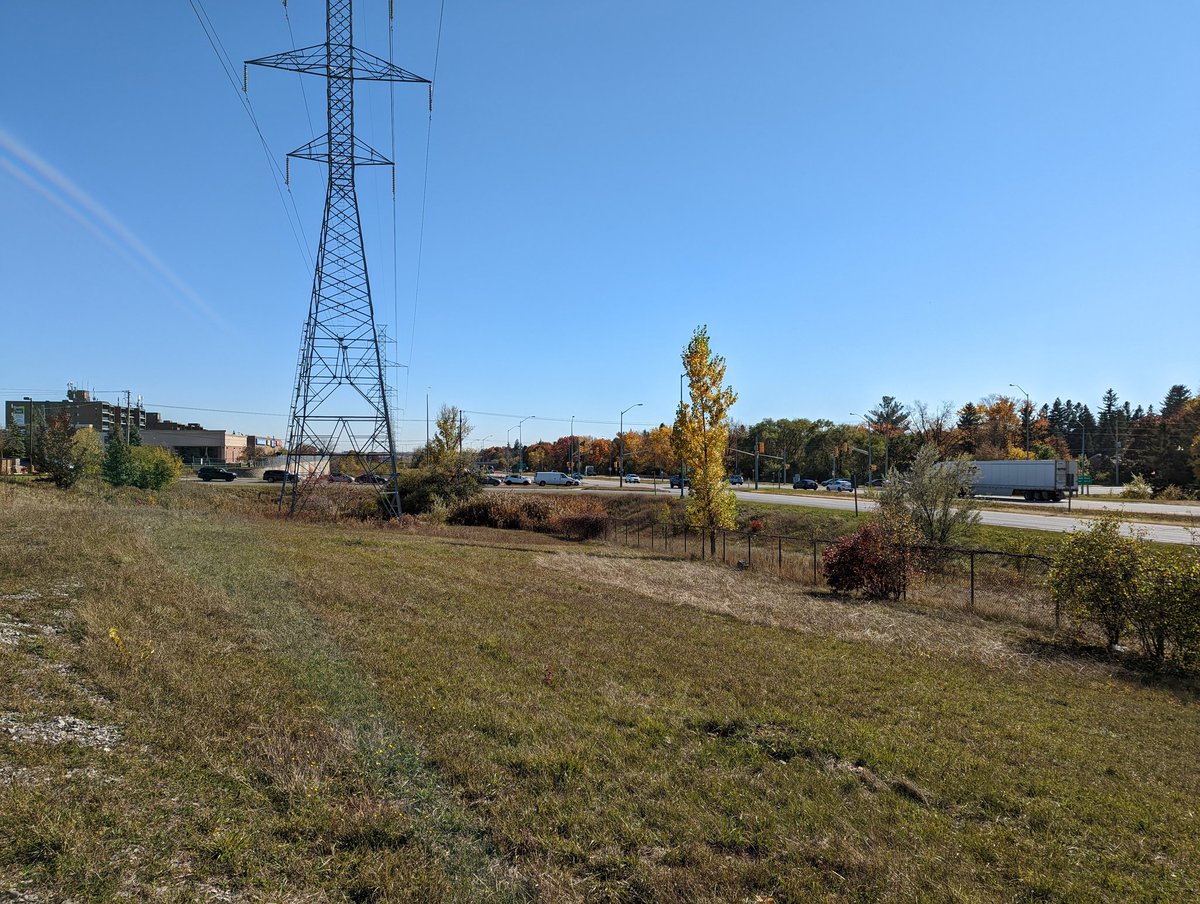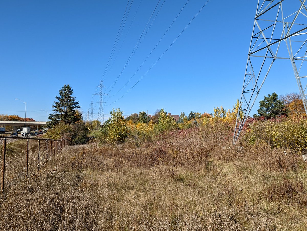 This open park space is one of those eerie old abandoned roads, terminating in a cul de sac just south of Stone Road. A natural gas station sits here, I imagine it will need to relocate for the expressway grade separation too. Back to the hydro corridor north of stone.