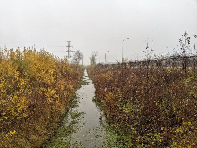 After a beautiful but still irritating 2km detour along the Speed River between Highway 6 and Edinburgh Road and mouth of Willow Creek, we come back to the hydro corridor at the wastewater treatment plant.
