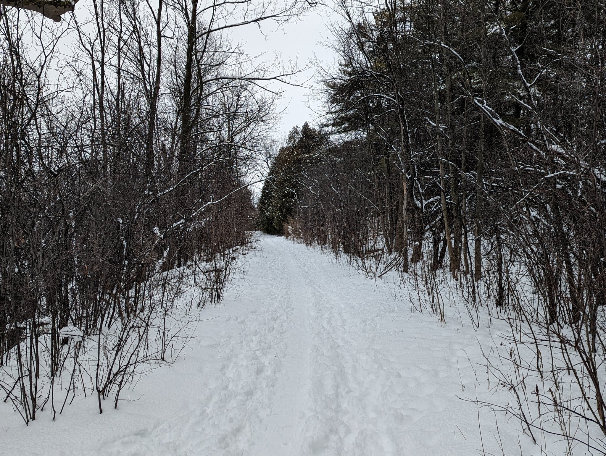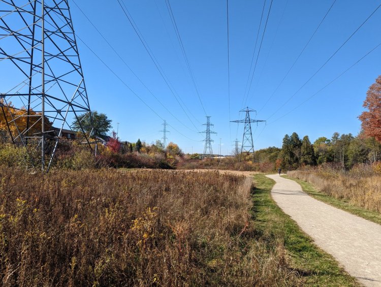 A lovely trail atop the local shale outcrop takes you to the trestle over the Eramosa River. You then come down parallel with the tracks, as the outcrop rises to the west.