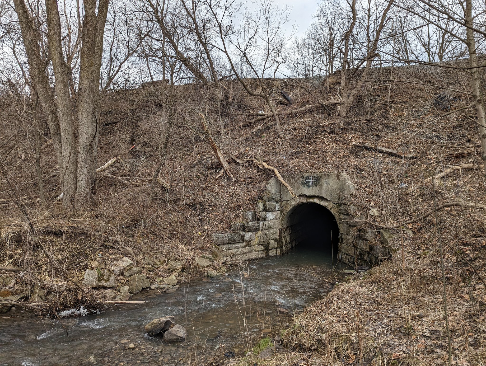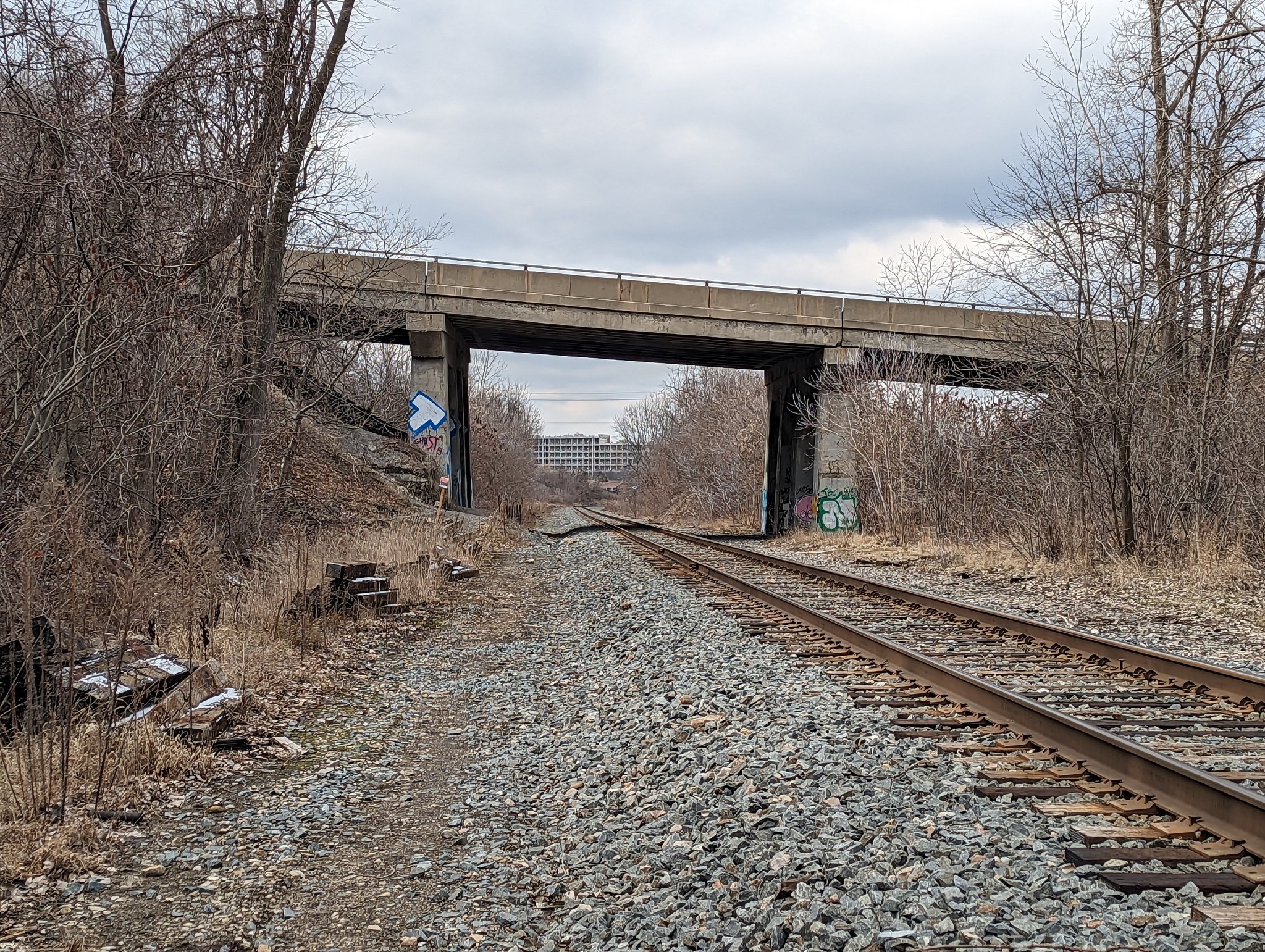 I assumed the tracks rode a wide enough cut that it was on grade the whole time. Guess that was a bad assumption, found this curious bridge structure south of Green Road.