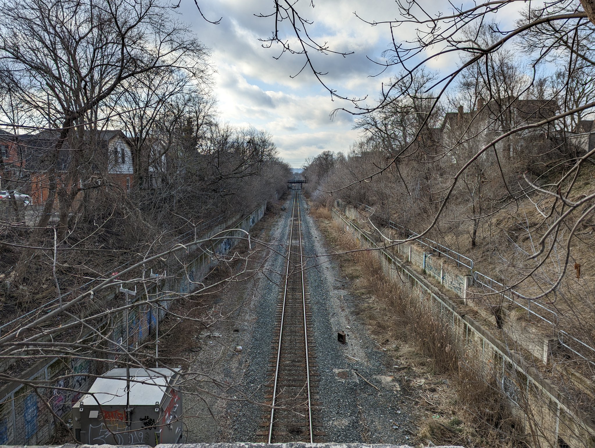 Through Red Hill Valley, the escarpment is no factor for the tracks. They sever a hydro corridor west of Cochrane Road, an active transport crossing here would be a hard sell given the road’s so close.