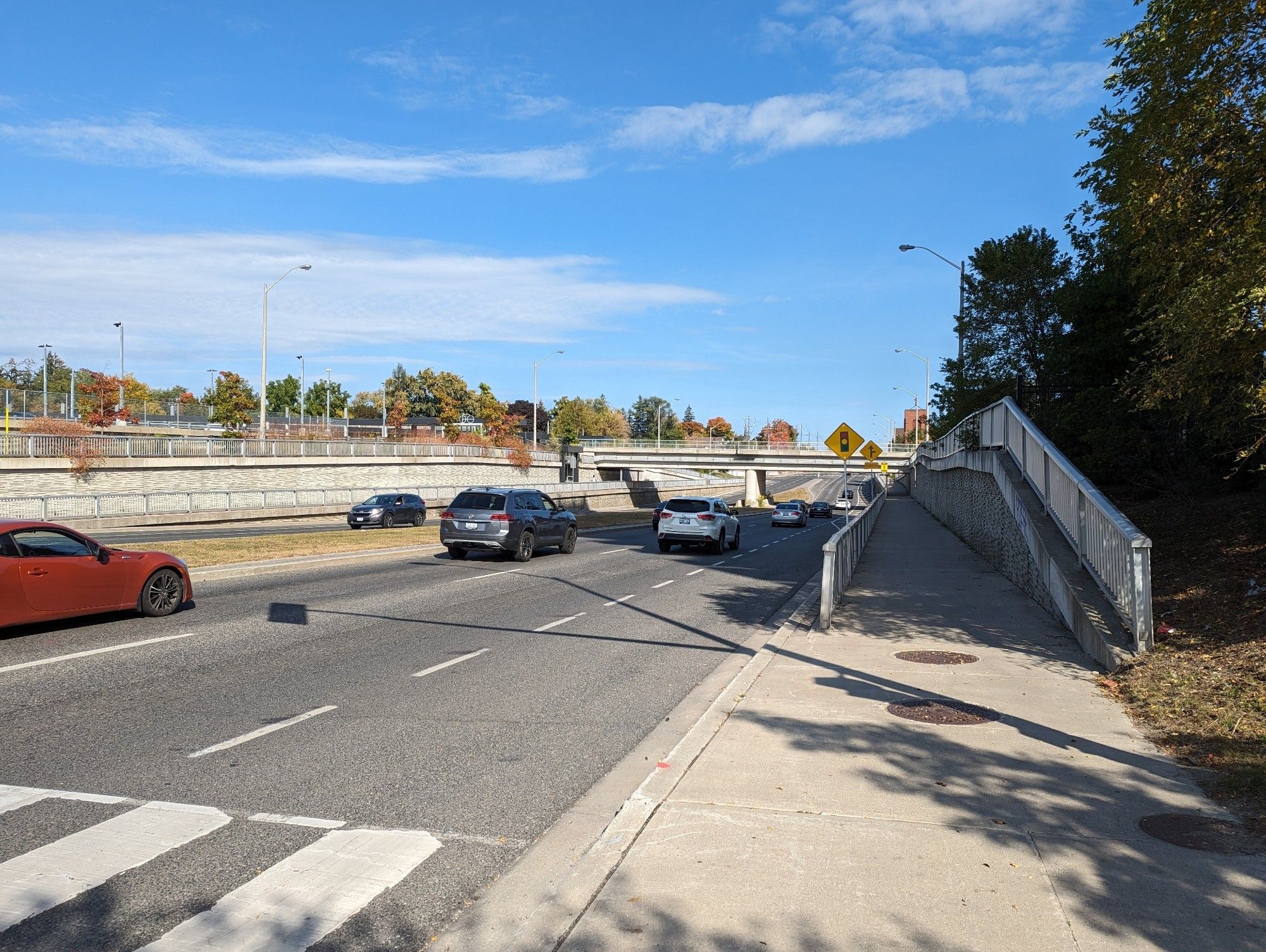Going north takes you on the west side of the shared GO / TTC / hydro corridor. Makes a scenic connection to the Meadoway / Gatineau hydro corridor. Unfortunately it does not look like there’s a good connection up to Lawrence, so a detour is required.