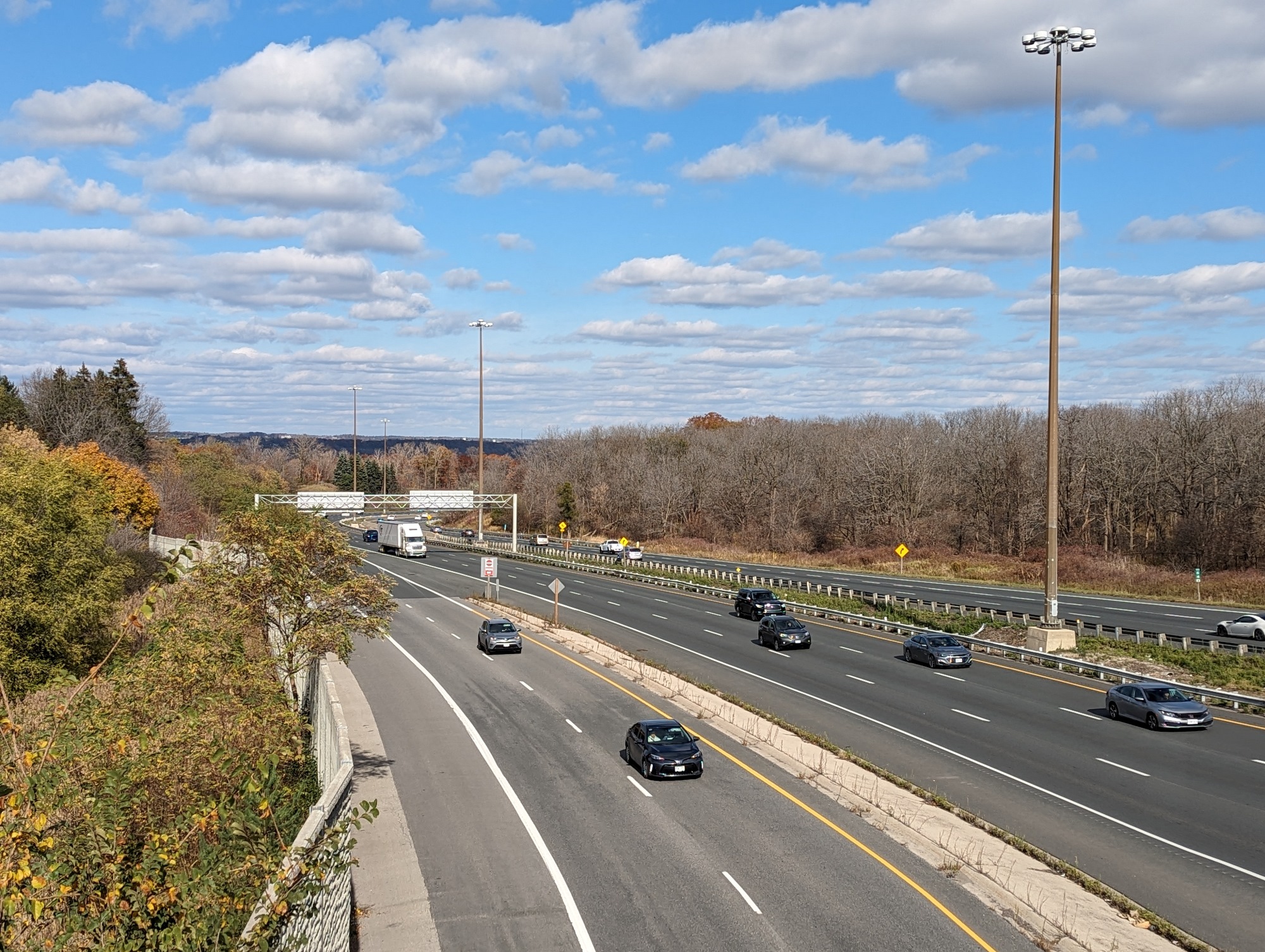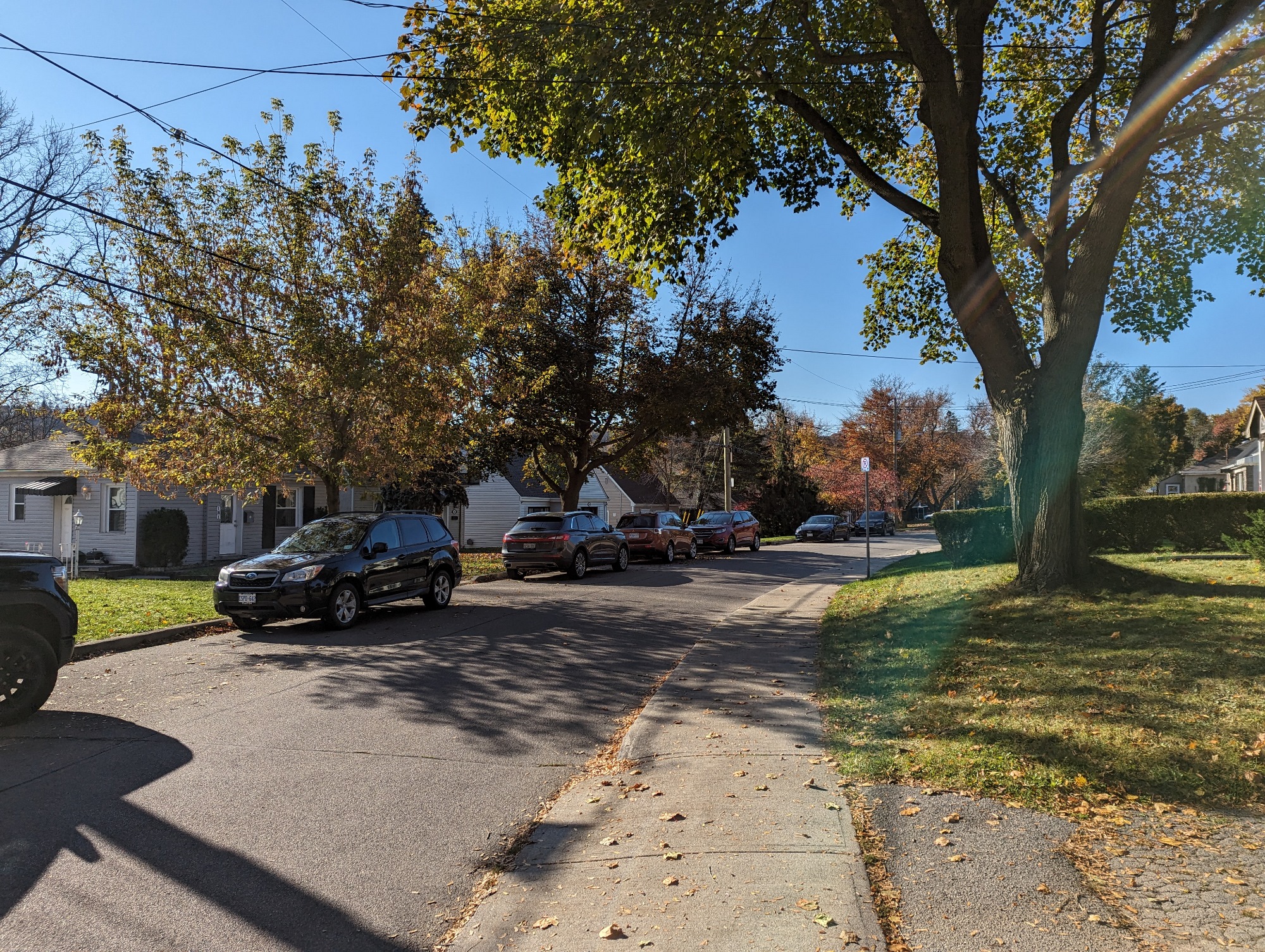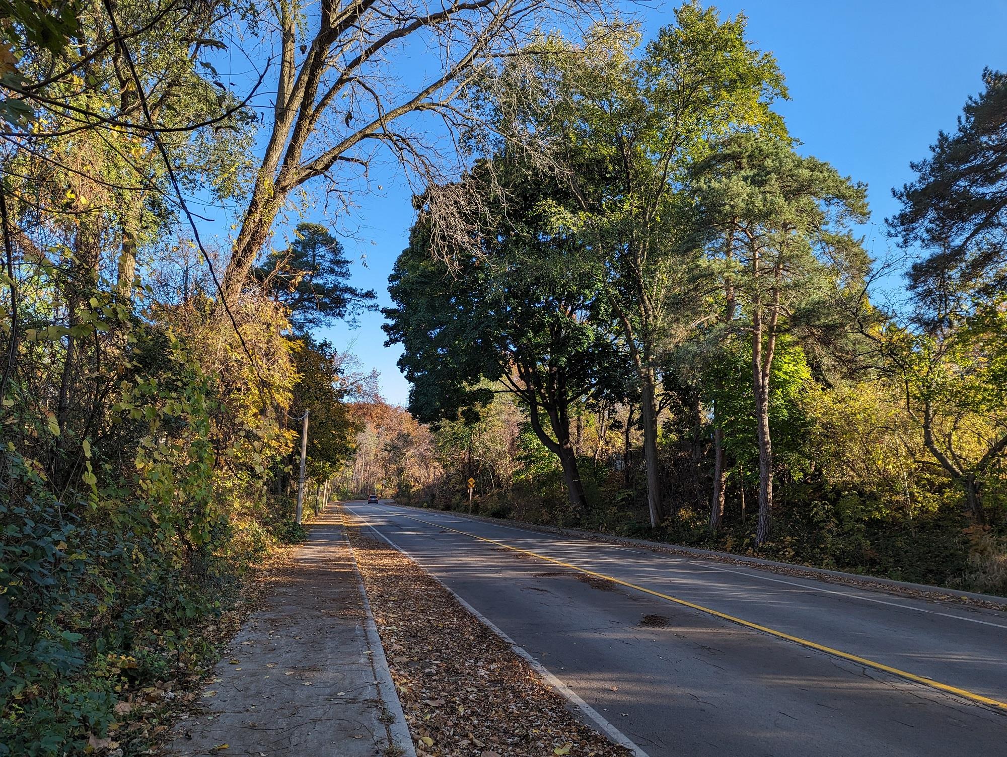 There’s no sidewalk and unprotected bike lanes along the next stretch of Scenic Drive, which is baffling. Anyway, Upper Chedoke Falls is a straight down view from the roadside.