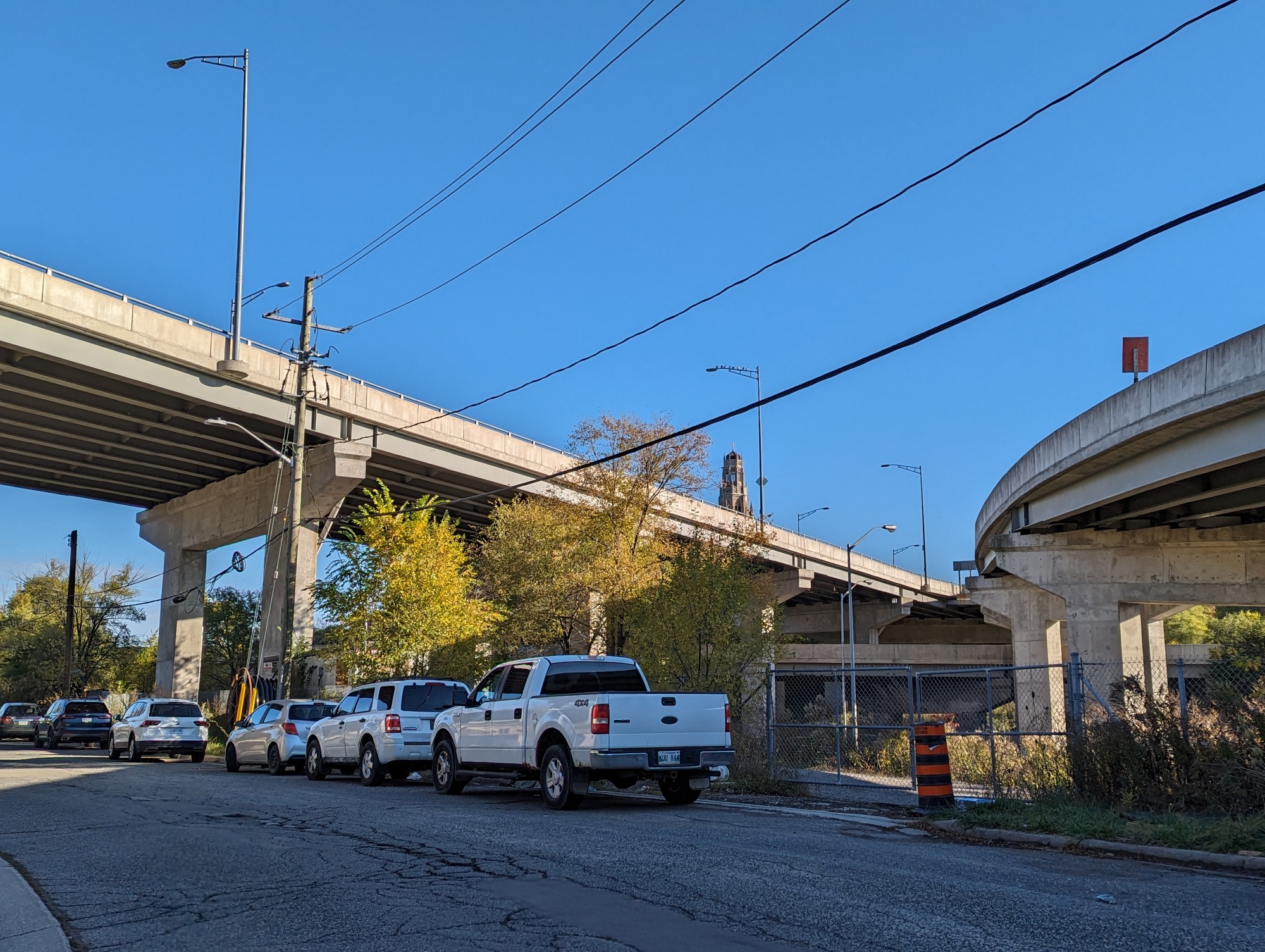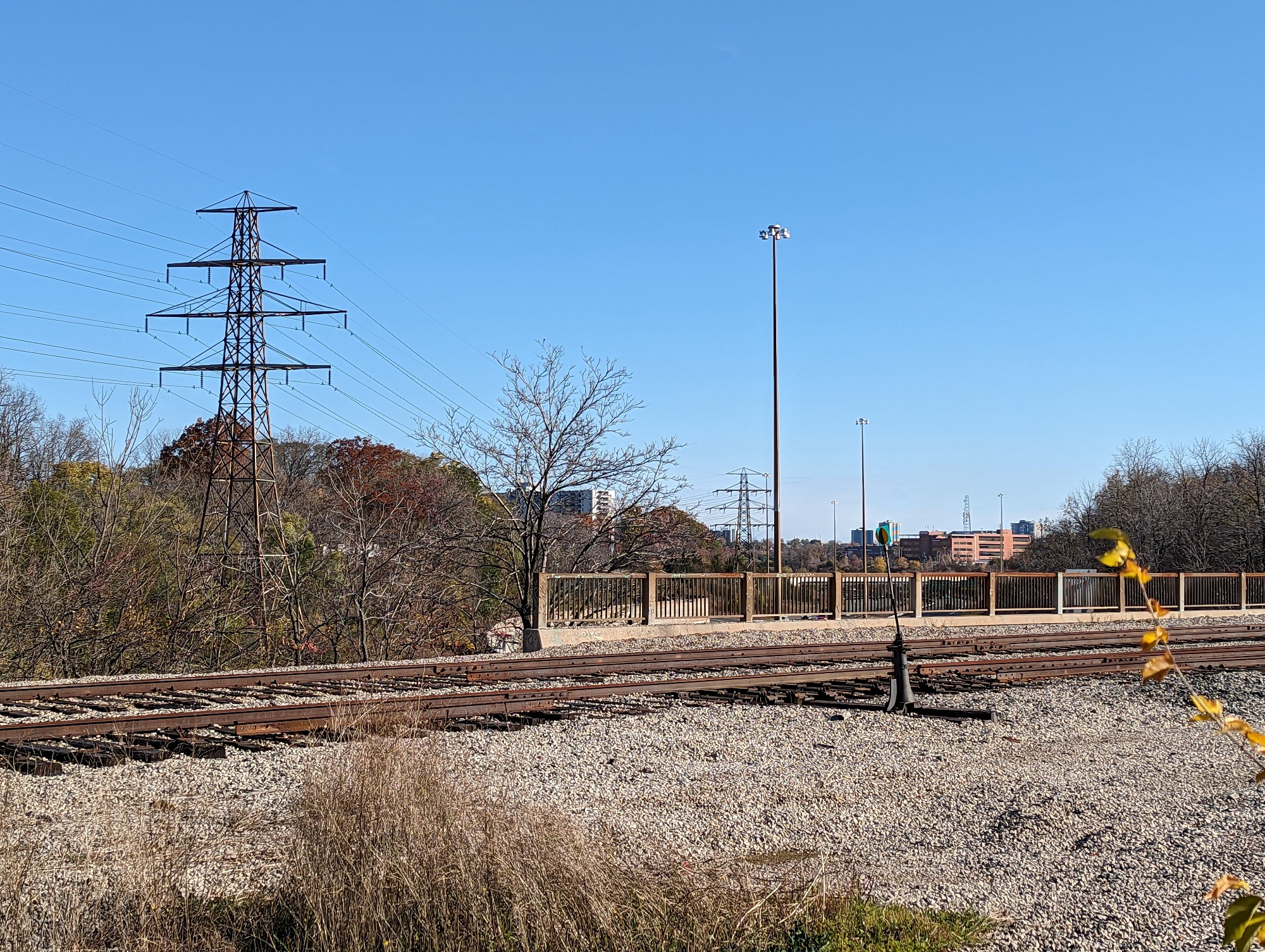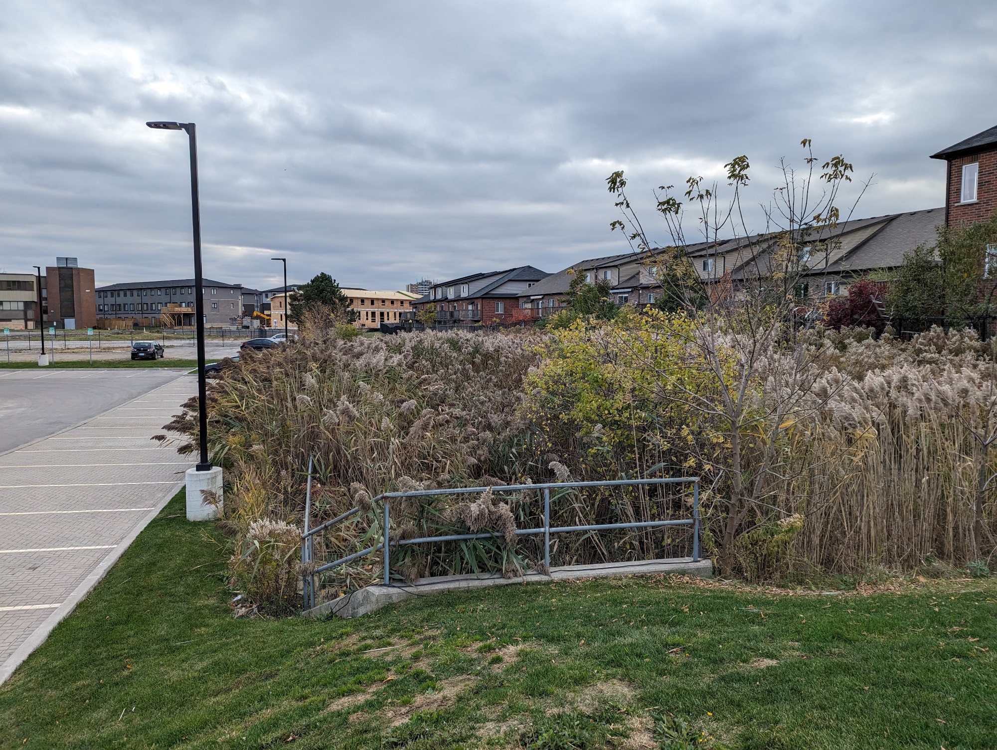 No access to the valley until Stroud Park, where it meets the Hamilton – Brantford Rail Trail. North of the tracks, the creek comes back north of the highway in a concrete channel, but by this point, it’s buried again. The culvert follows the hydro corridor, but we’ll come back to that shortly.