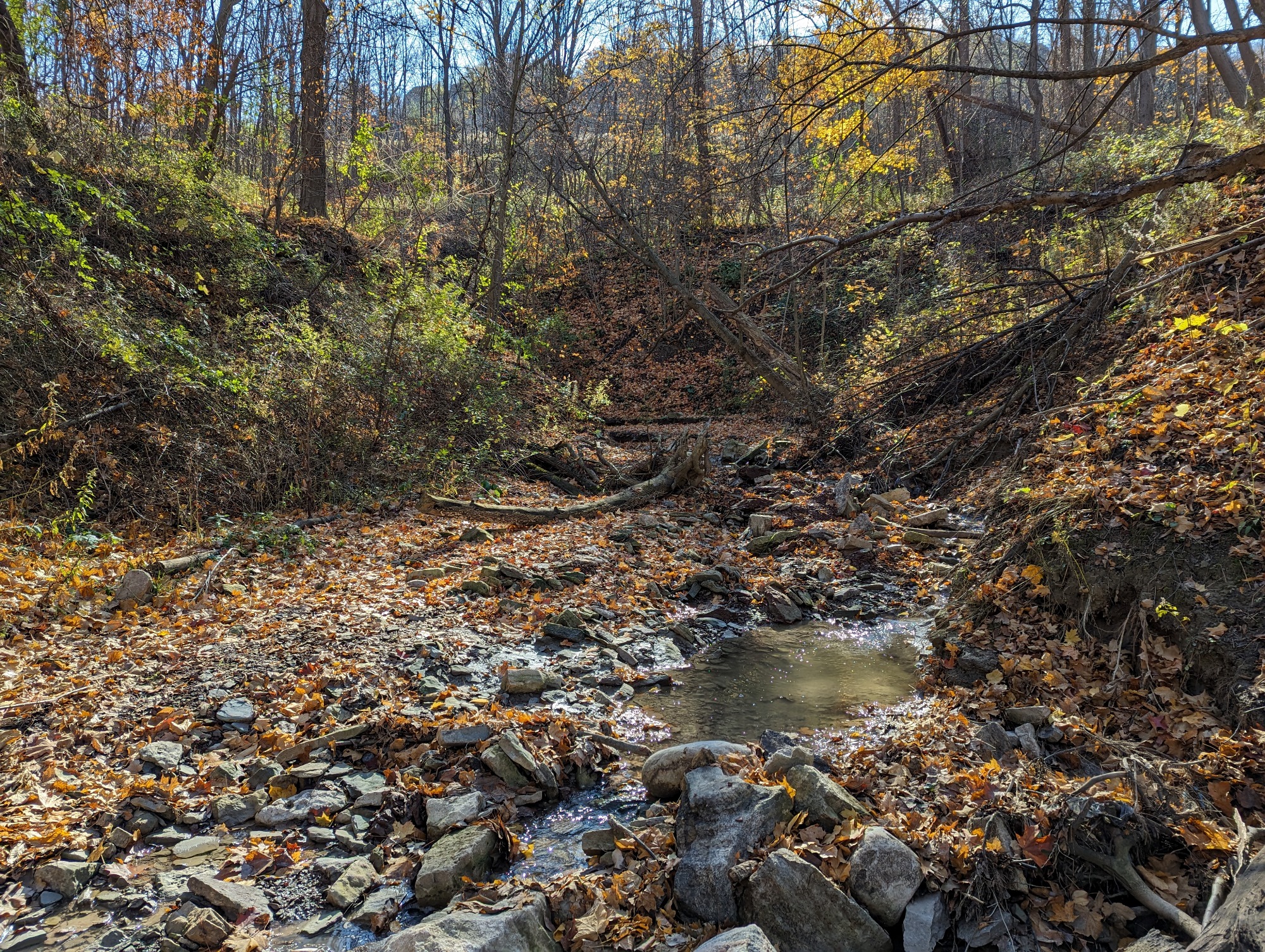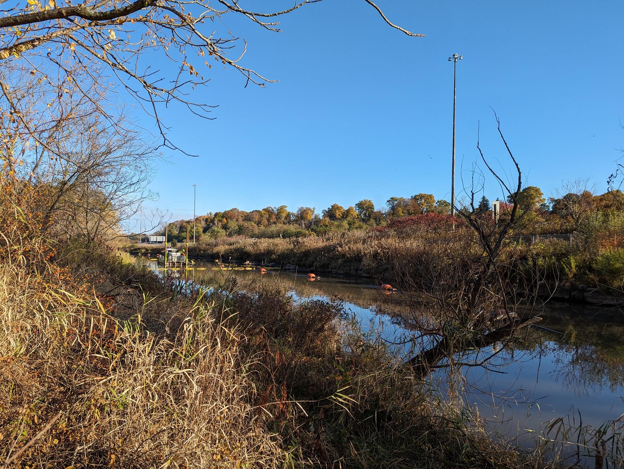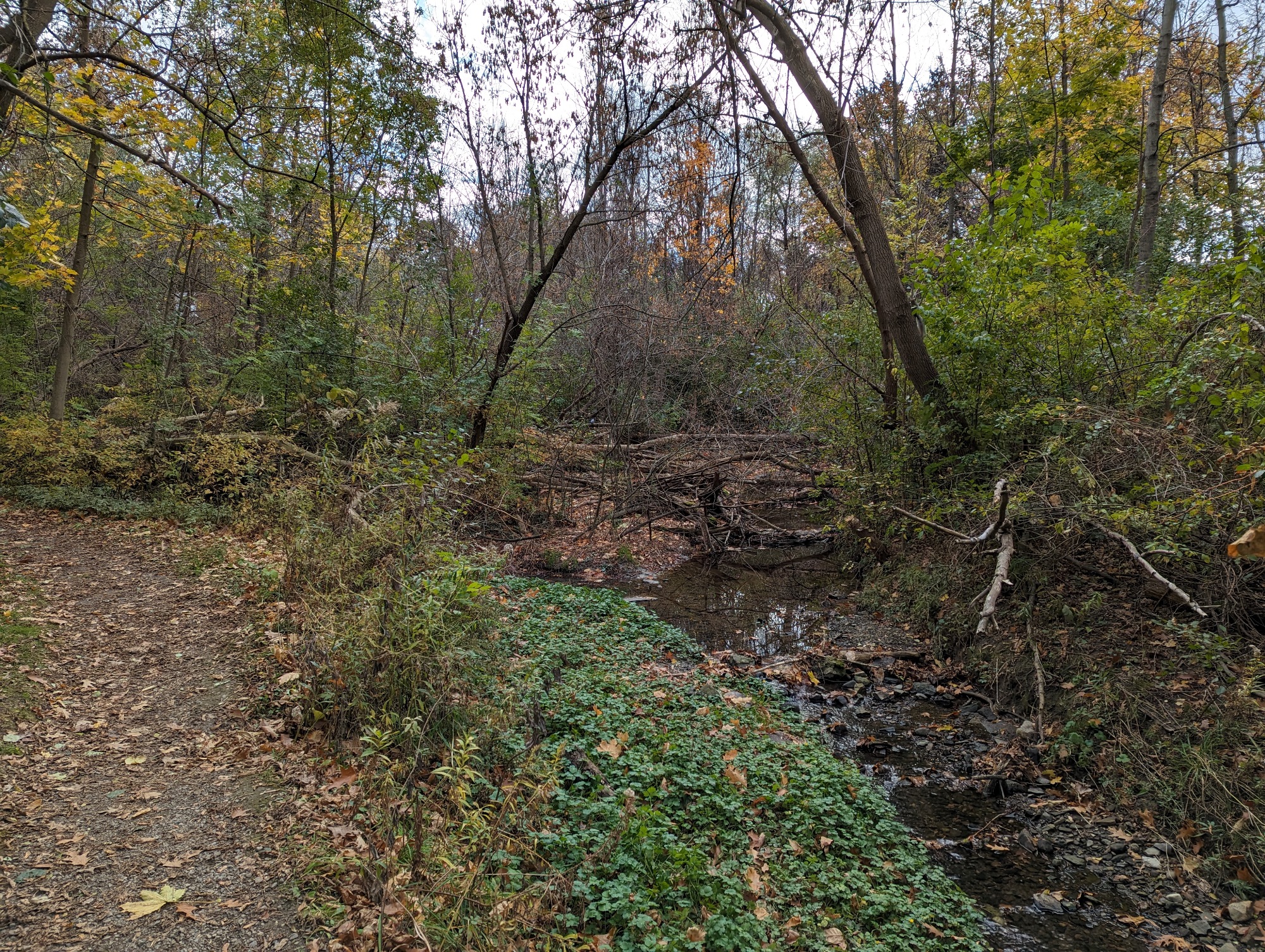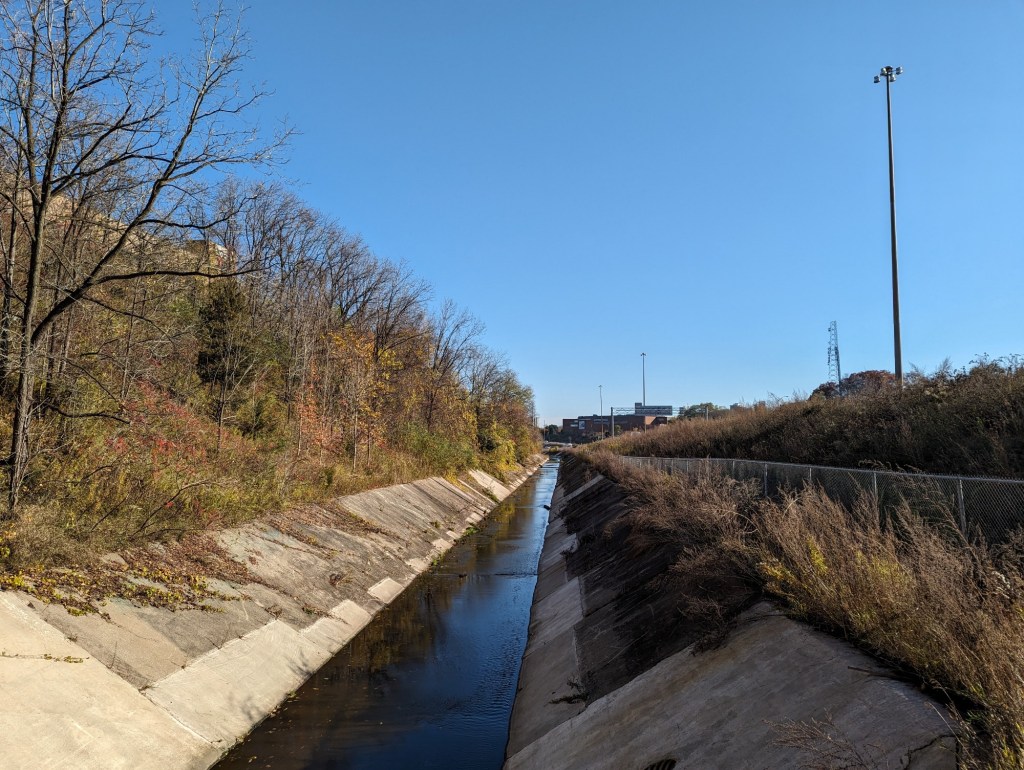The lower reach of Chedoke is a mess still from a large multi-year sewage spill. Some dredging work is currently happening in targeted spots. There’s still a decent footpath open beside it until the west access to Kay Drage Park. Then the creek is fenced off.
