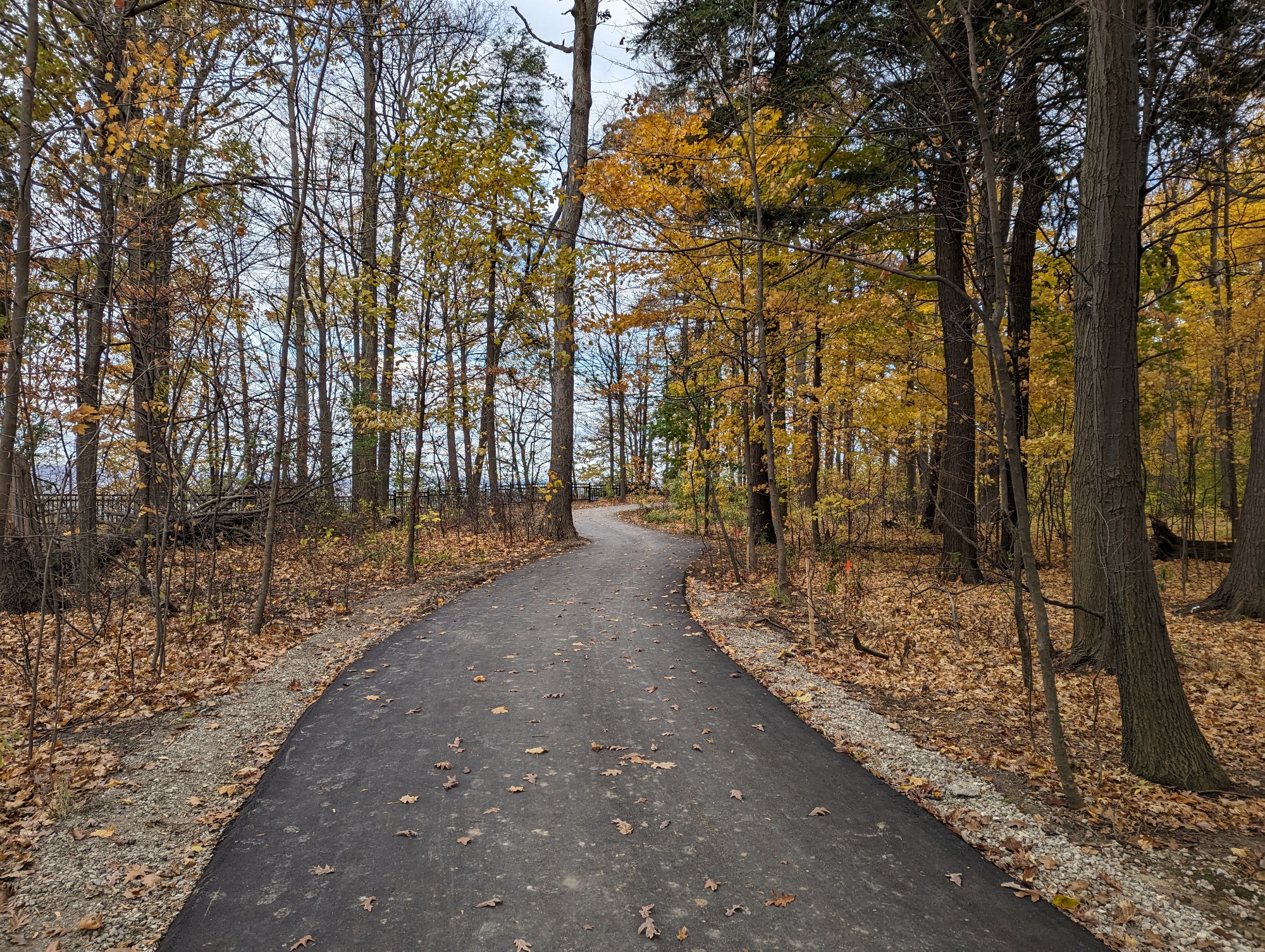 The Escarpment Rail Trail leads you through the Iroquois Heights Conservation Area to Scenic Falls. They’re only scenic if you clamber up and down the slope. Then there’s Princess Falls. There’s upper and lower portions, but you can only get a good look at the lower portion from the 403.