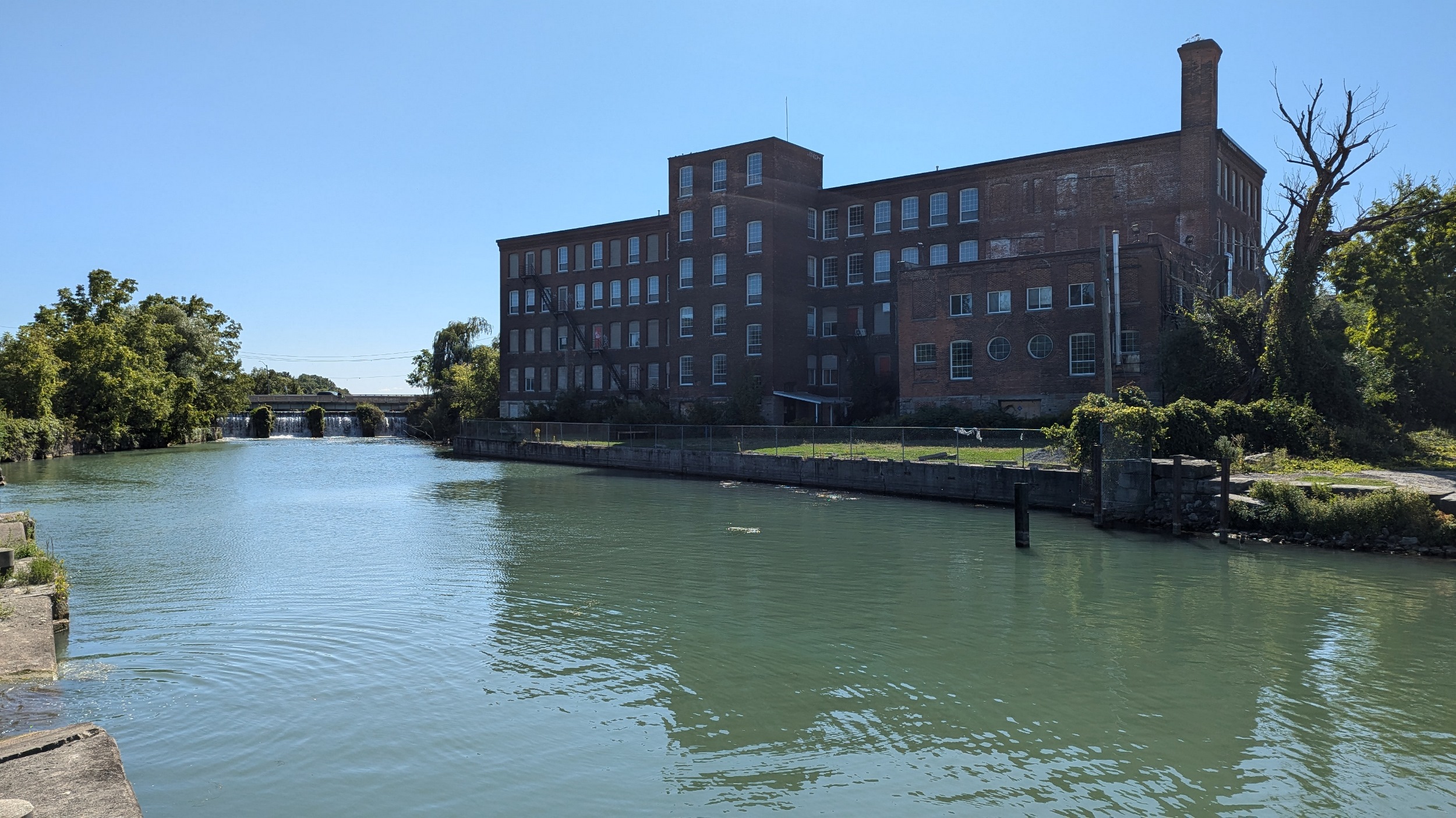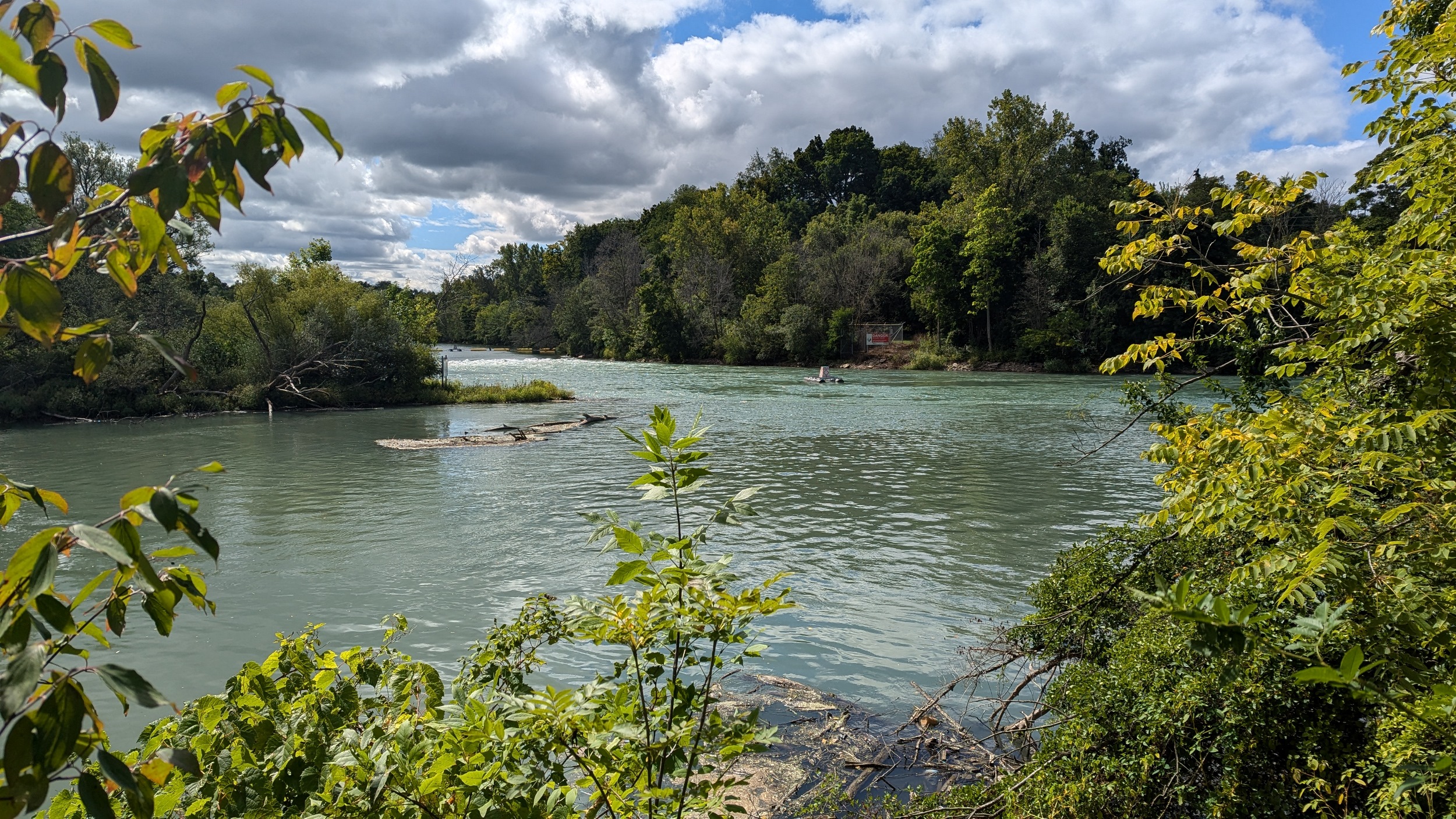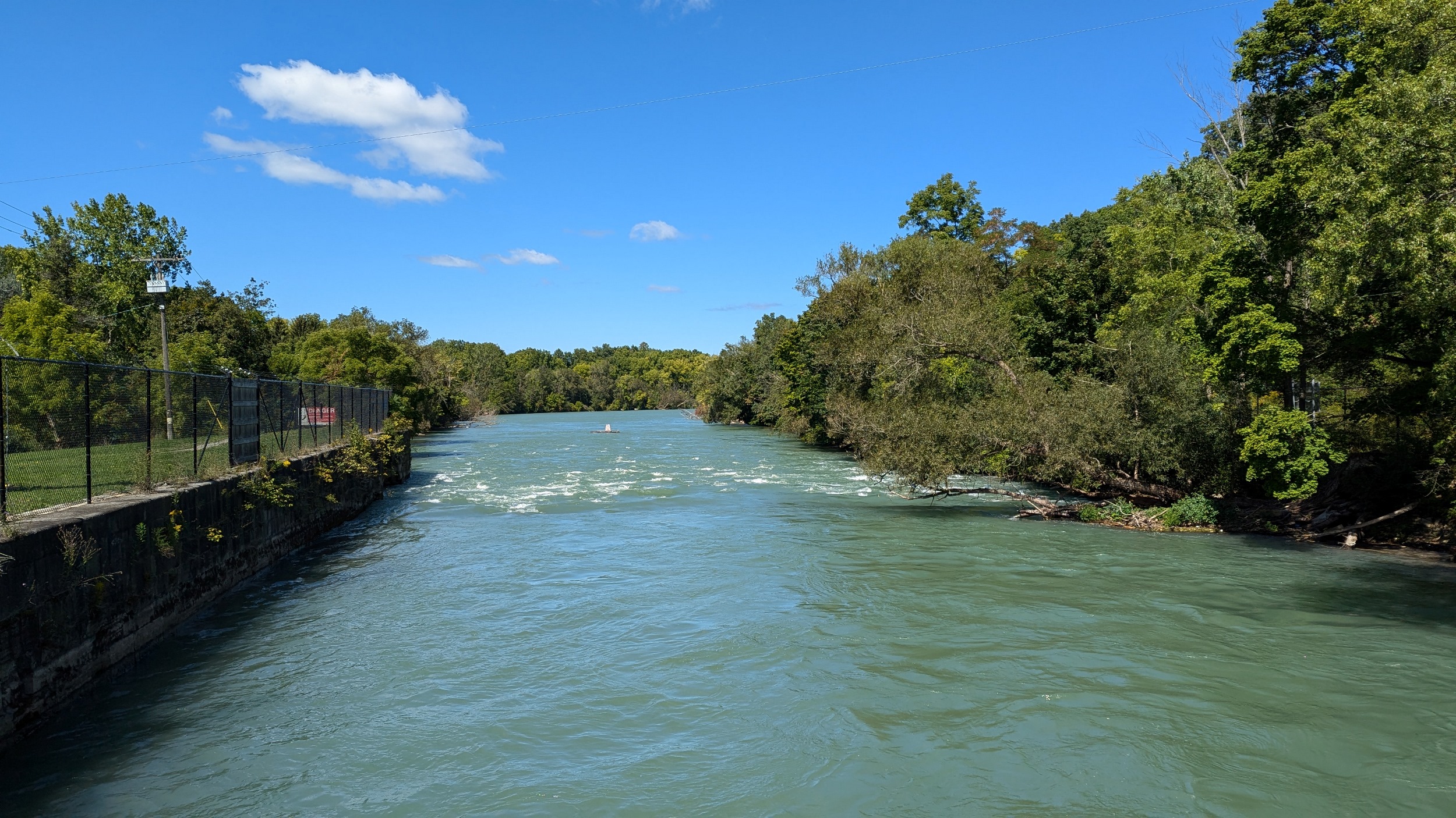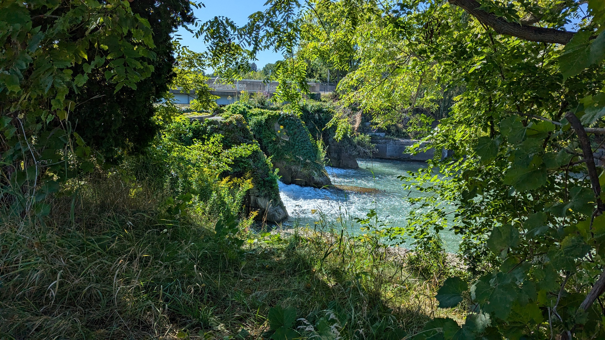 Under Fourth Avenue, you hit a dead end, and get rerouted around “Welland Vale Island”. This stagnant ditch is all that separates it. Back to the river, which is whipping fast over another weir. Hard to convey how strong this current is without video.