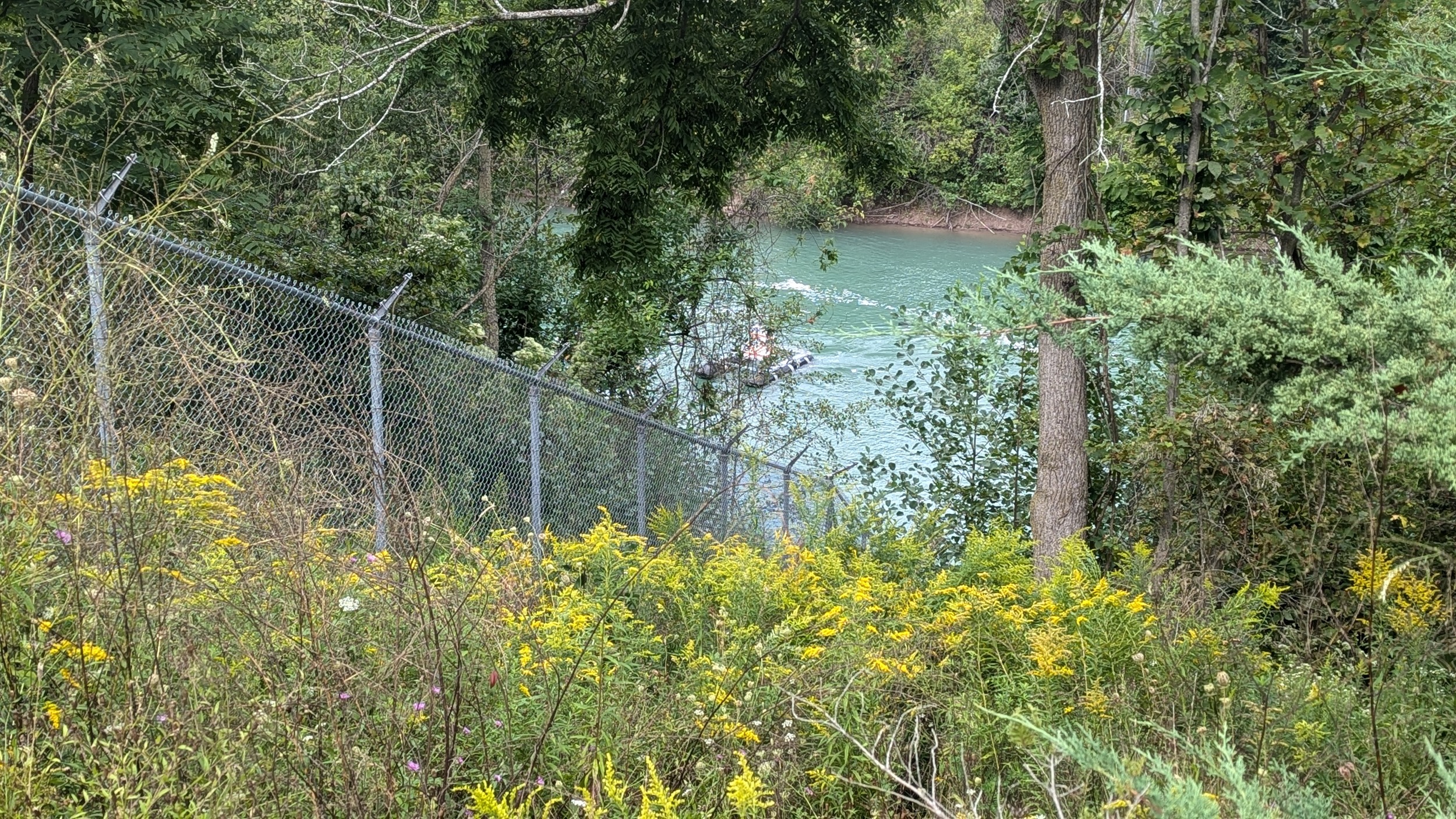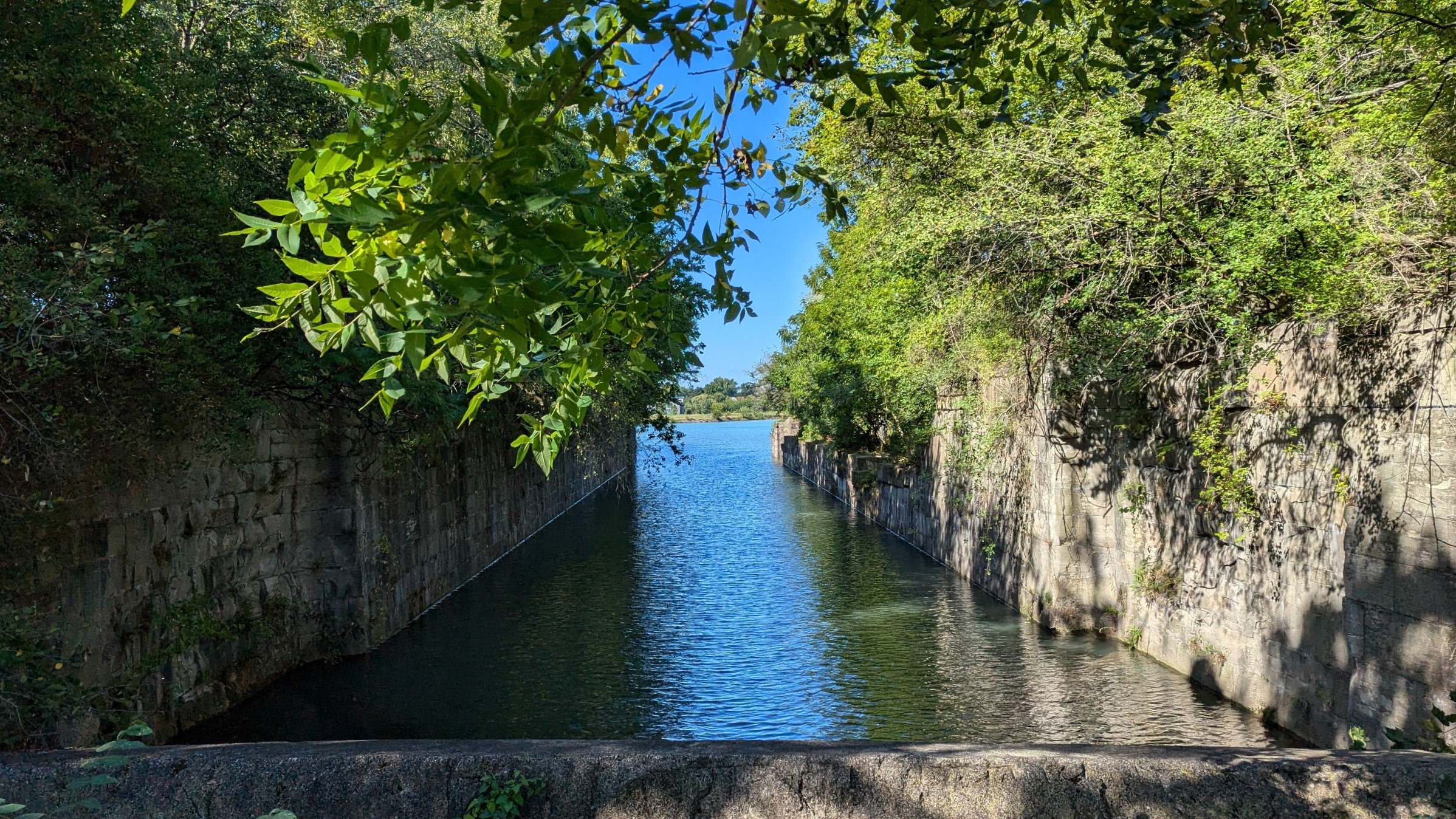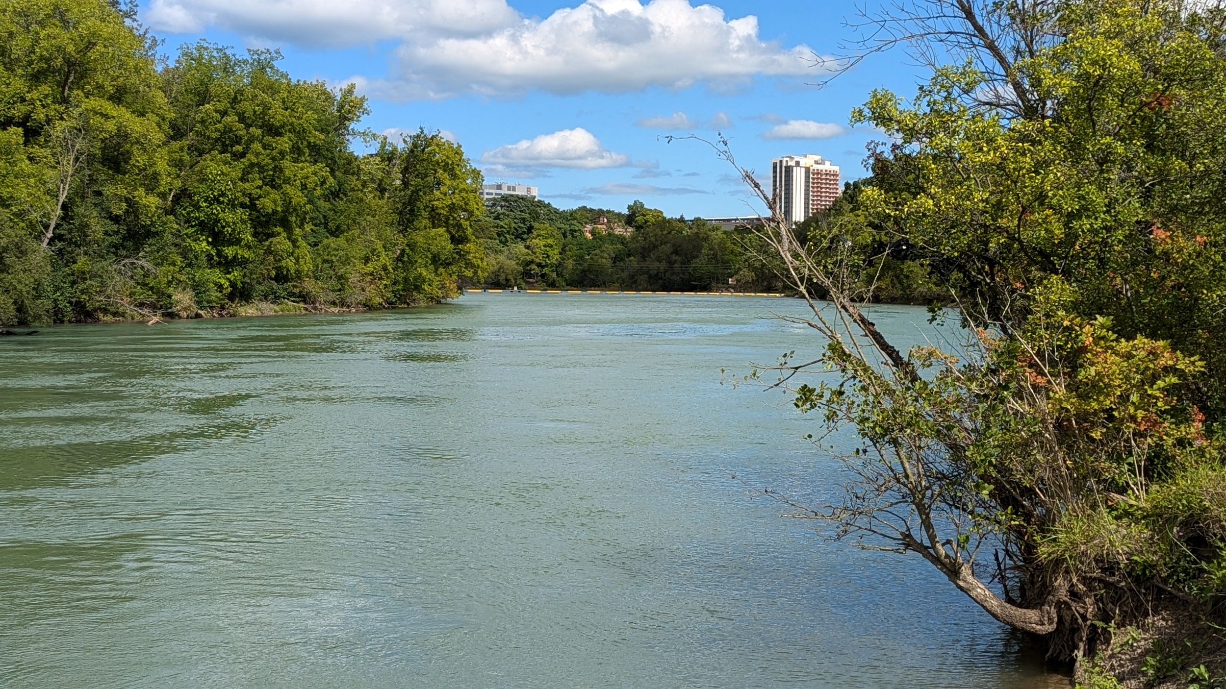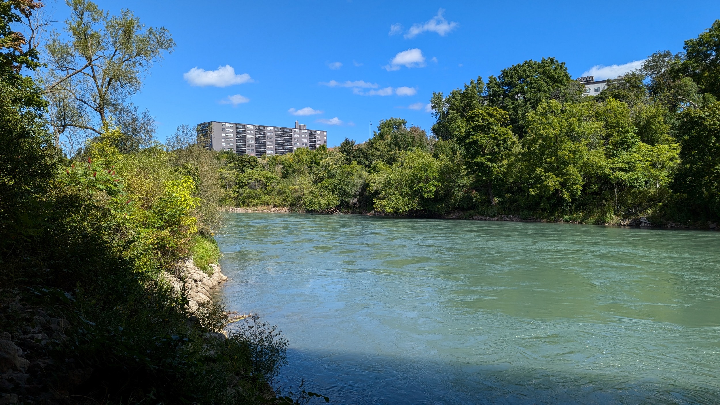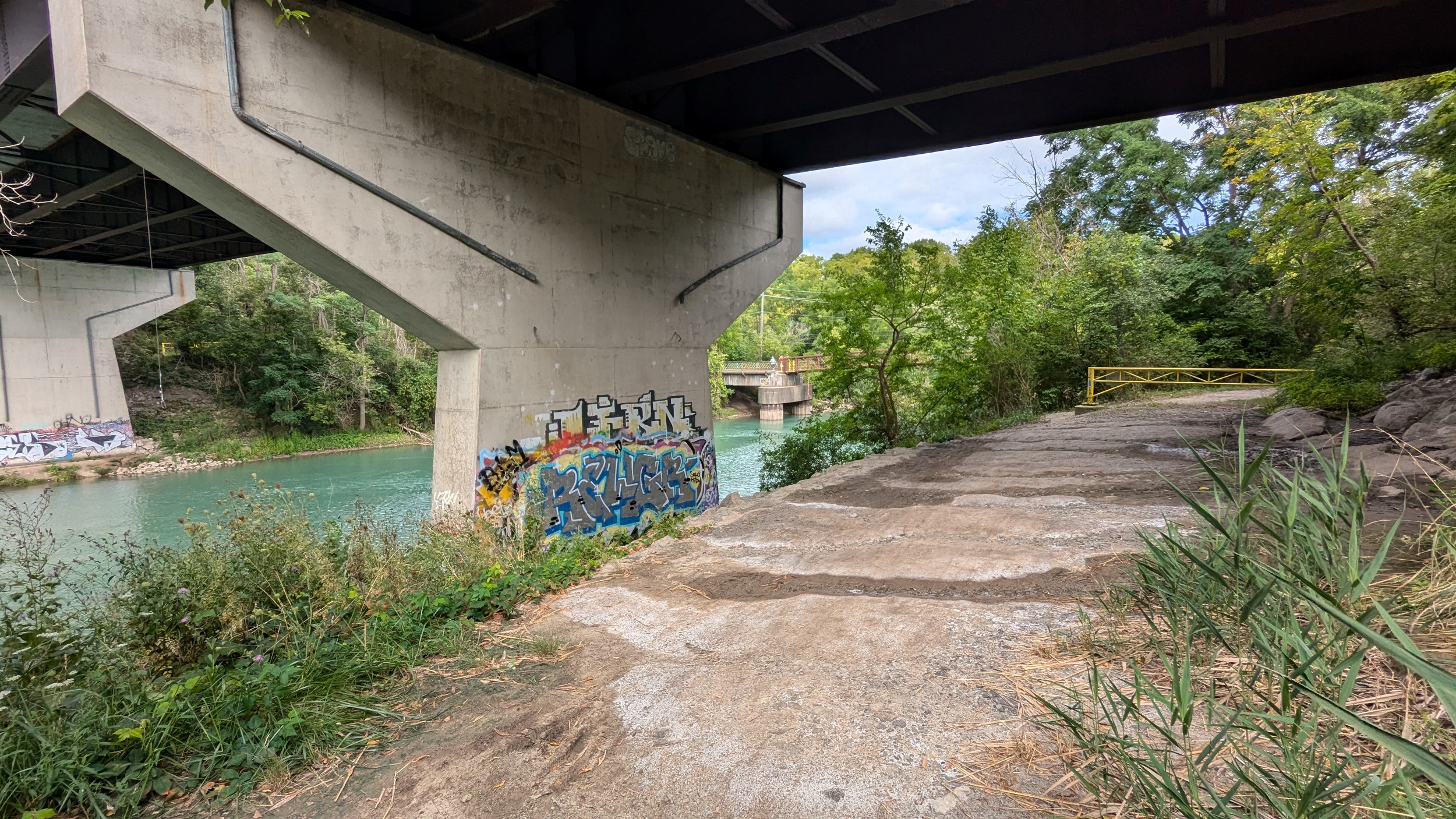 Under Fourth Avenue, you hit a dead end, and get rerouted around “Welland Vale Island”. This stagnant ditch is all that separates it. Back to the river, which is whipping fast over another weir. Hard to convey how strong this current is without video.