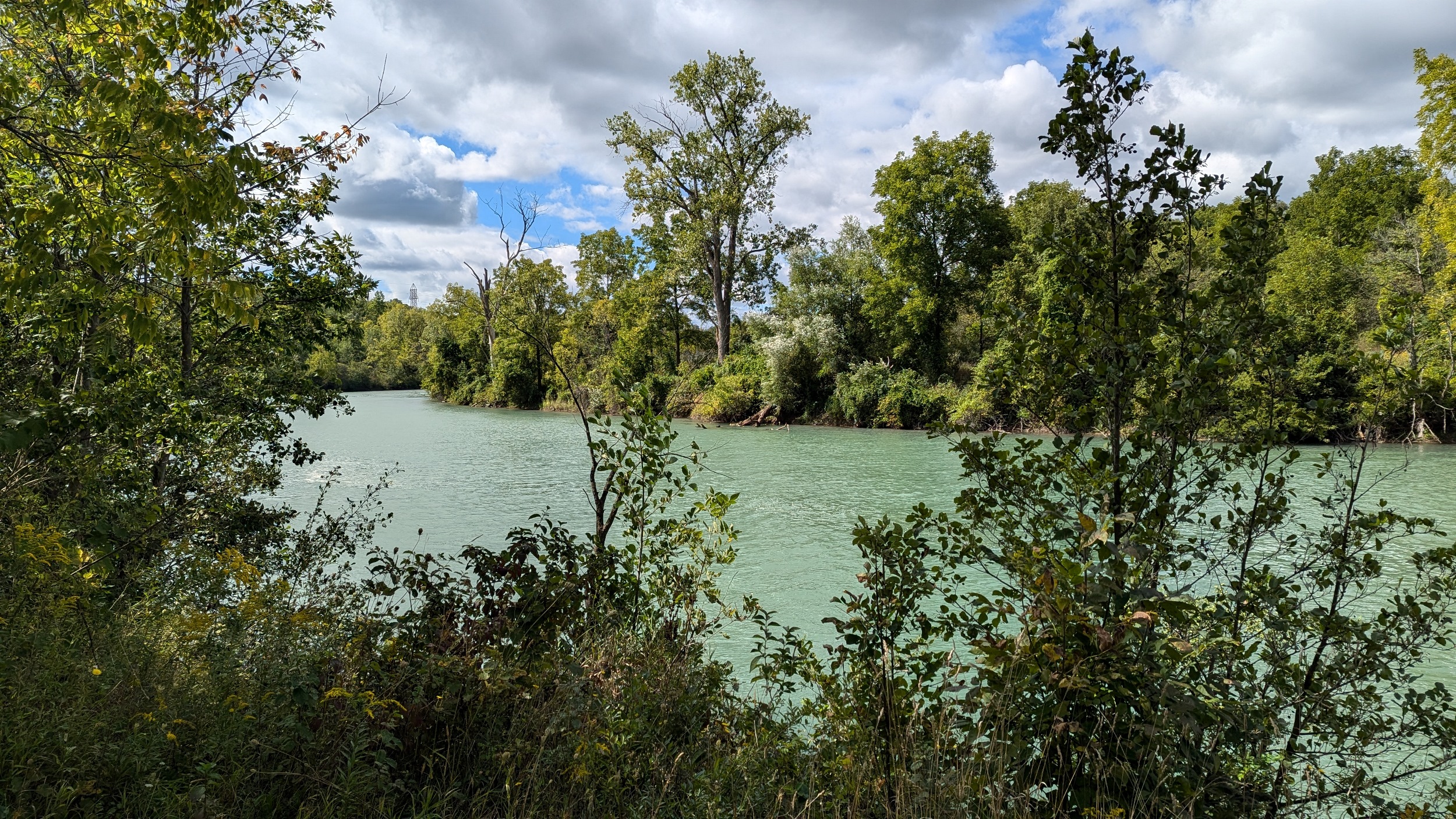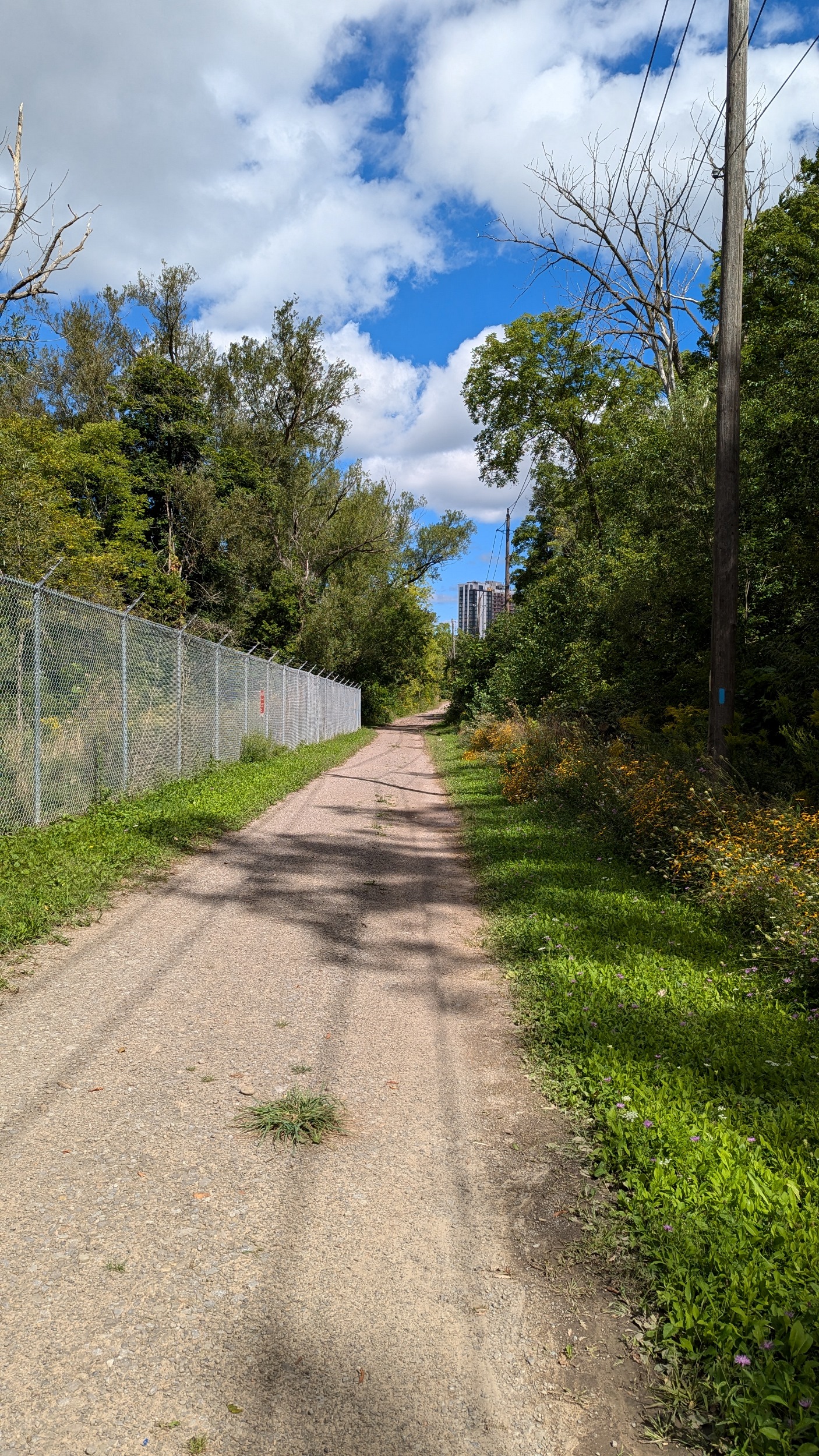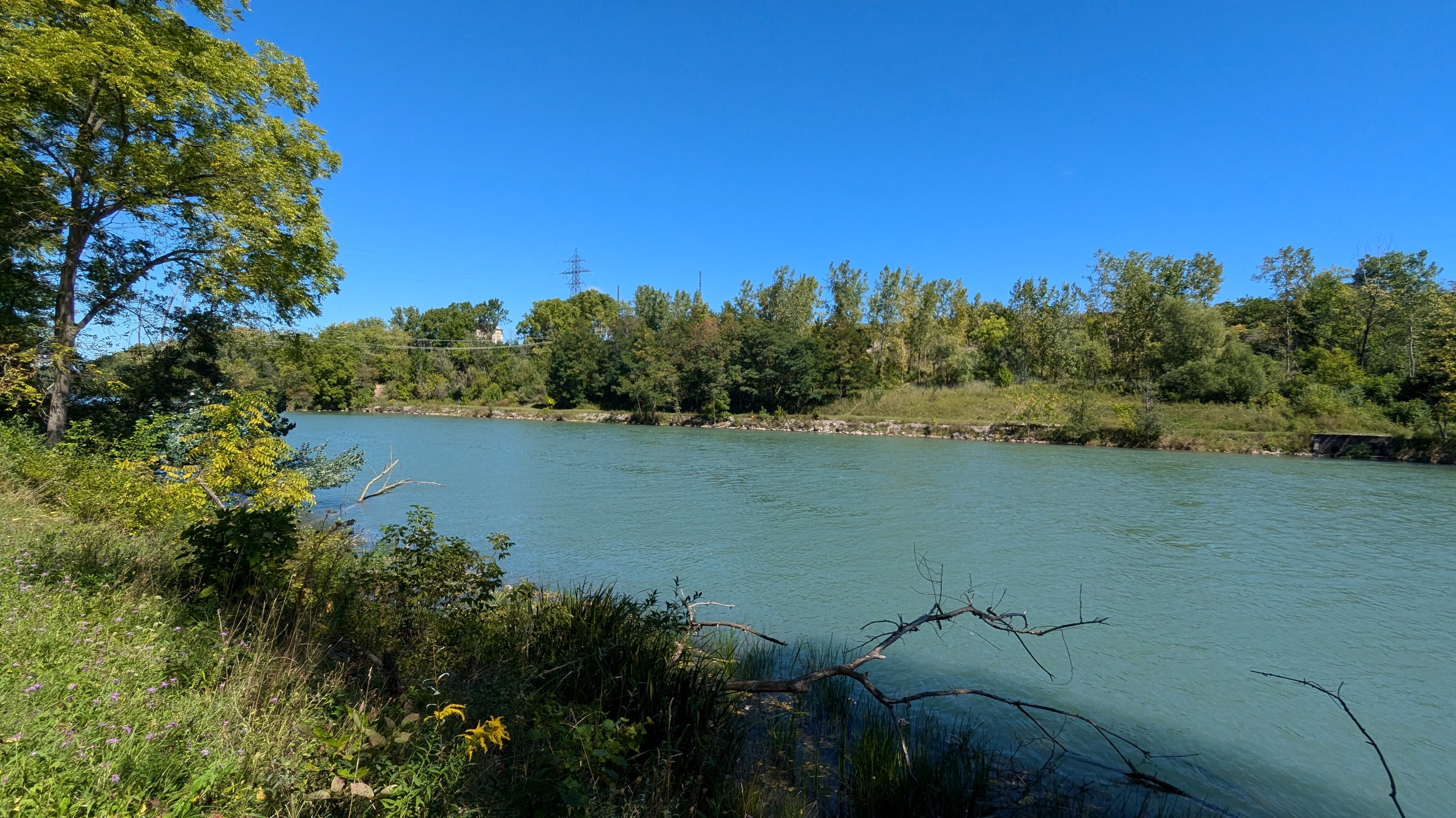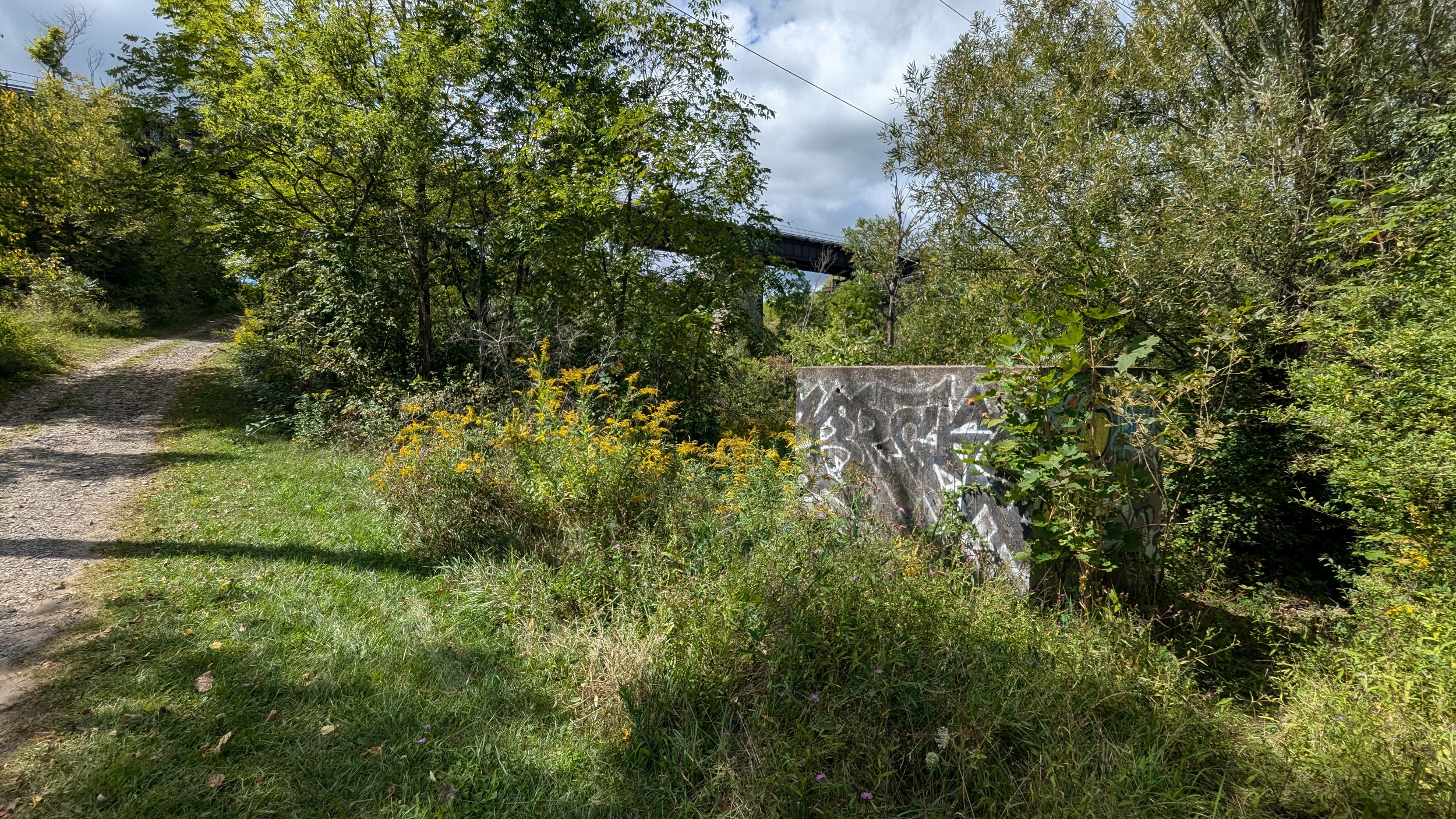 A couple shots of the creek with some sunlight. The first signs of the city since DeCew are these bridges at Glendale. The pedestrian bridge is a good interchange point between the west and east side trails. I’m sticking to the east bank, which is less of a formal trail and more of a vehicular access. No complaints, the clouds are moving on and there’s more views of the creek.