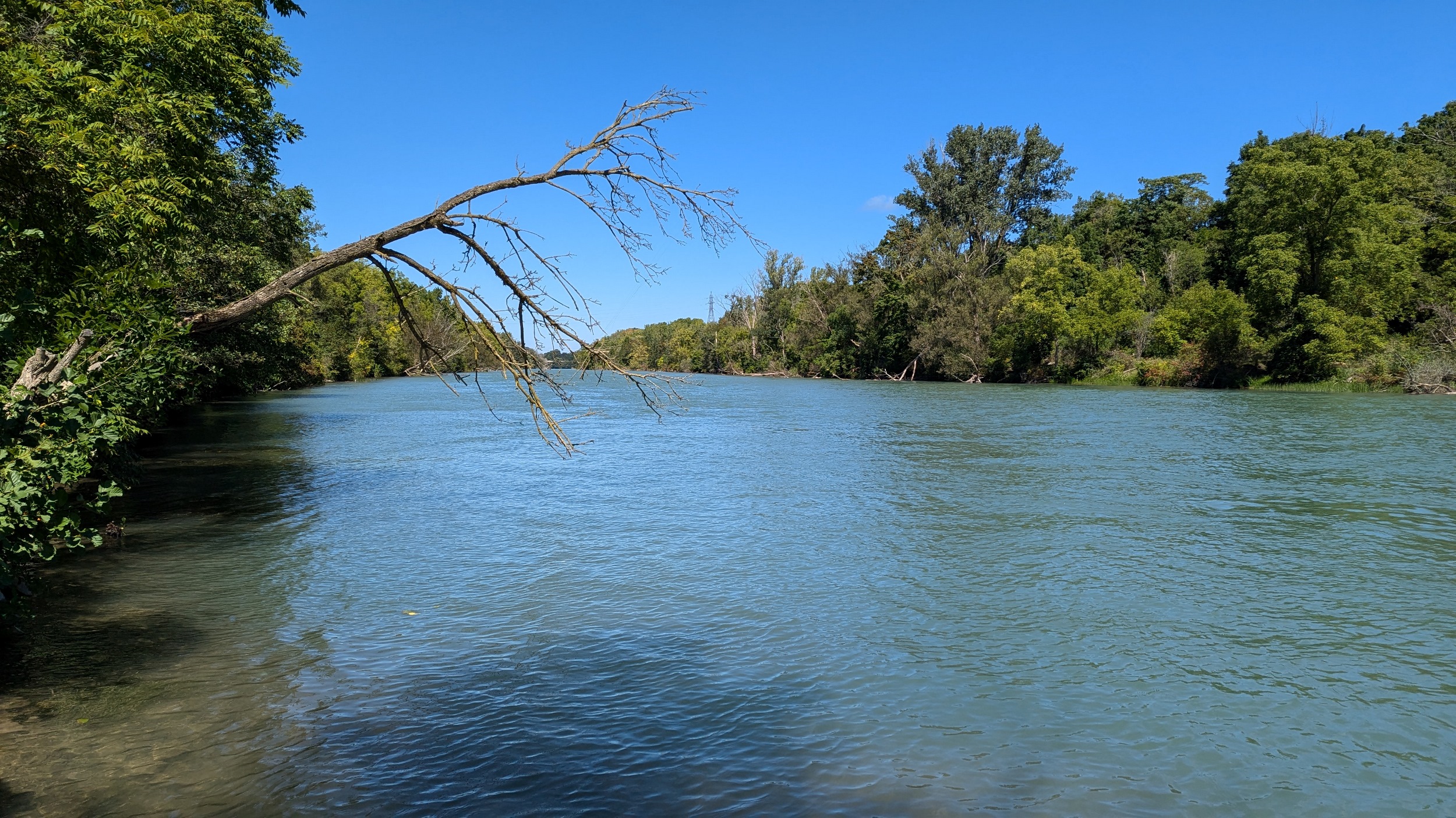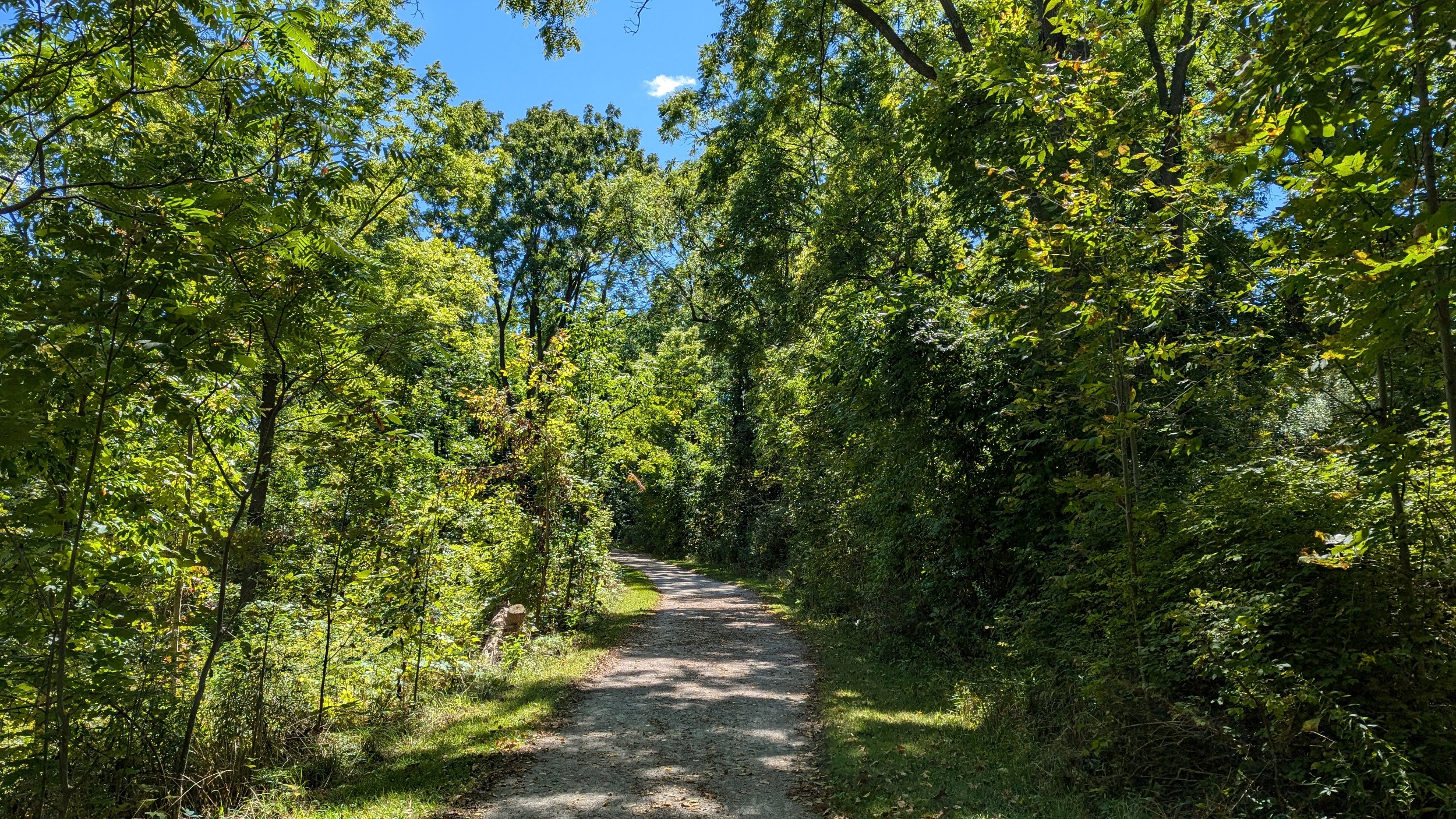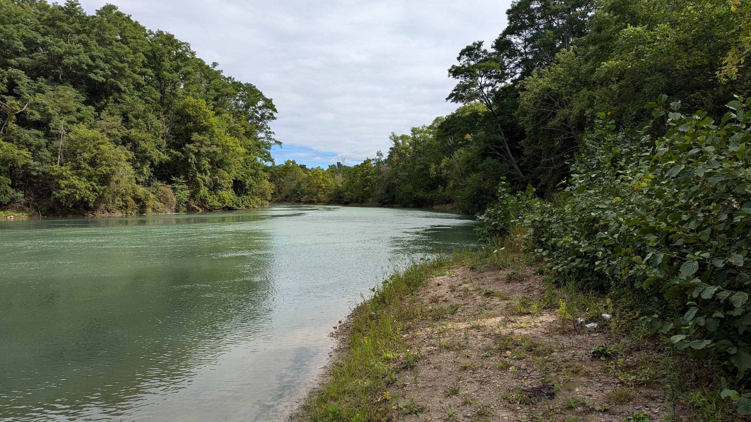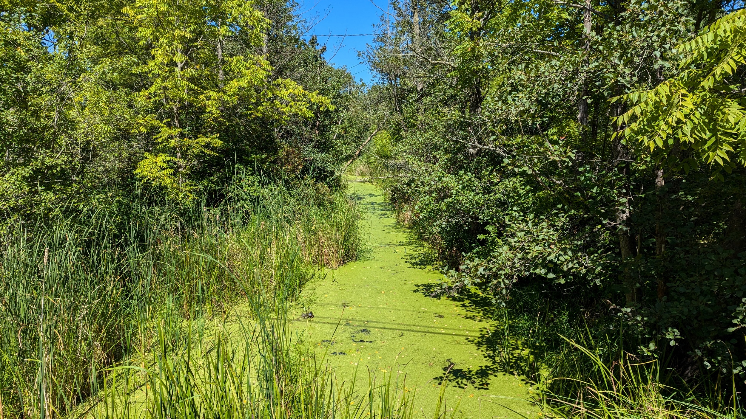 A couple shots of the creek with some sunlight. The first signs of the city since DeCew are these bridges at Glendale. The pedestrian bridge is a good interchange point between the west and east side trails. I’m sticking to the east bank, which is less of a formal trail and more of a vehicular access. No complaints, the clouds are moving on and there’s more views of the creek.