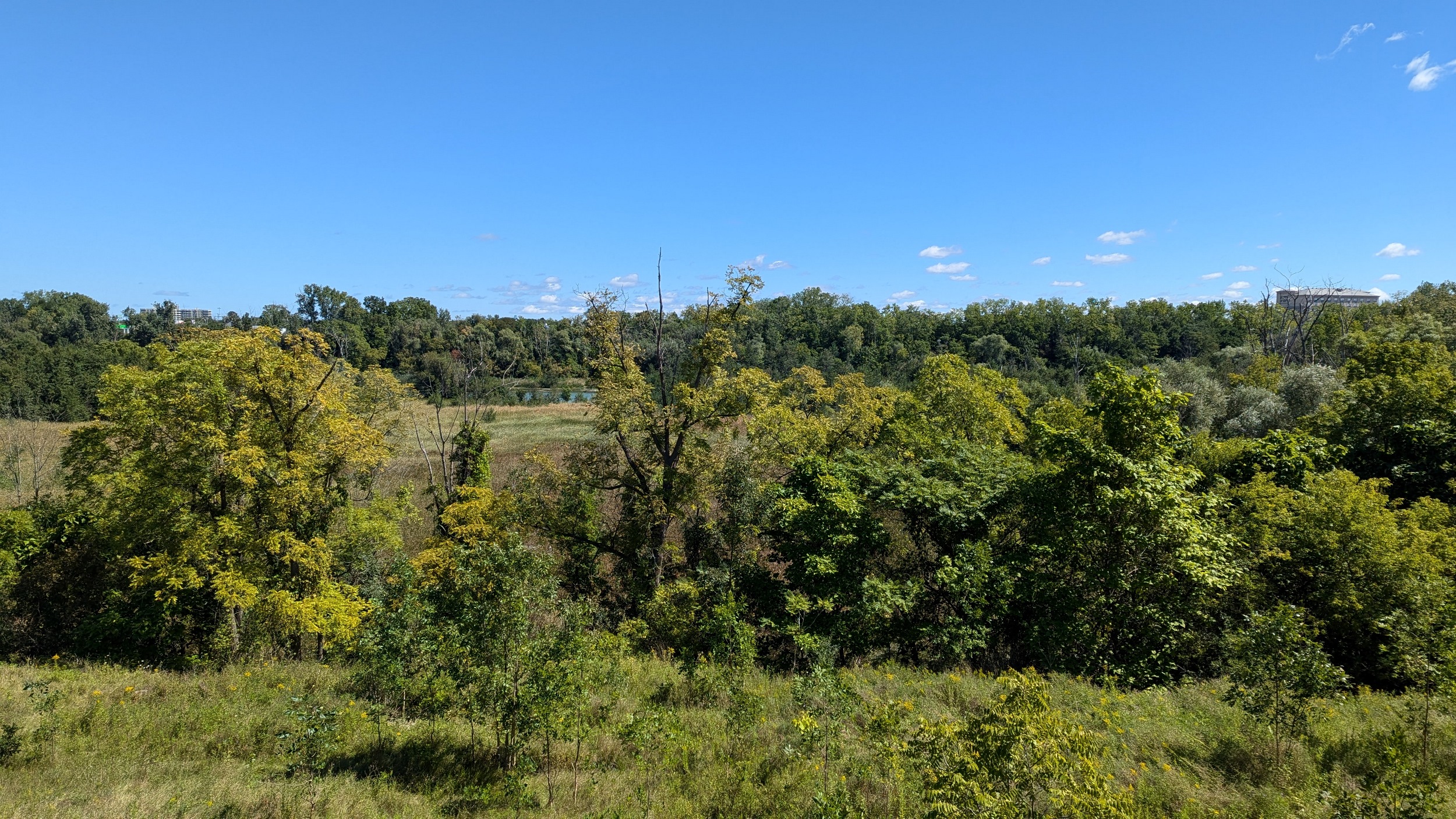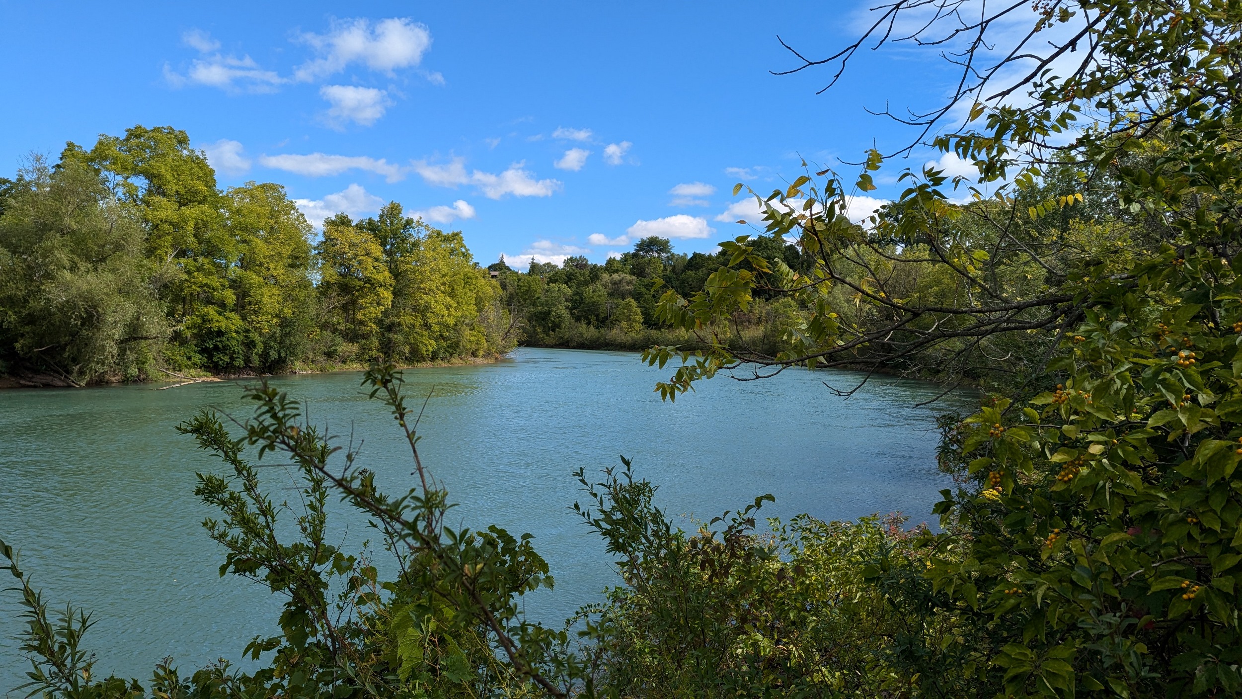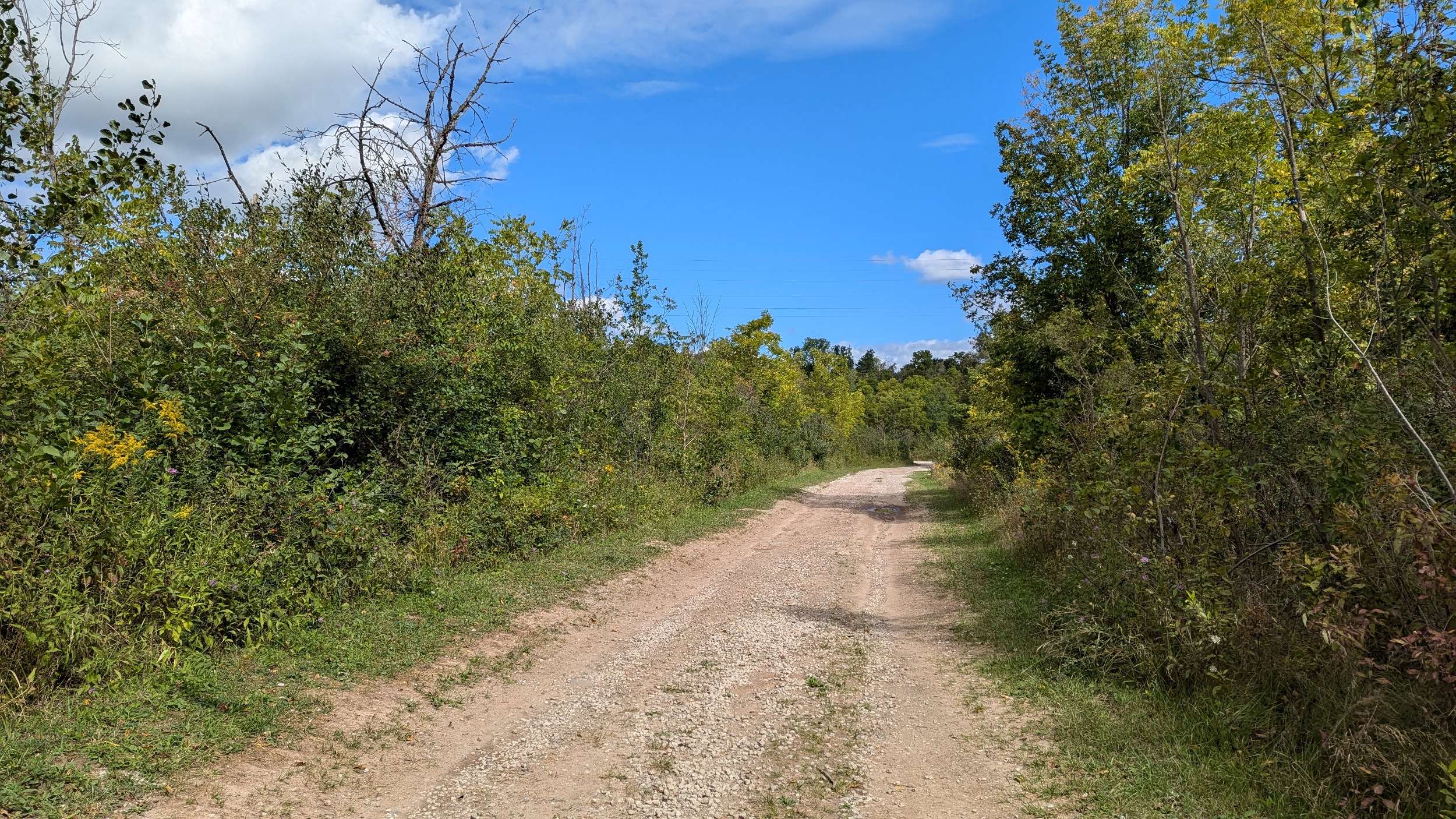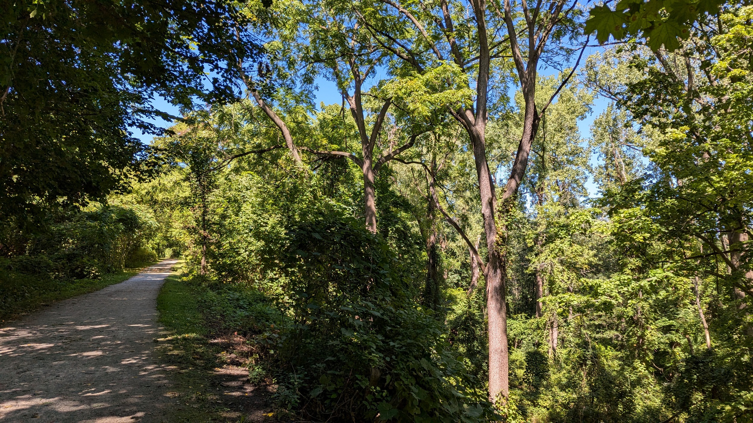 A couple shots of the creek with some sunlight. The first signs of the city since DeCew are these bridges at Glendale. The pedestrian bridge is a good interchange point between the west and east side trails. I’m sticking to the east bank, which is less of a formal trail and more of a vehicular access. No complaints, the clouds are moving on and there’s more views of the creek.