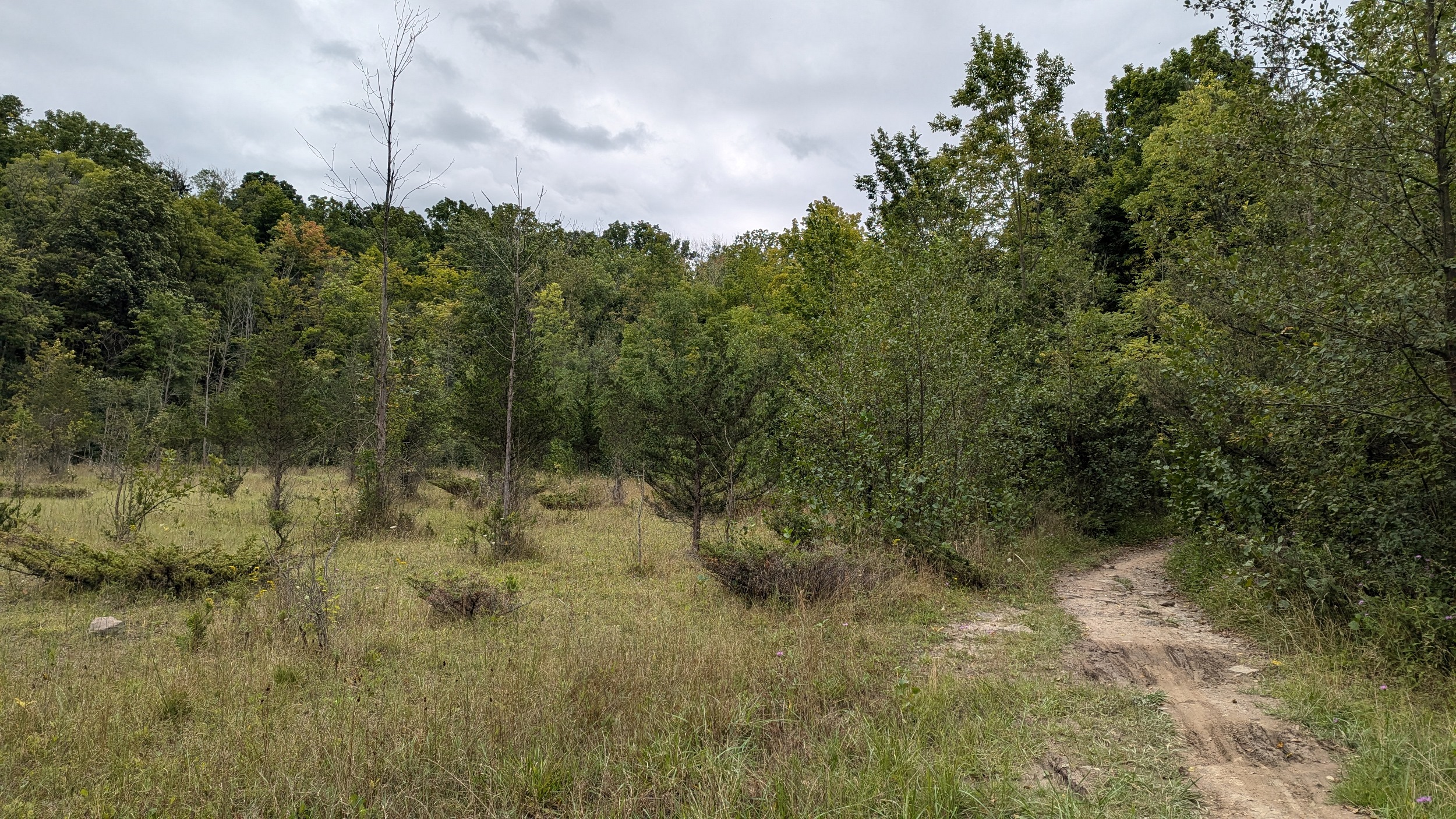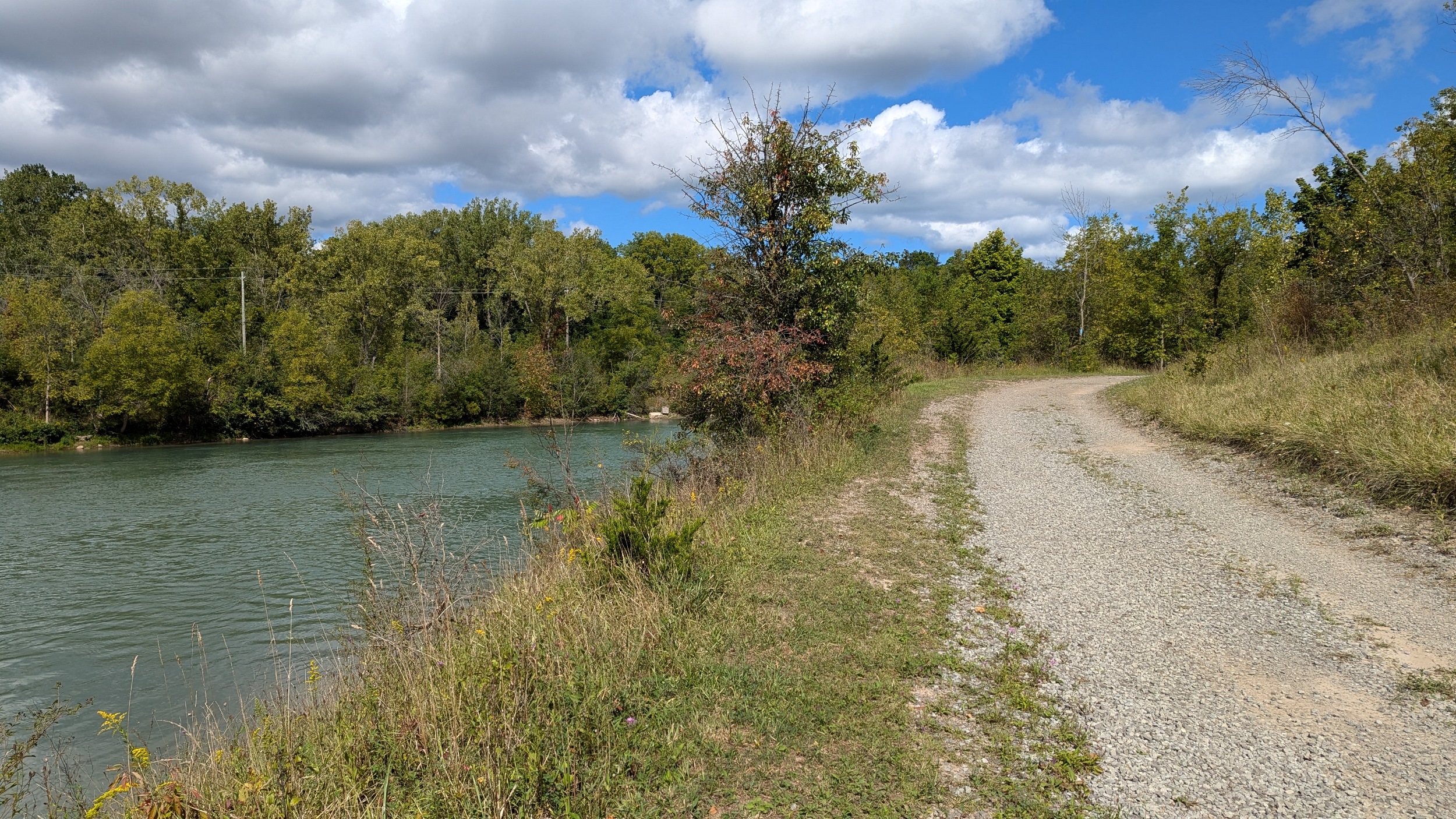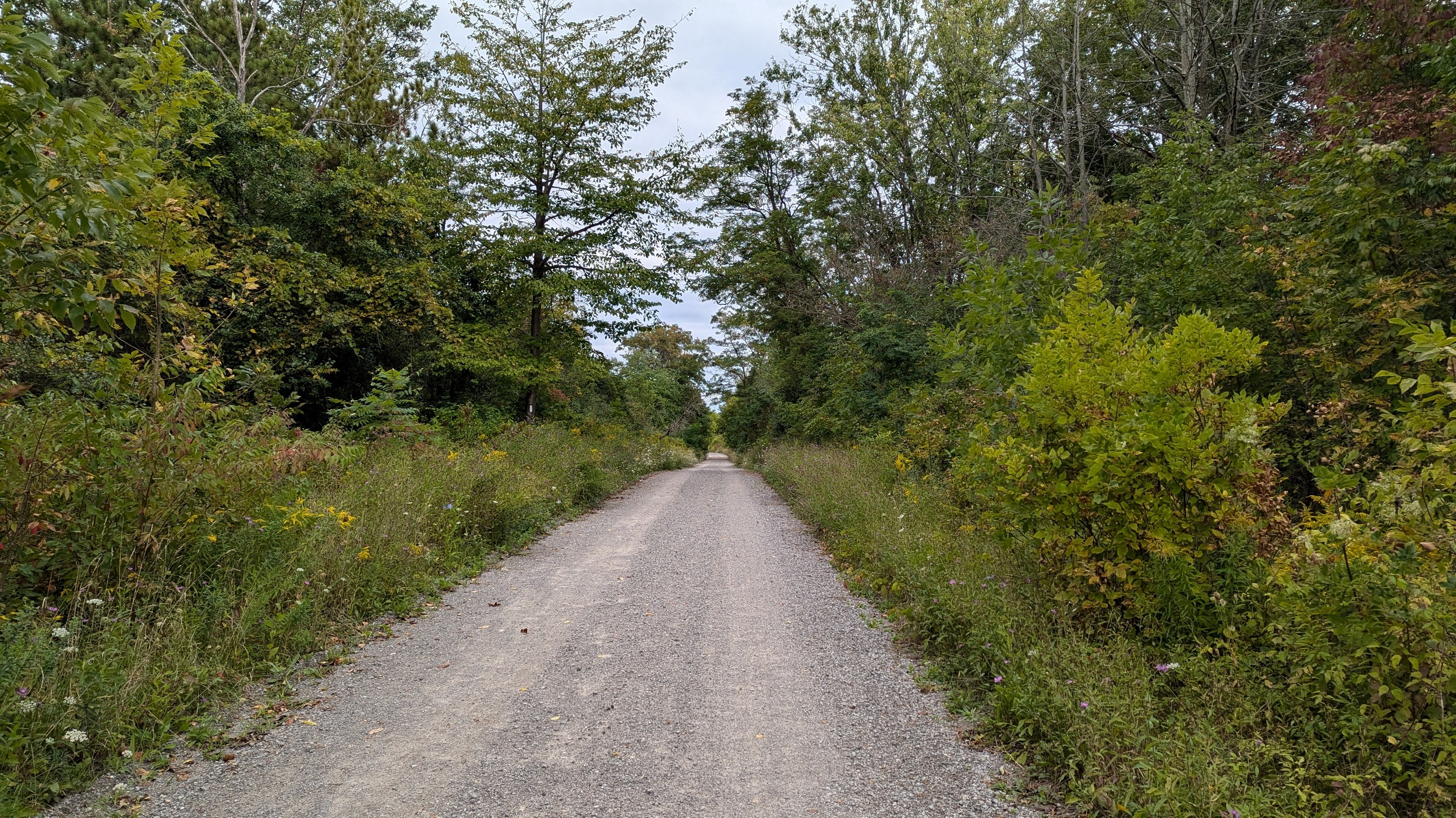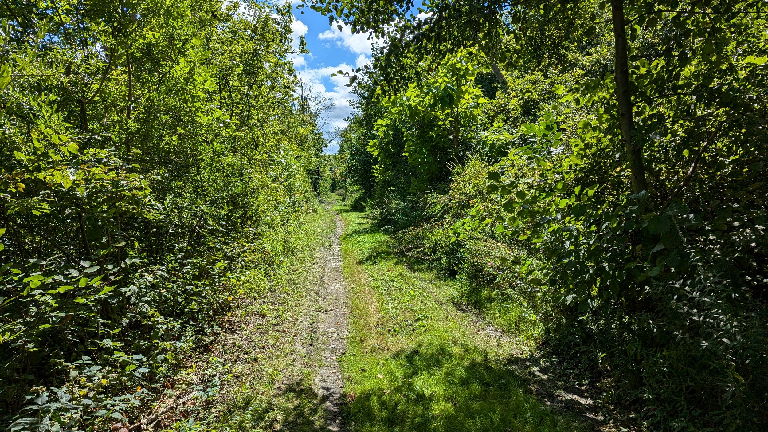 A couple shots of the creek with some sunlight. The first signs of the city since DeCew are these bridges at Glendale. The pedestrian bridge is a good interchange point between the west and east side trails. I’m sticking to the east bank, which is less of a formal trail and more of a vehicular access. No complaints, the clouds are moving on and there’s more views of the creek.