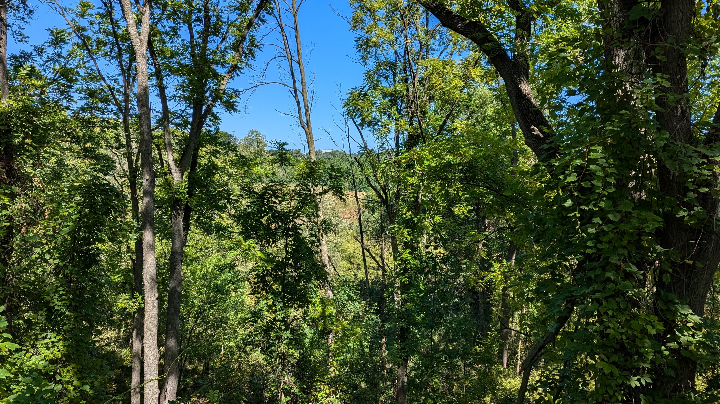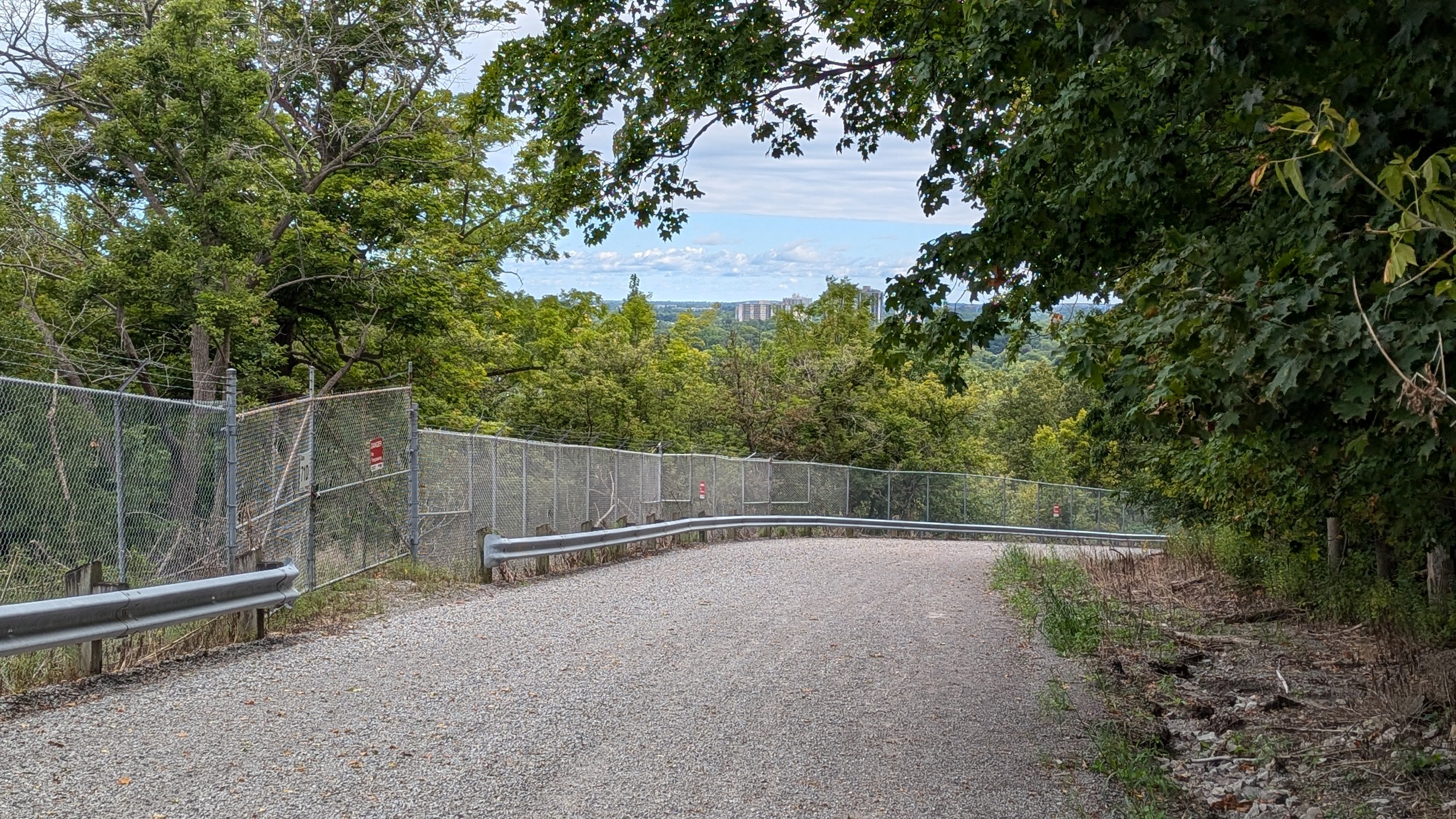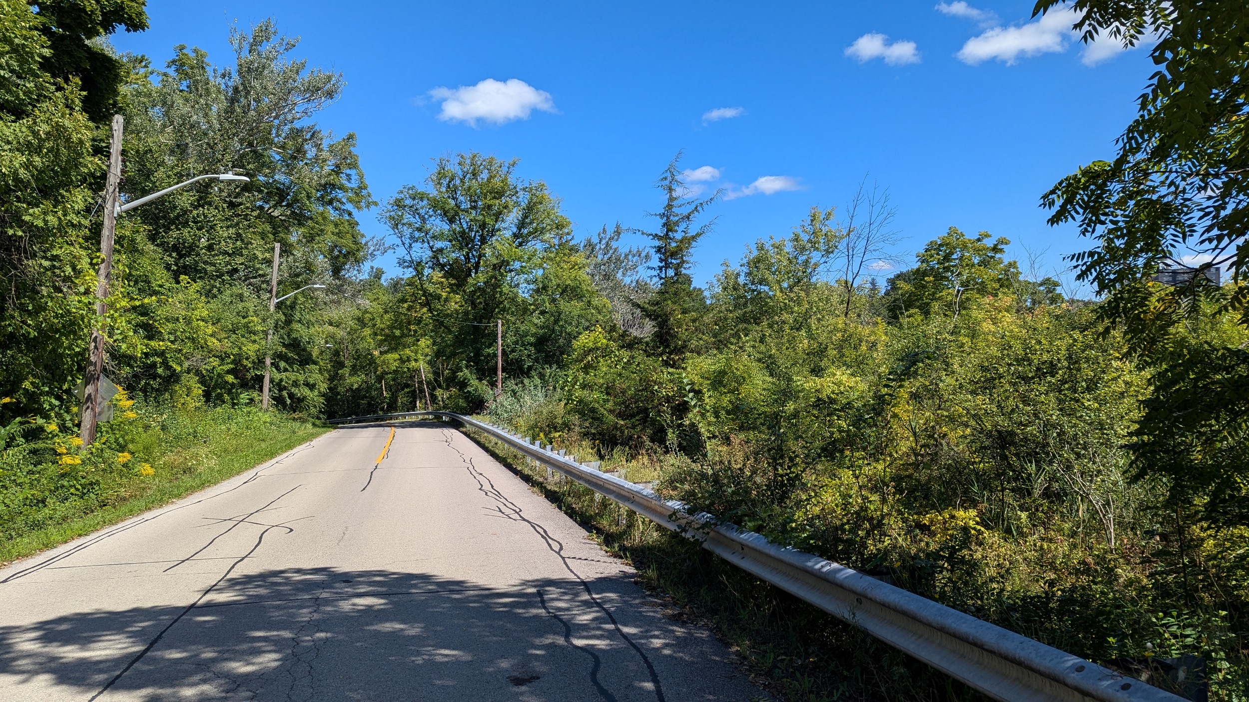 Continuing downstream, past the old GM auto plant on the east bank. The trail starts to climb until it carries you out of the valley, and onto Martindale Road.