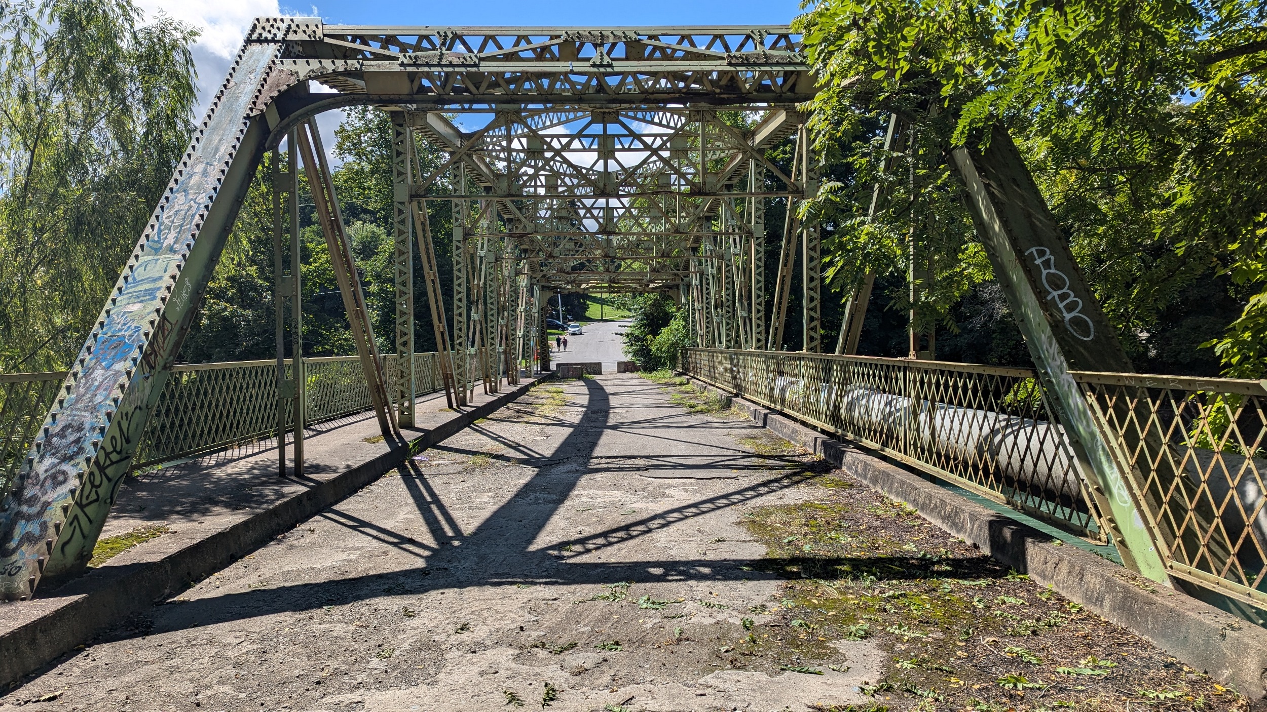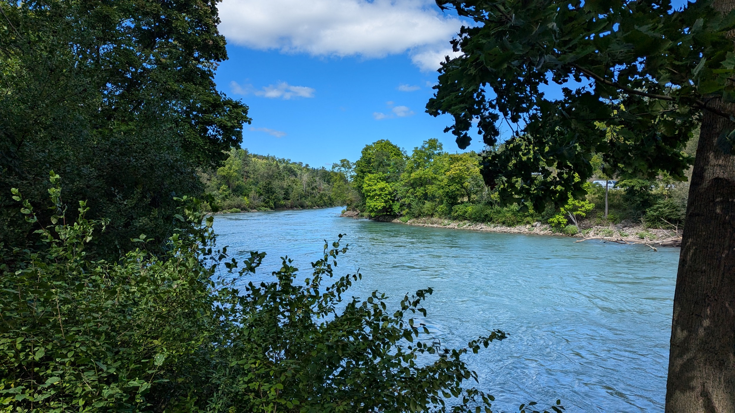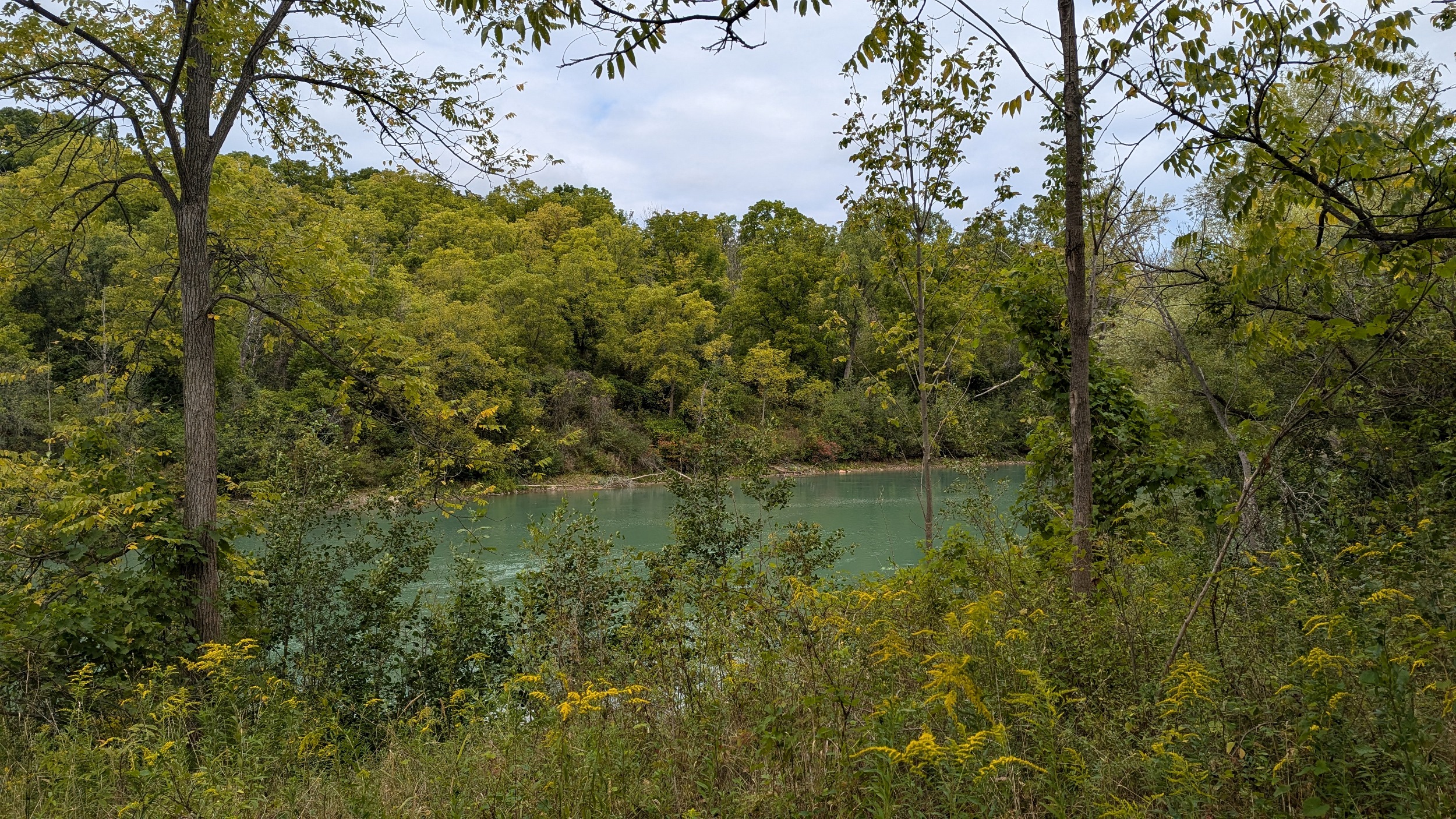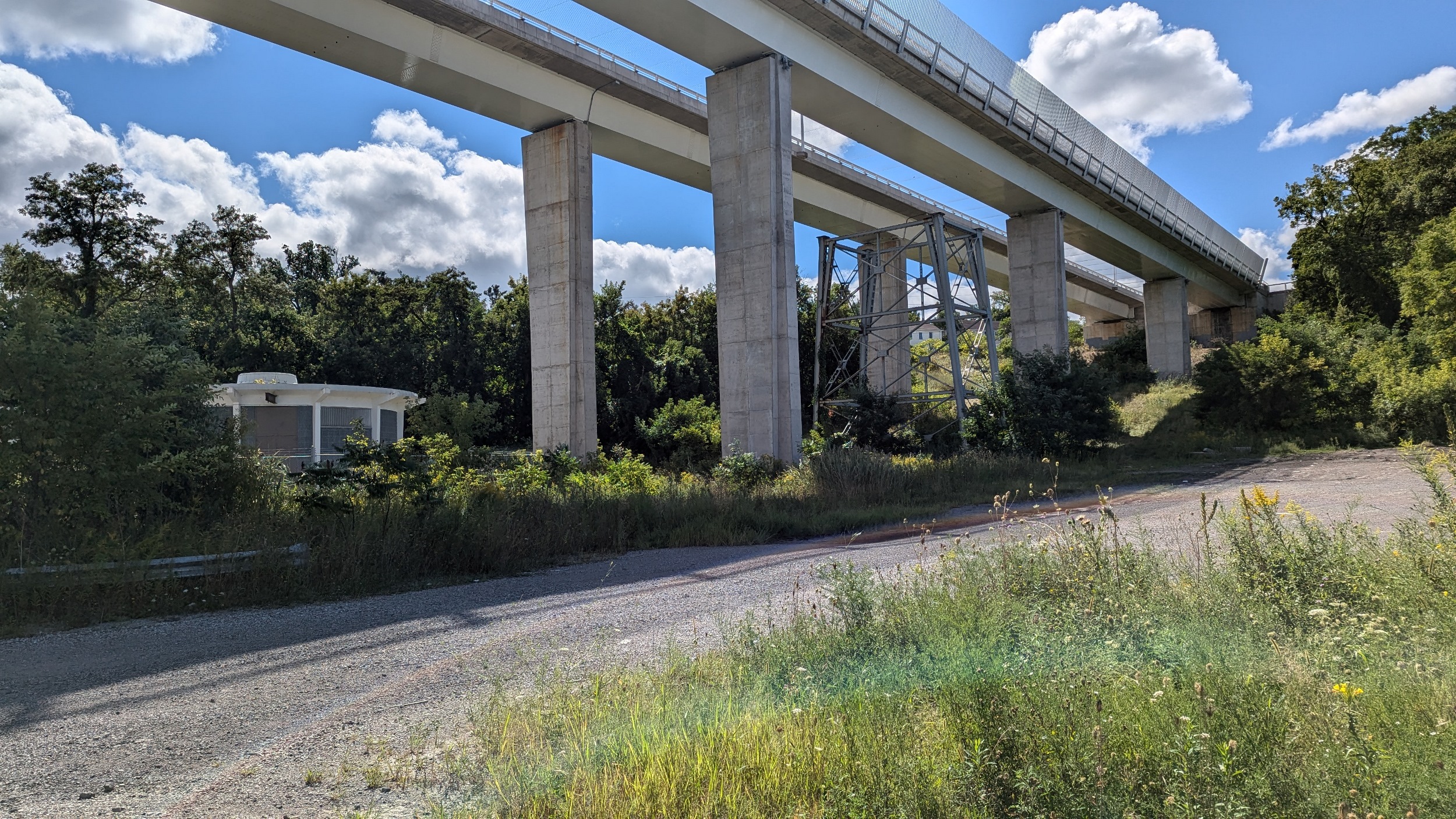 Continuing downstream, past the old GM auto plant on the east bank. The trail starts to climb until it carries you out of the valley, and onto Martindale Road.