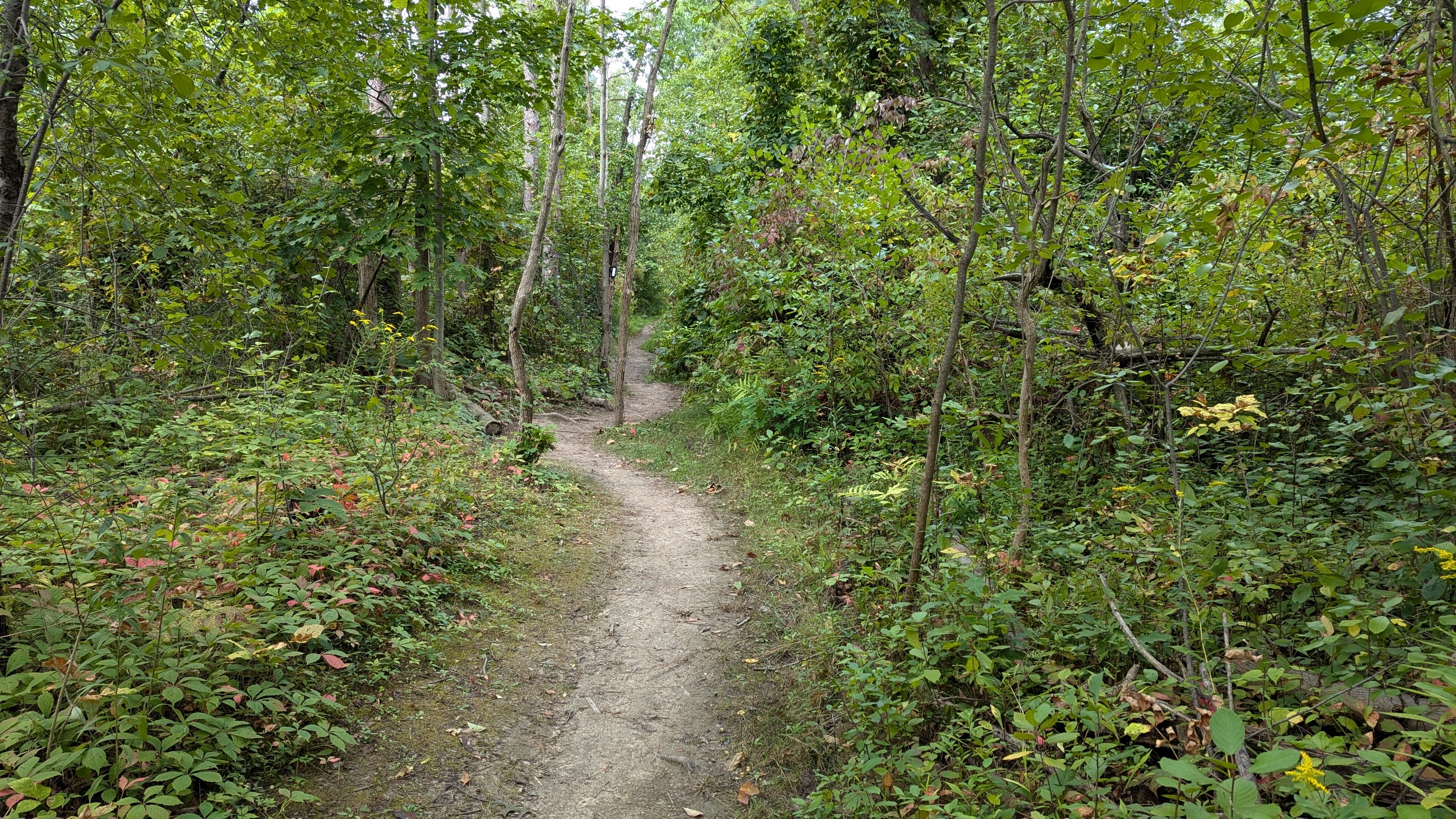 So far, the trail is perched up and away from the water’s edge. And that’s okay, as it’s a great hiking and biking trail set in a quiet mature forest. The creek is complementary rather than primary.