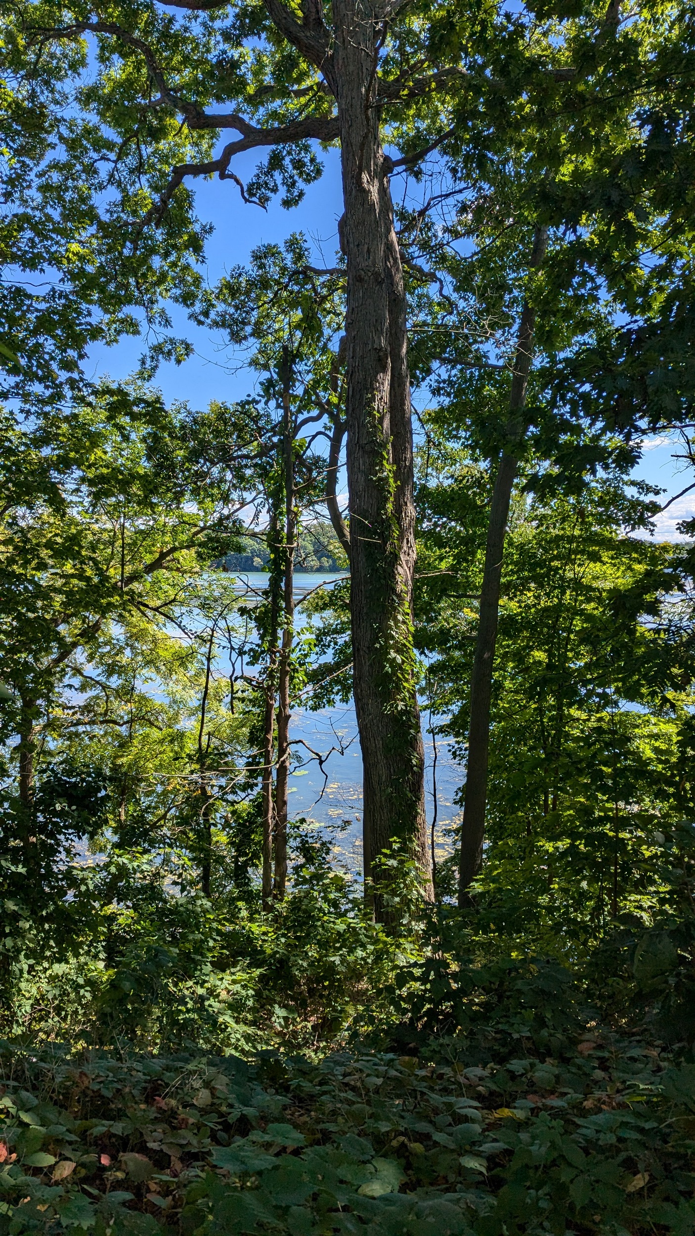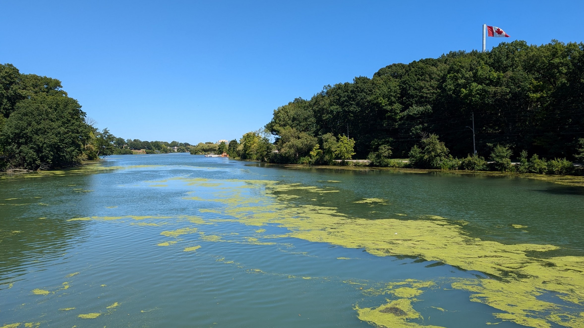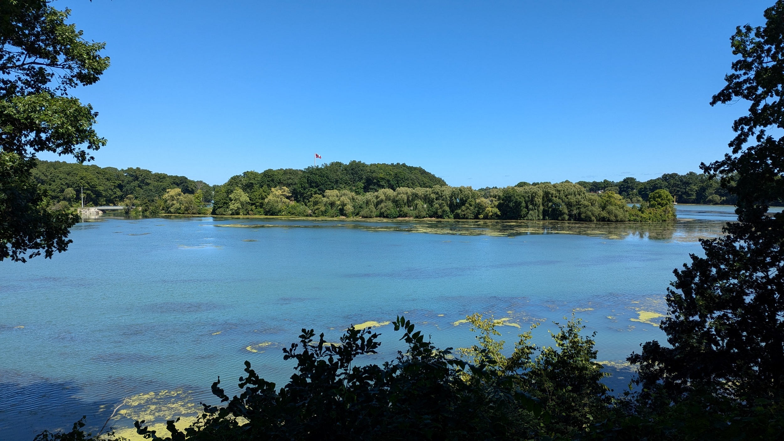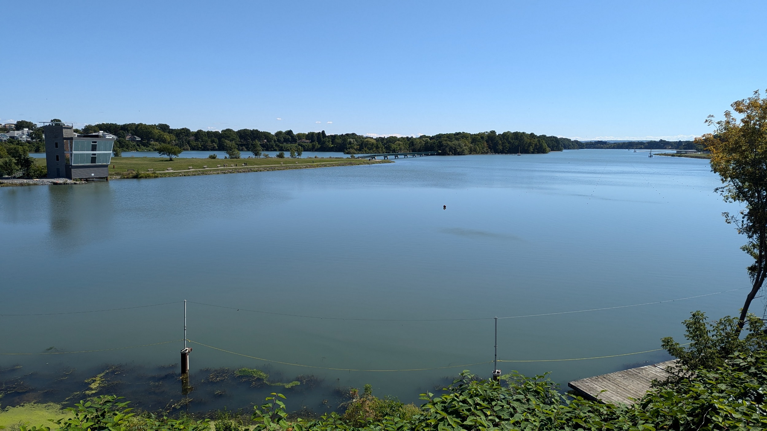 Over the QEW, which crosses the threshold of 12 Mile Creek turning into Martindale Pond. Lots of houses eat up it’s shore, until a pathway tucked at the corner of Golden Boulevard. Unexpected to me, the edge of the hill gives you a great public view of Henley Island.