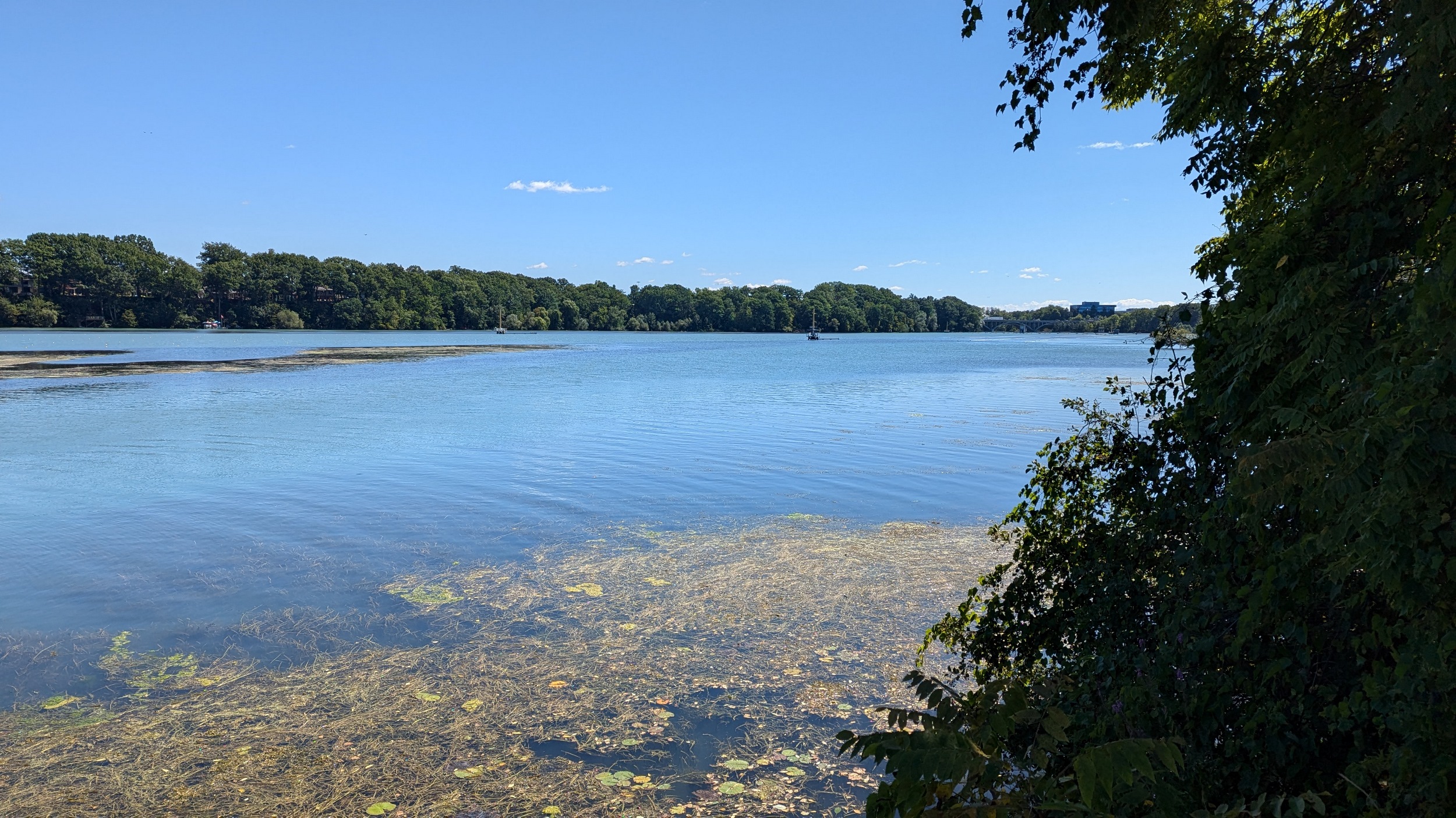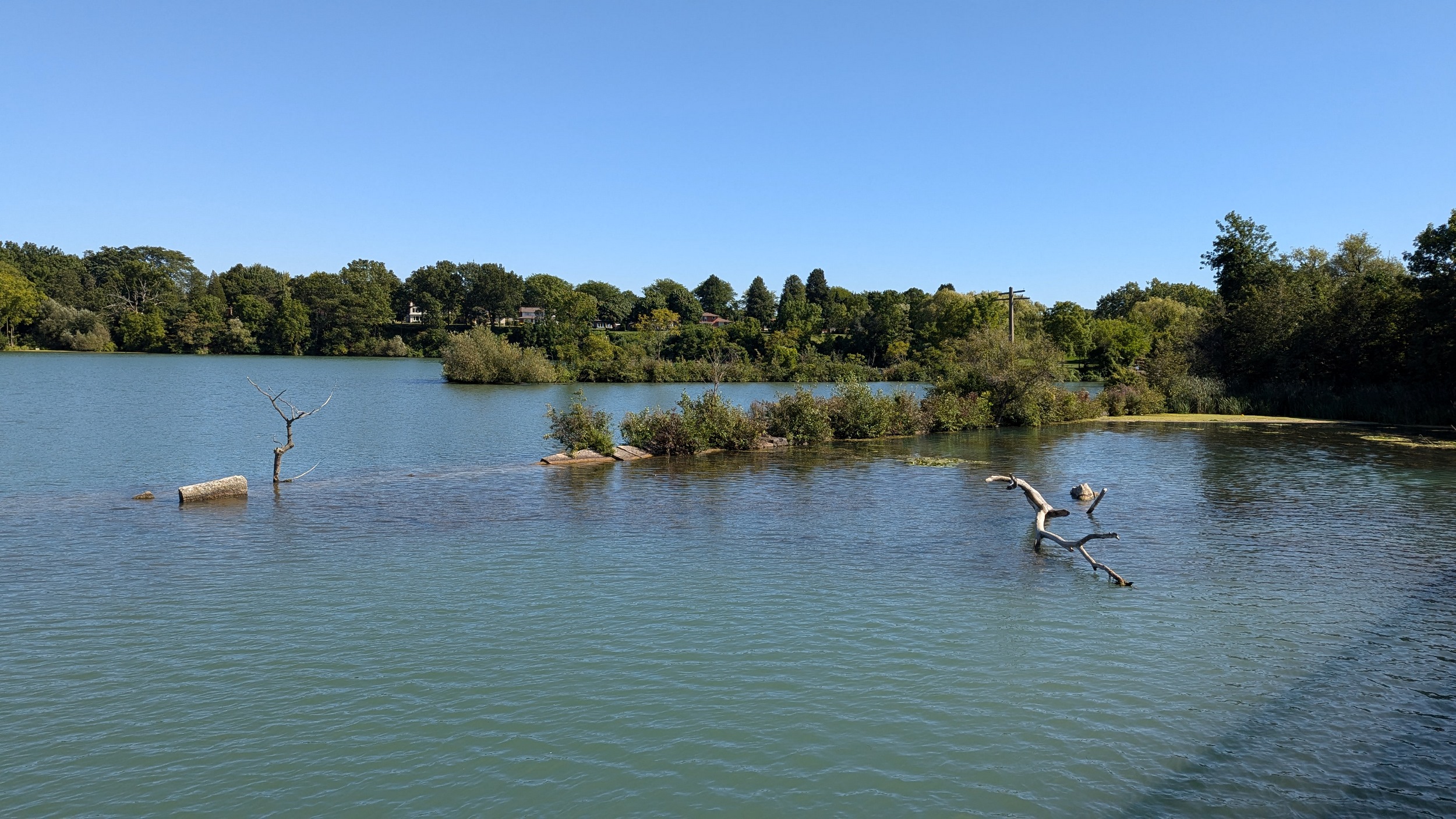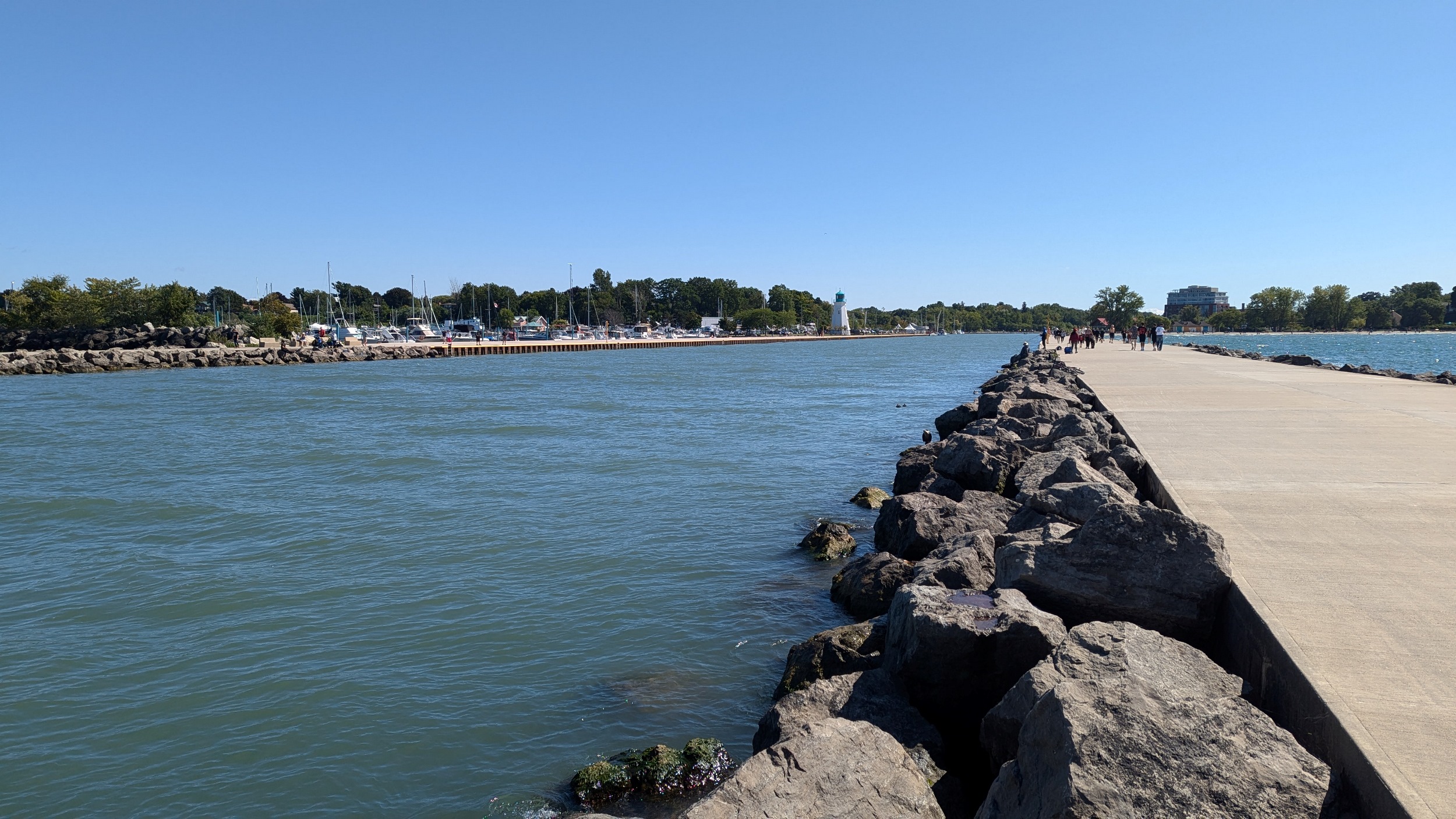 Long busy pier, much busier than the east side. This shelters the creek / pond outflow for 600 metres. Can almost see Toronto, but it’s hazy over the water. Back down to Martindale Pond, I’ll cover the other pier during another walk.