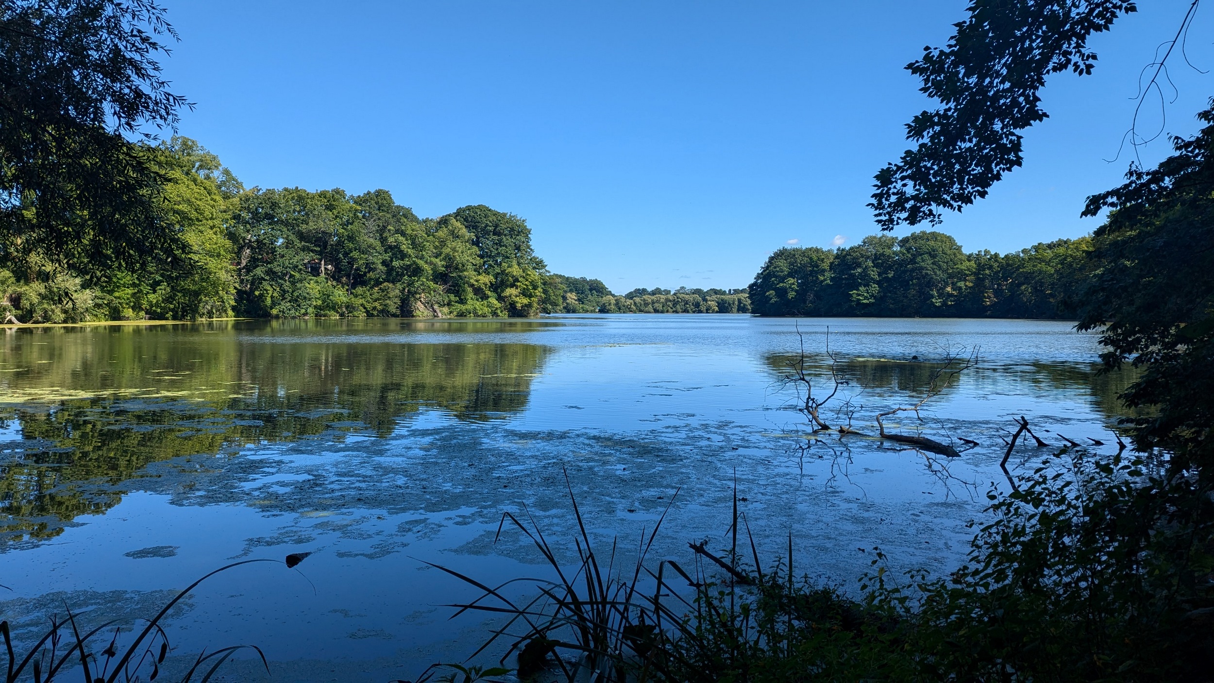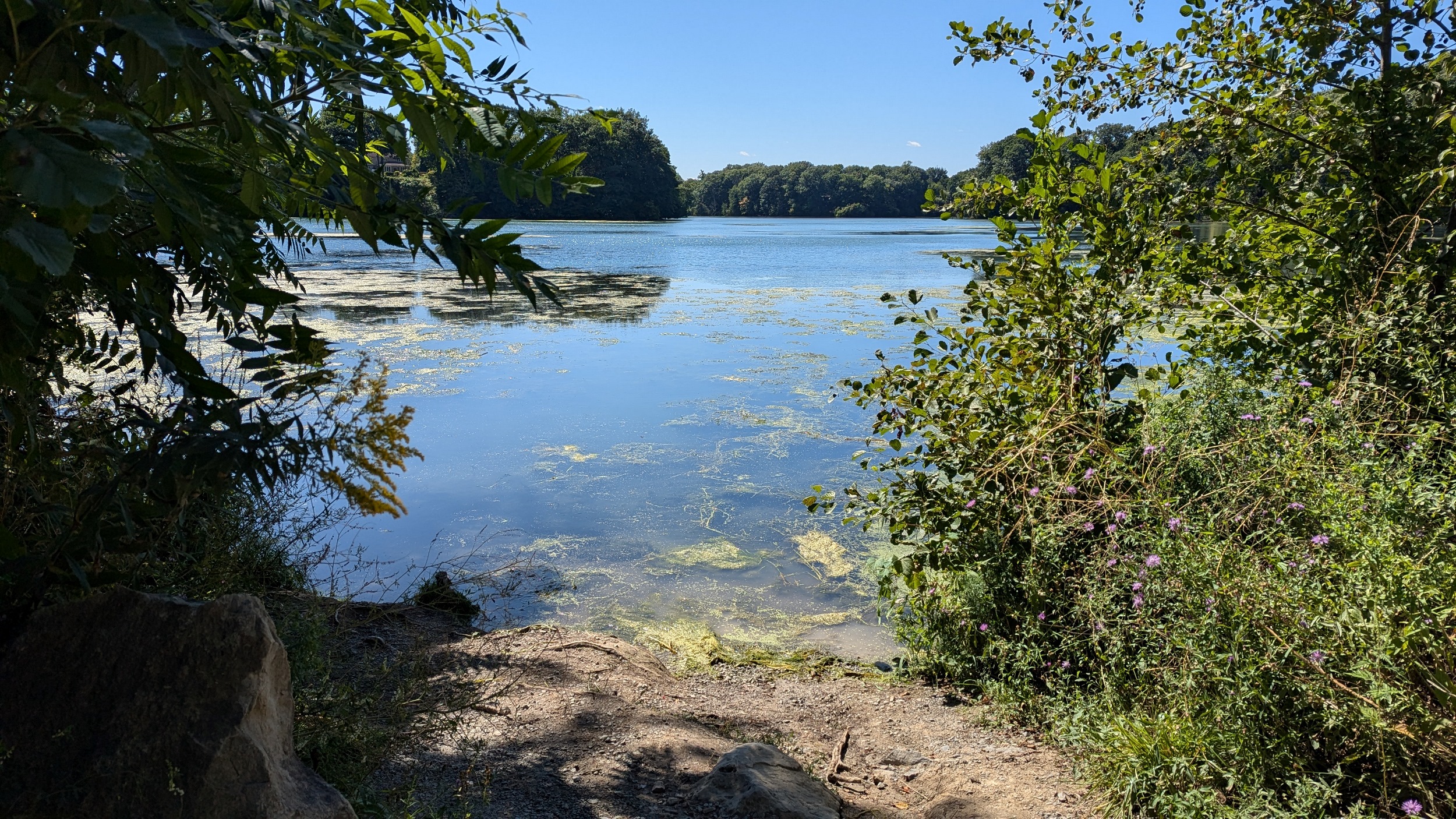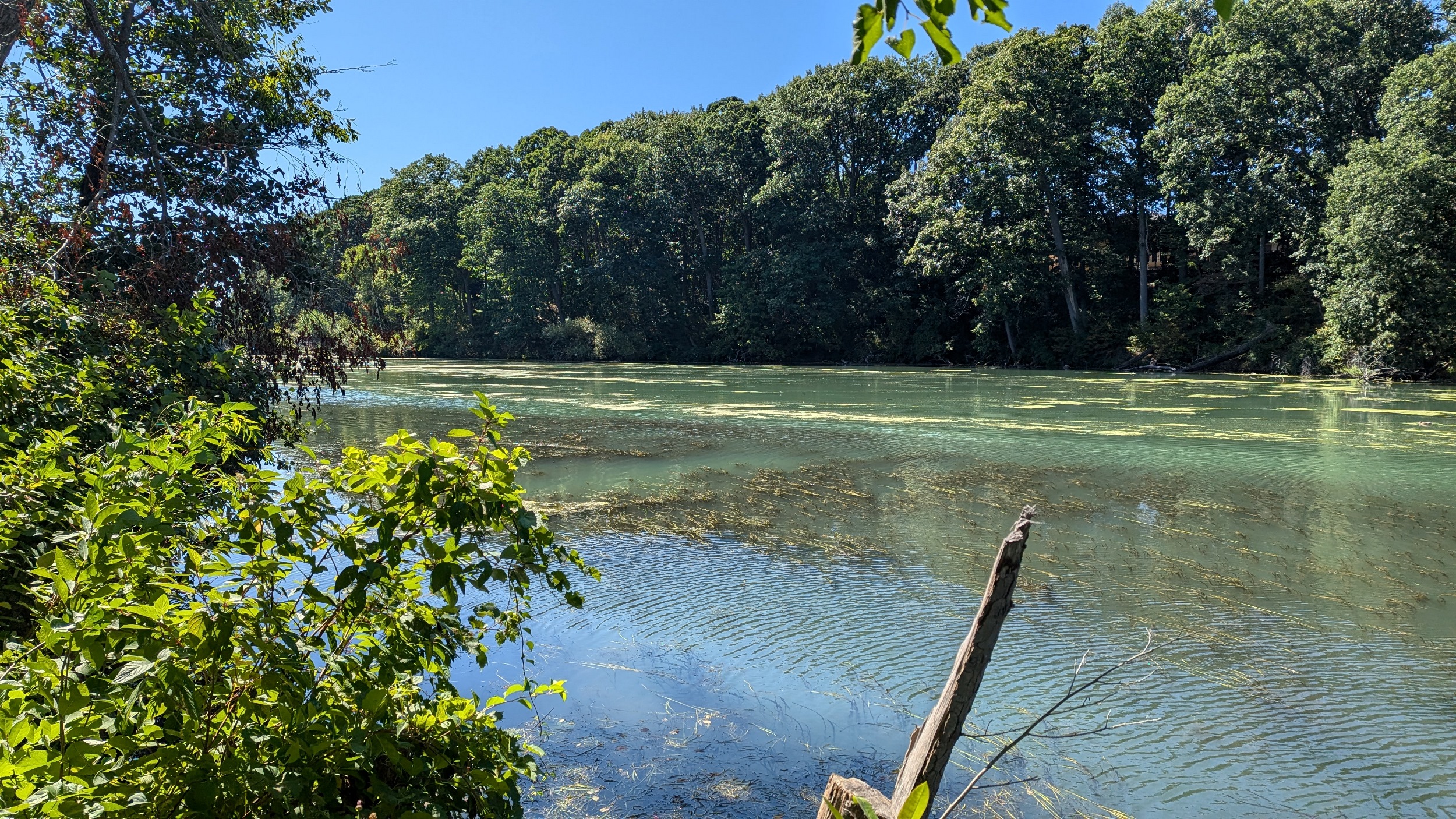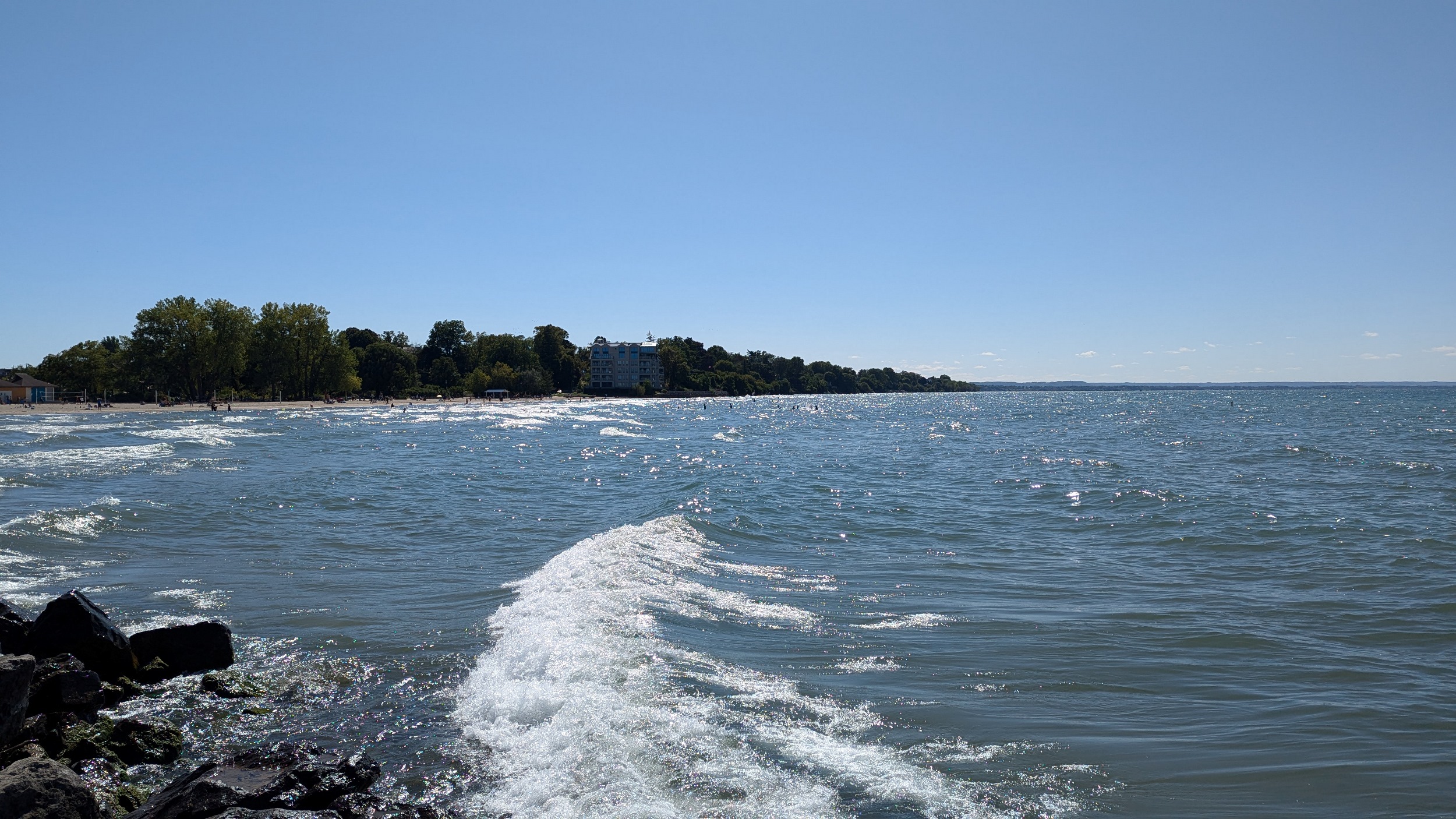 Long busy pier, much busier than the east side. This shelters the creek / pond outflow for 600 metres. Can almost see Toronto, but it’s hazy over the water. Back down to Martindale Pond, I’ll cover the other pier during another walk.