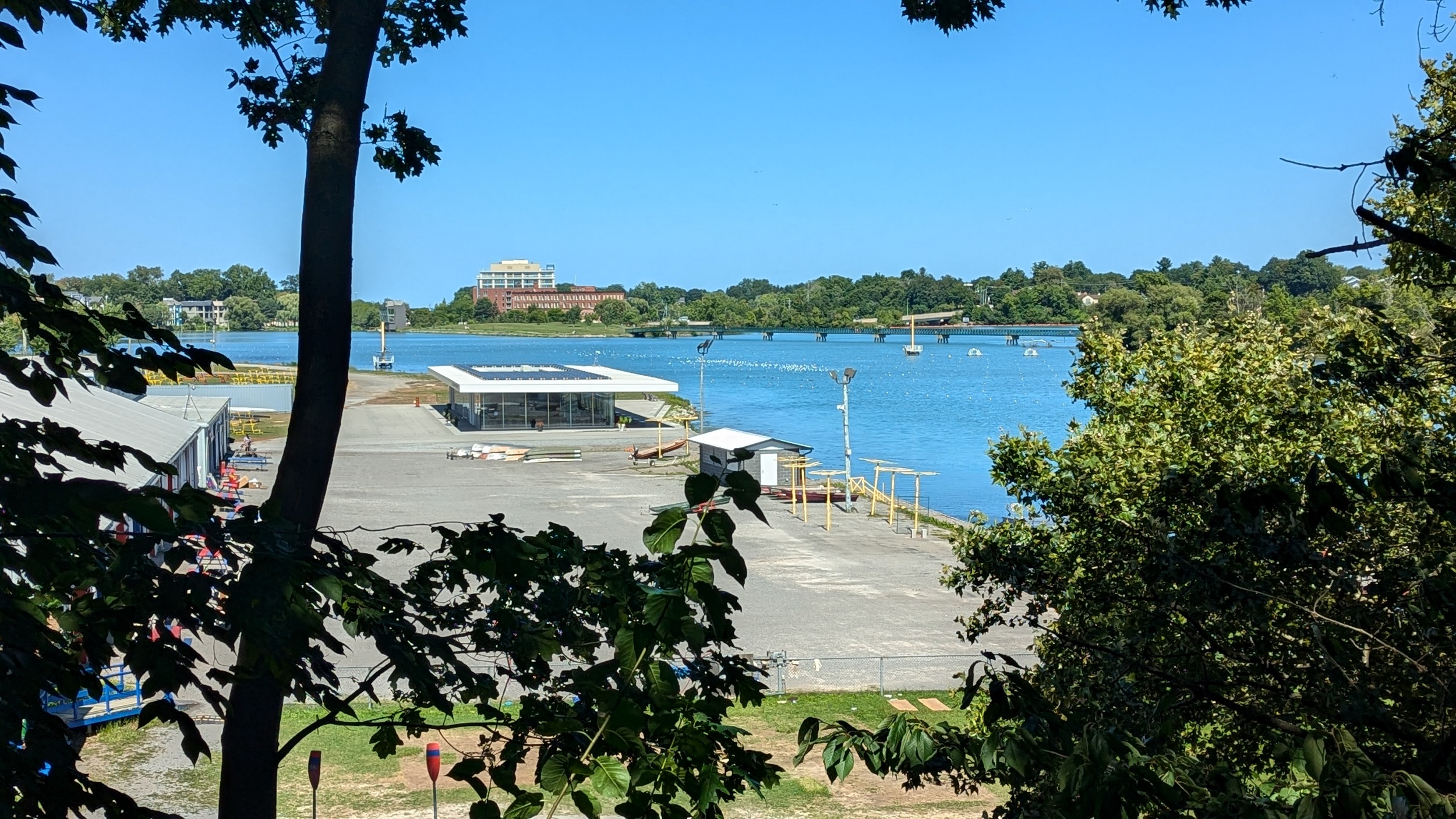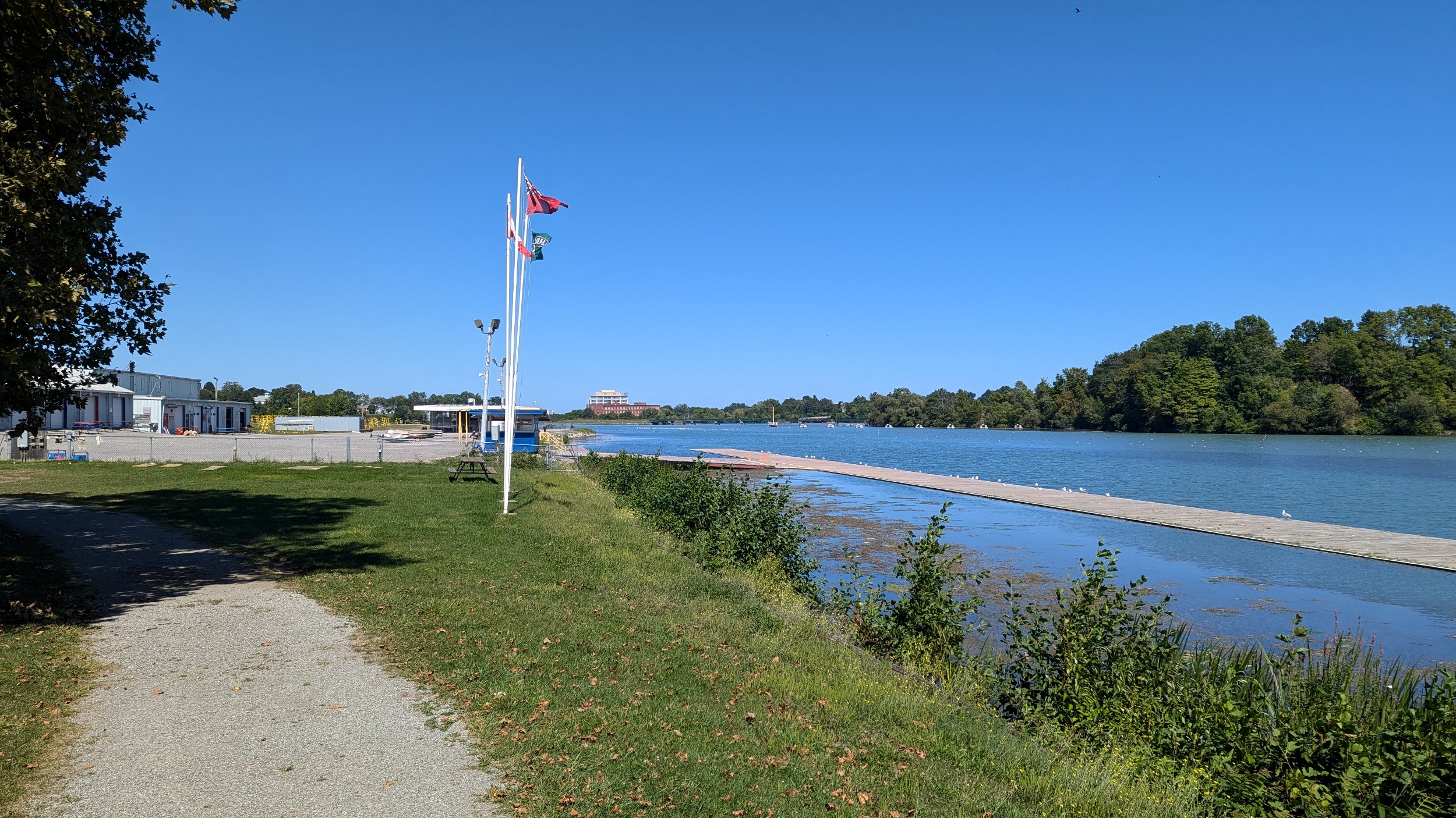 Over the bridge takes you to the west part of Henley Island, with a public canoe/kayak launch, and an (unofficial?) off-leash dog park. I had assumed the rowing centre was partly open to the public, but I was wrong. Off the island I go.