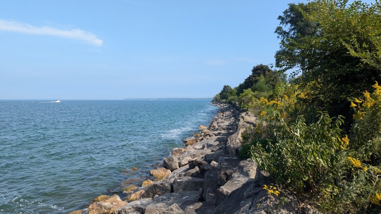 A short jog behind some more houses, then it’s a long stretch into Port Dalhousie with only a couple high views of the pond. At the marina, it’s now to the lake.
