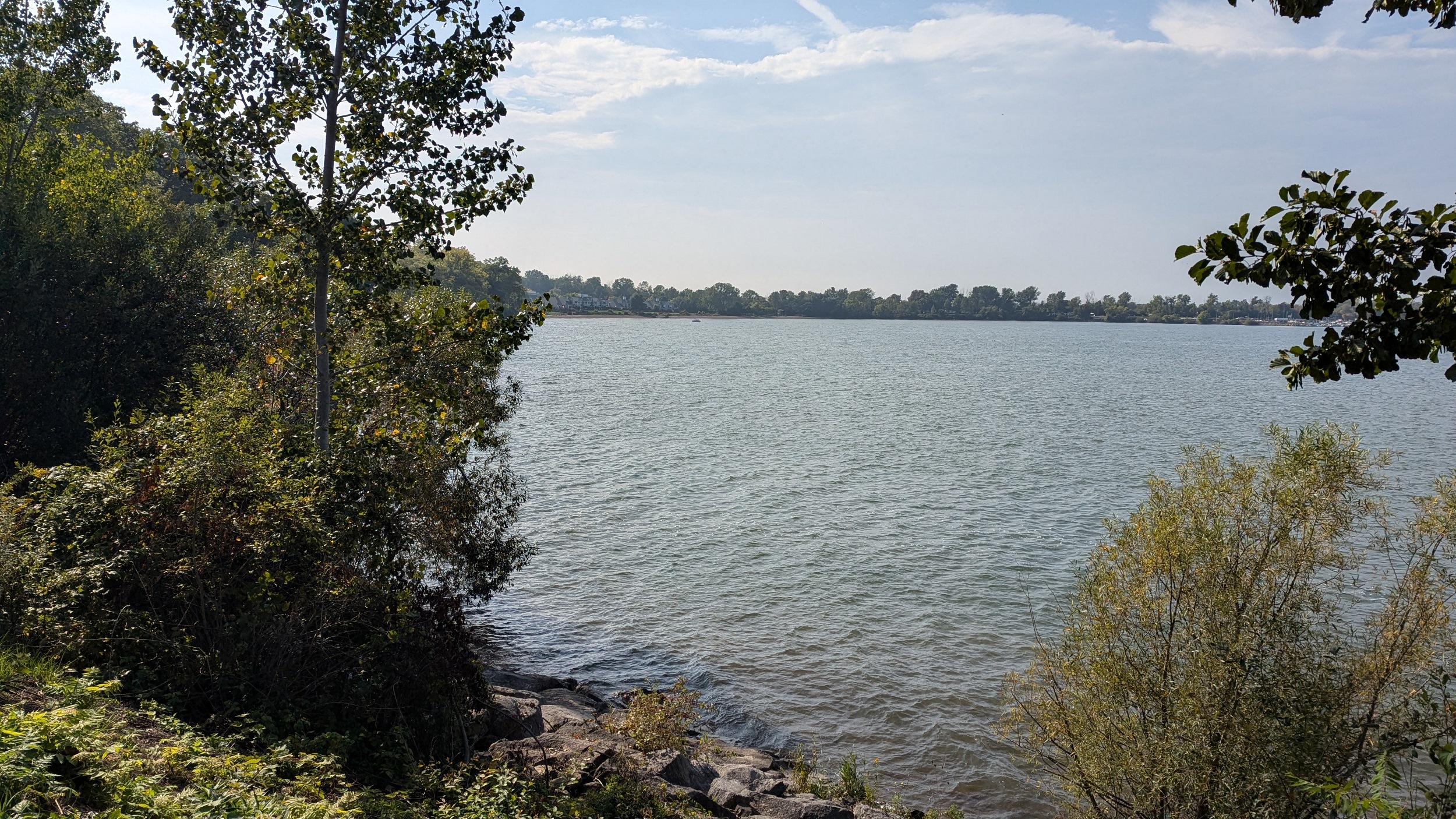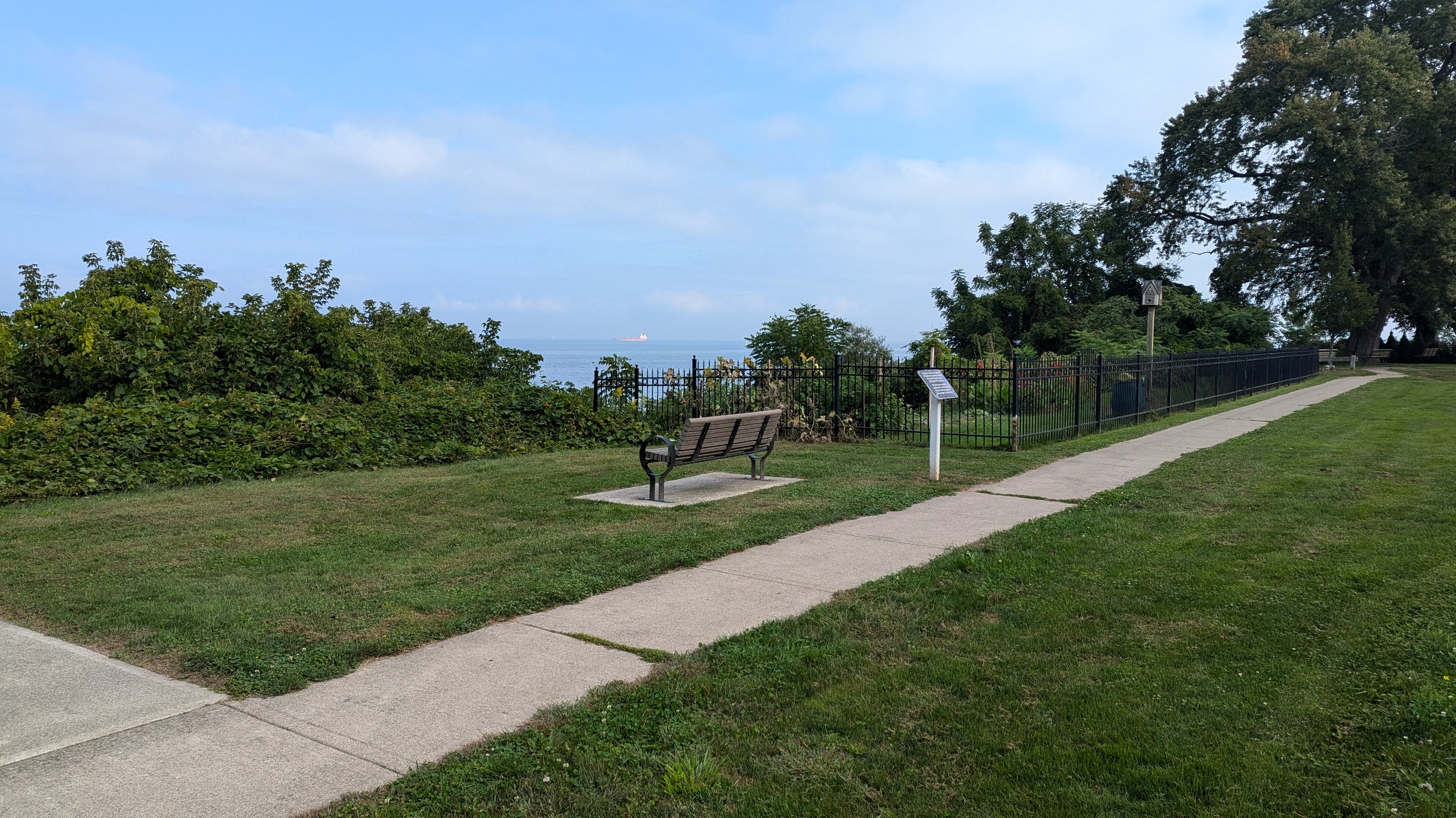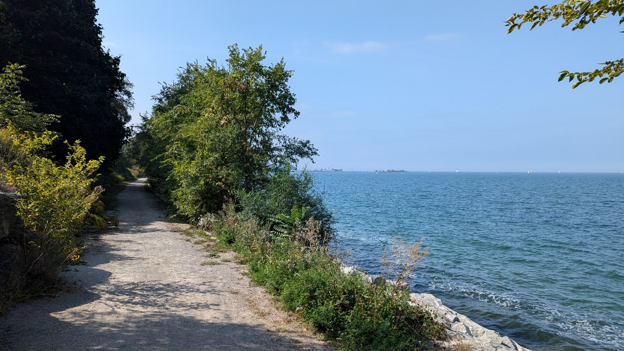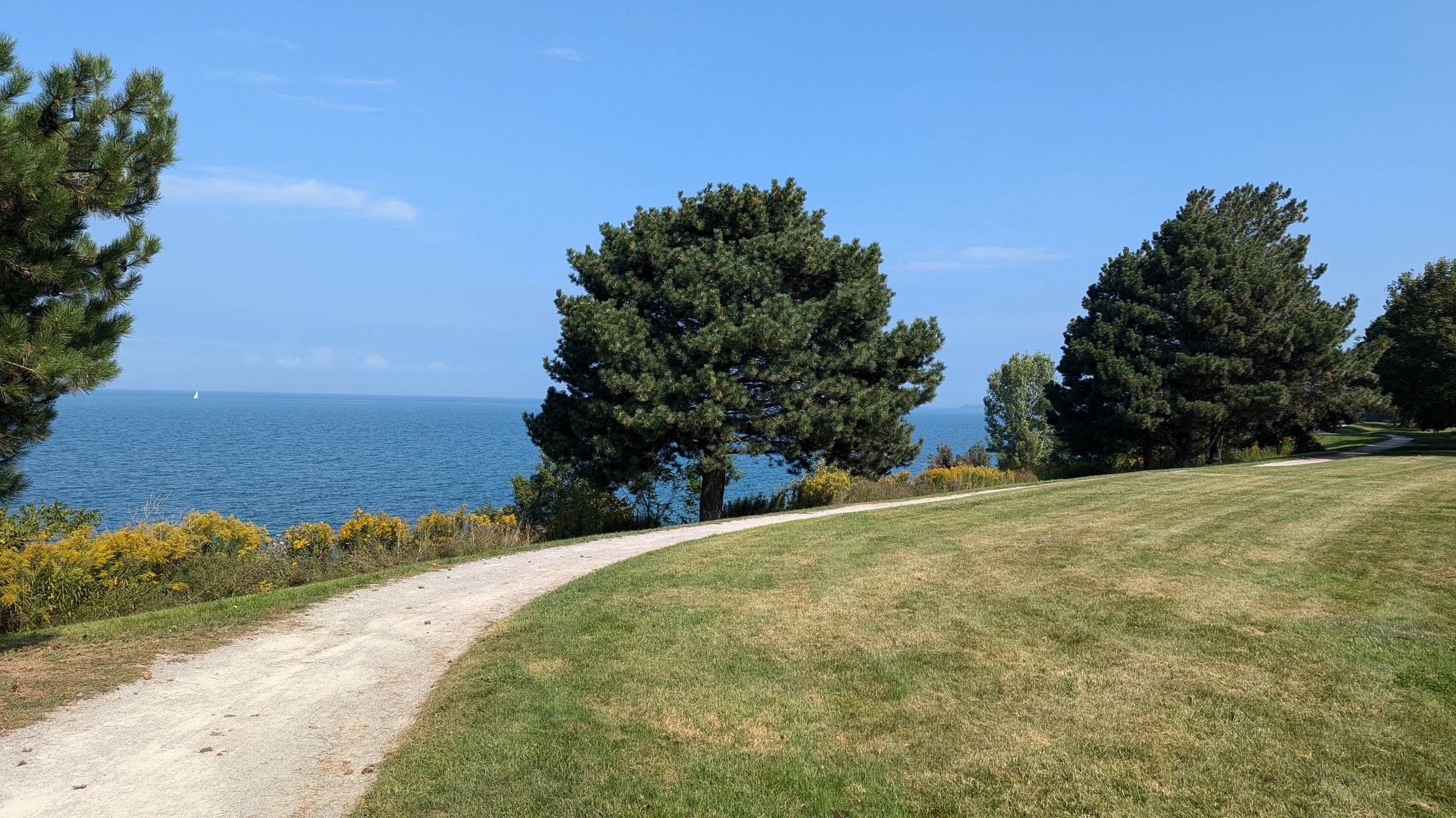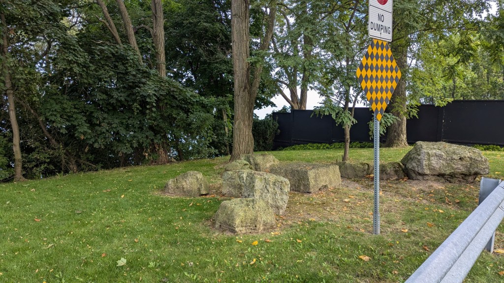The park becomes terraced again after a short break. A wooden bridge leads you over a stream, and little beaches pop up alongside some small groynes. This uninterrupted stretch of shoreline comes to and end because of one mansion on Lantana Circle. Around two more properties at Butler and Vine, and back onto public parkland. Lakebreeze Park has no eastern access so it’s a single point in and out.