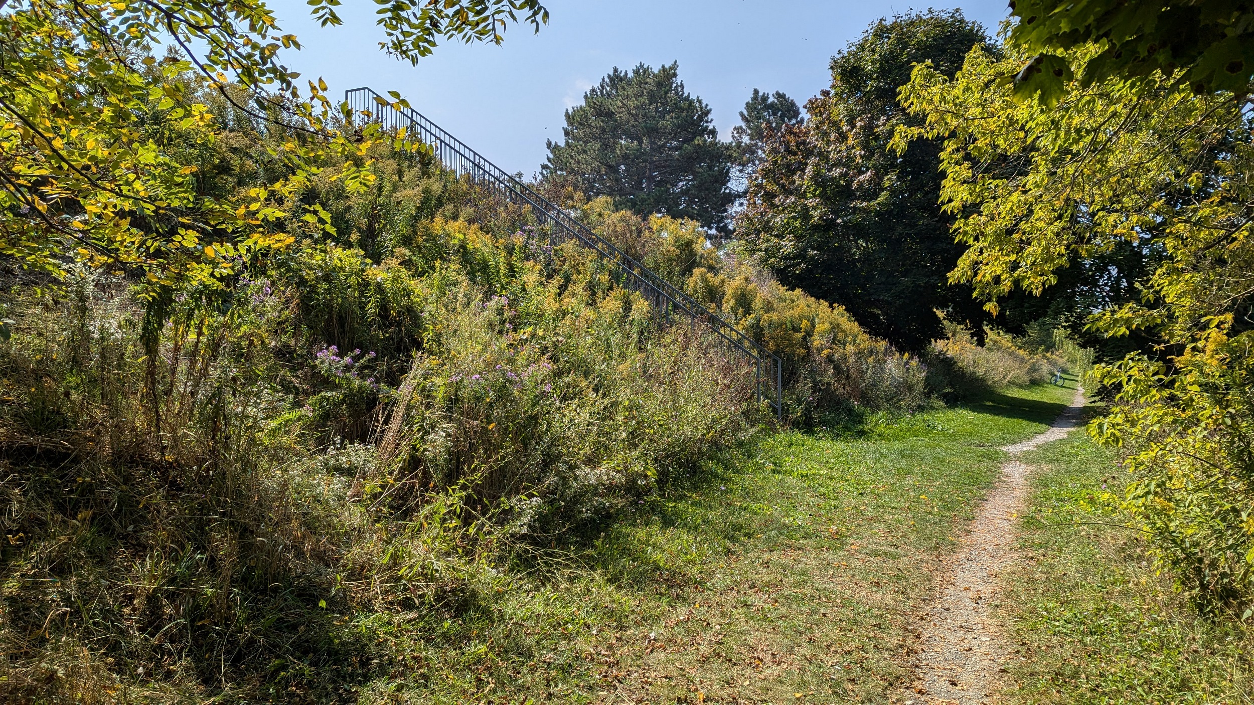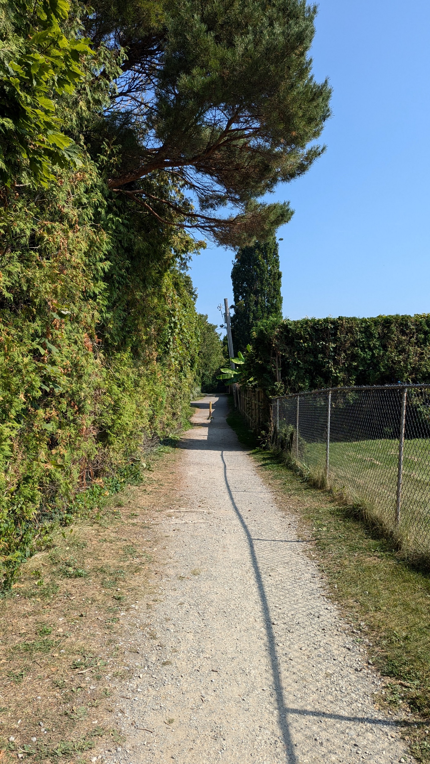 The end of Courtleigh gives you the first glimpse of the lake. Then it’s down Mary Street for a bit until you get to a little longer, but still short, but of parkland behind Tara Court. There’s a city-owned stair here.