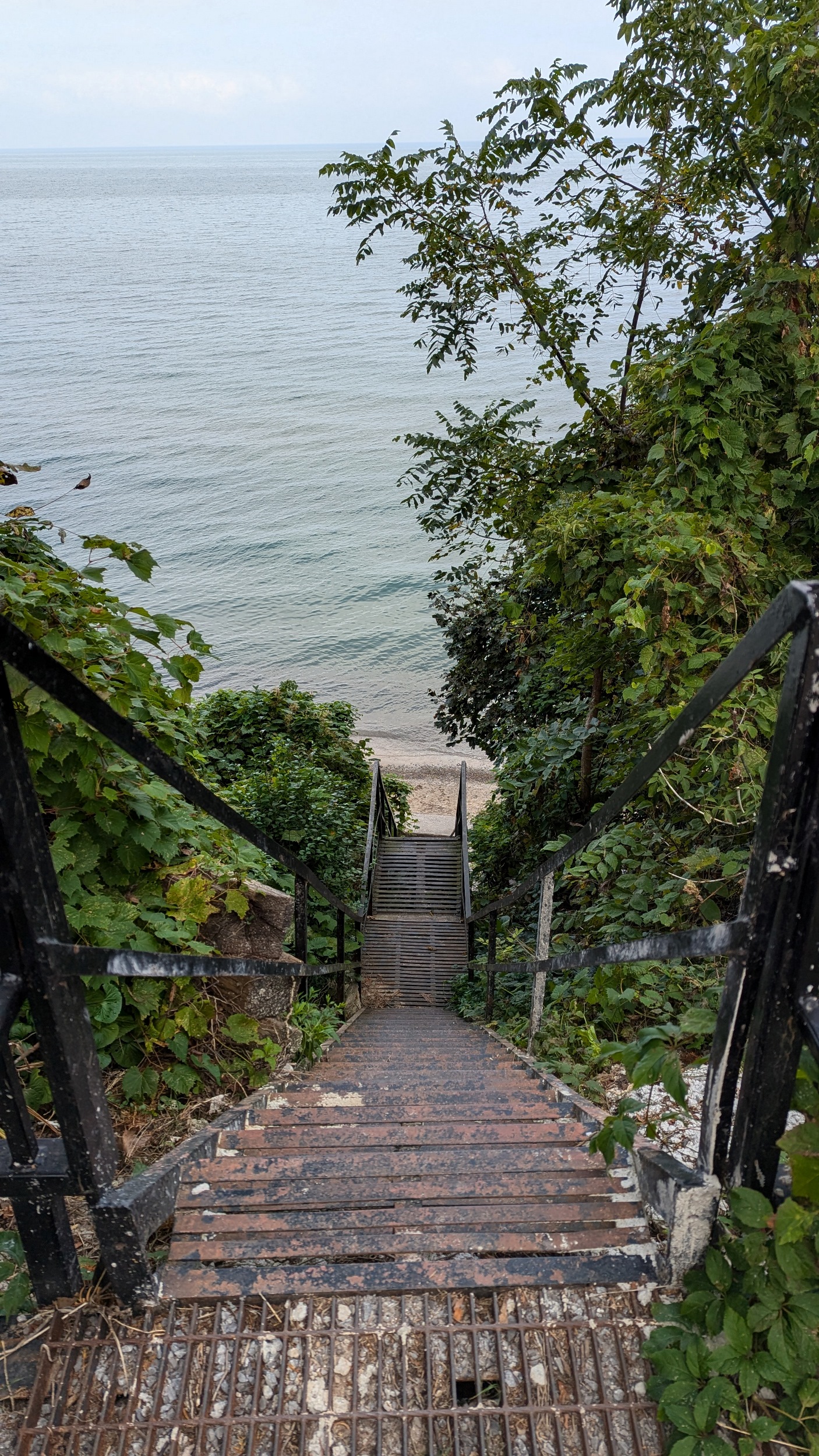 Something unique I’m noticing: there’s a bit of a bluff here, and I’ve now come across many benches and 3 sets of public stairs to the beach. There’s private property on both sides, but it’s stickered rather than fenced. It’s surprising to see this much effort to encourage access to small slivers.