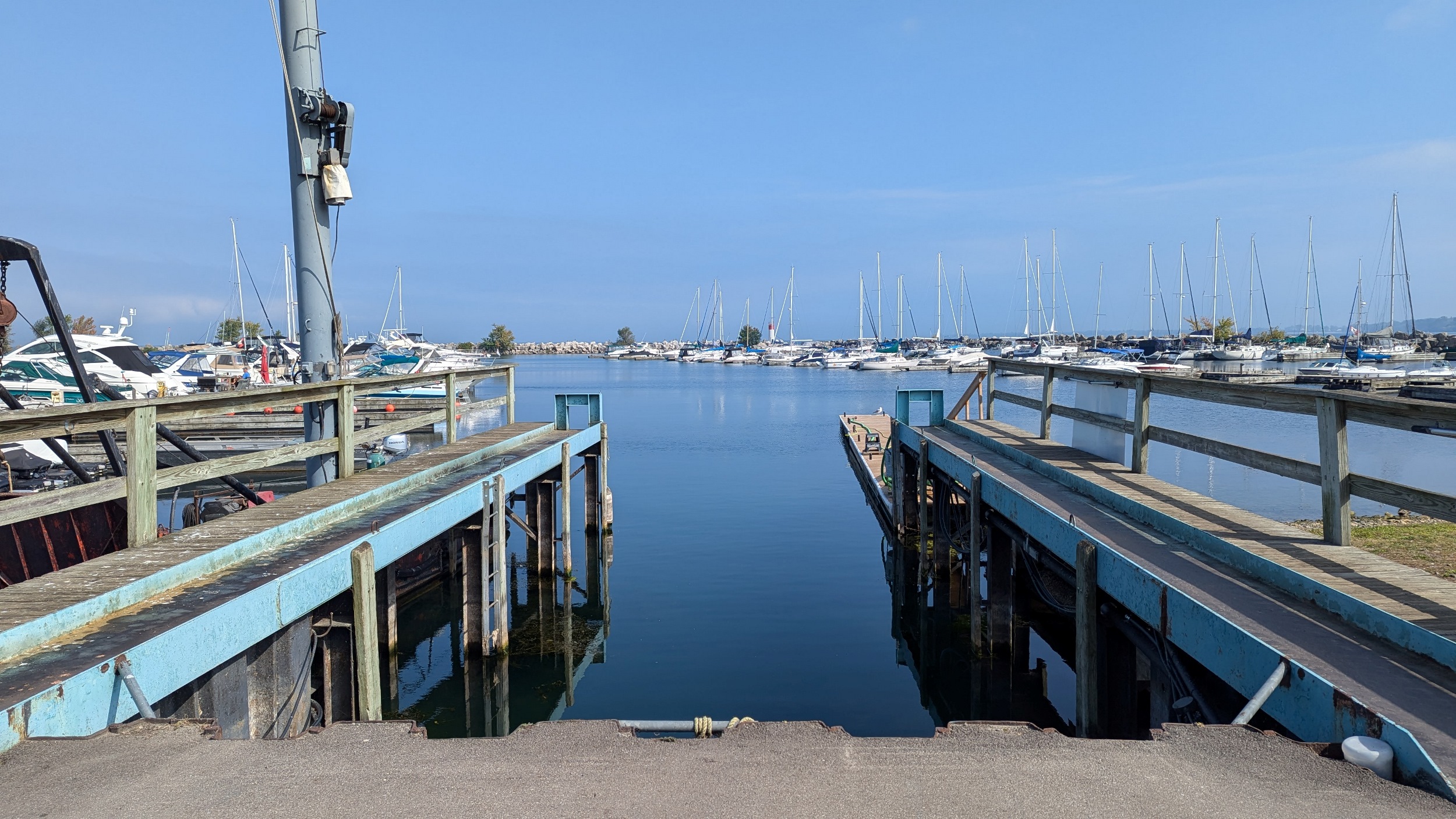 Much like at 12 Mile Creek, it’s a detour to get around to the east pier. This time around, it’s longer and more industrial than quaint little Port Dalhousie.