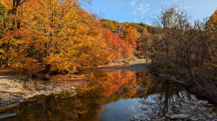The bluff gets a bit higher and there’s signs of erosion. No more encouraged access, but there’s still seating provided at the ends of these roads.