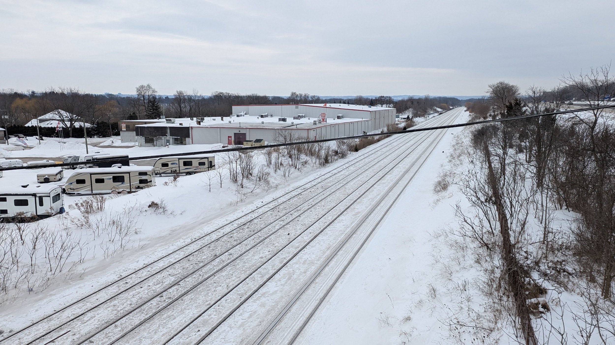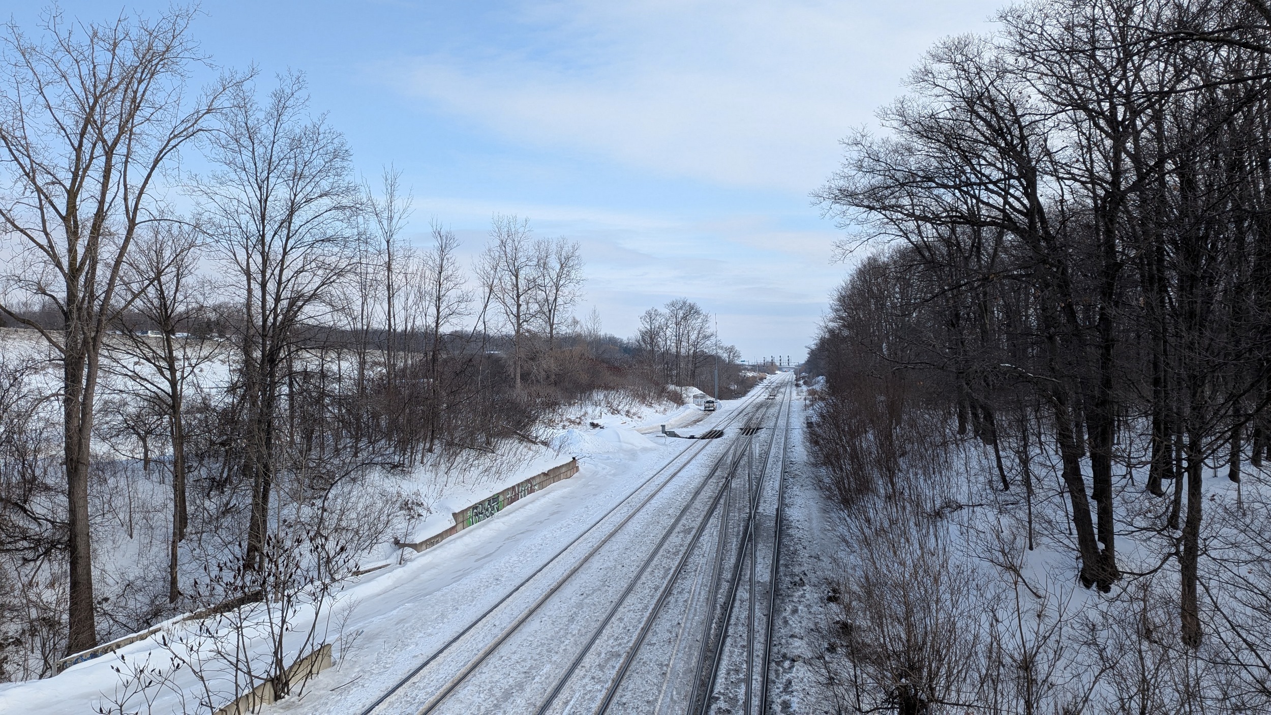 Well, I’m off to a bit of a rough start, thanks to the significant snowfall. The Grindstone Marsh Trail was fairly beaten down, but the path to Snake Road wasn’t. Quick glimpse over the tracks, and then a bit of a detour.