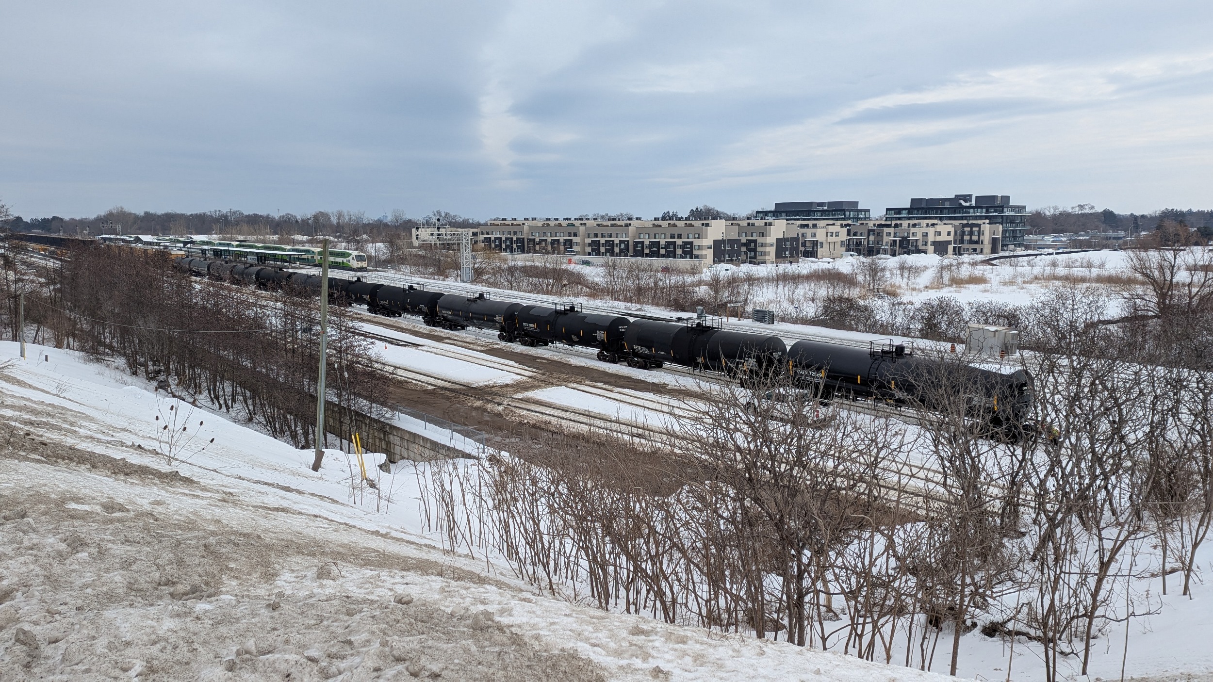 Over the tracks again and through Aldershot Station. This is not only a transfer hub between GO and VIA trains, but it’s also a freight yard for Canadian National (CN). And until a while ago, it was also desolate. Some housing is now in the vicinity, but the area has a long way to go.