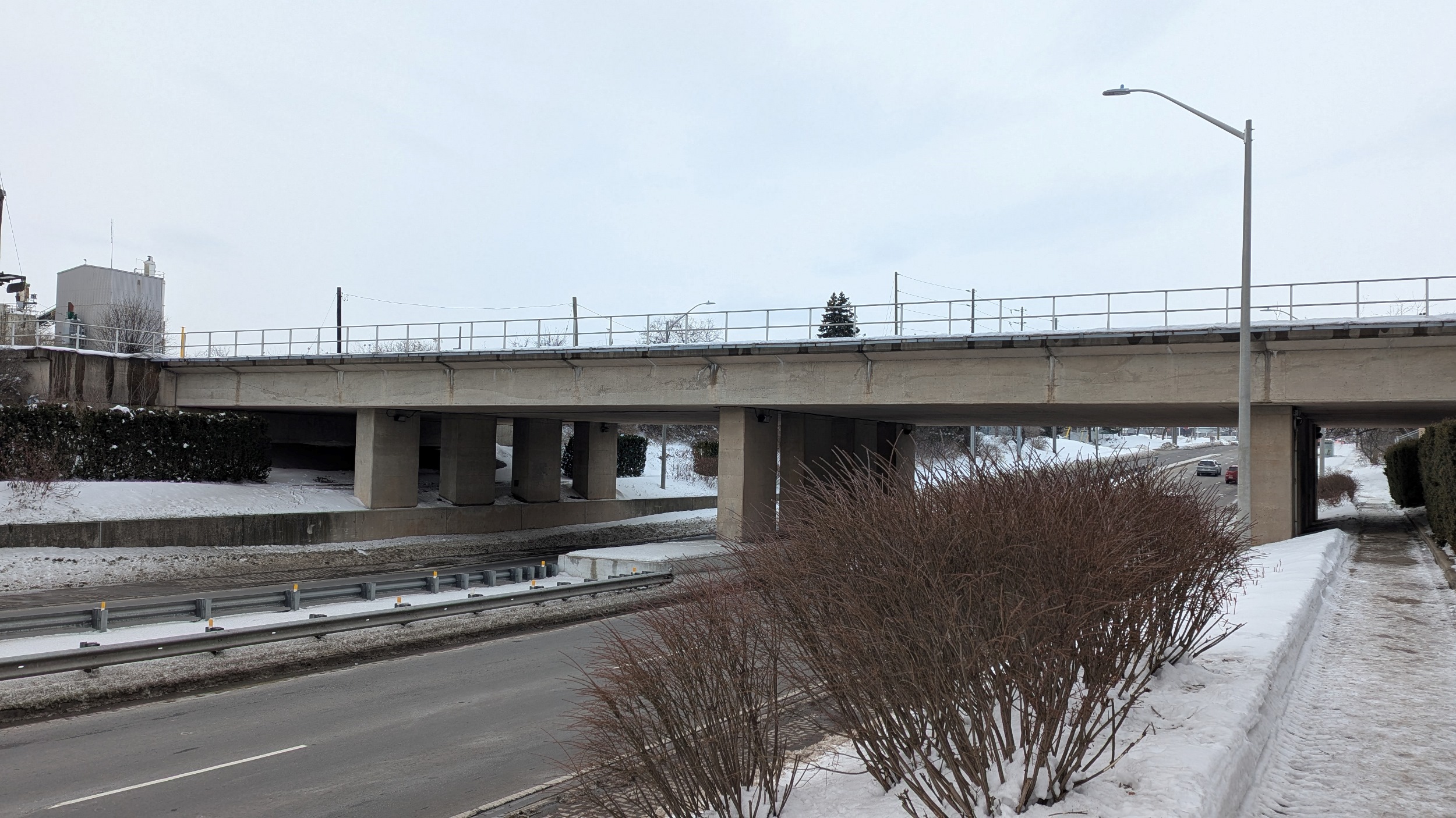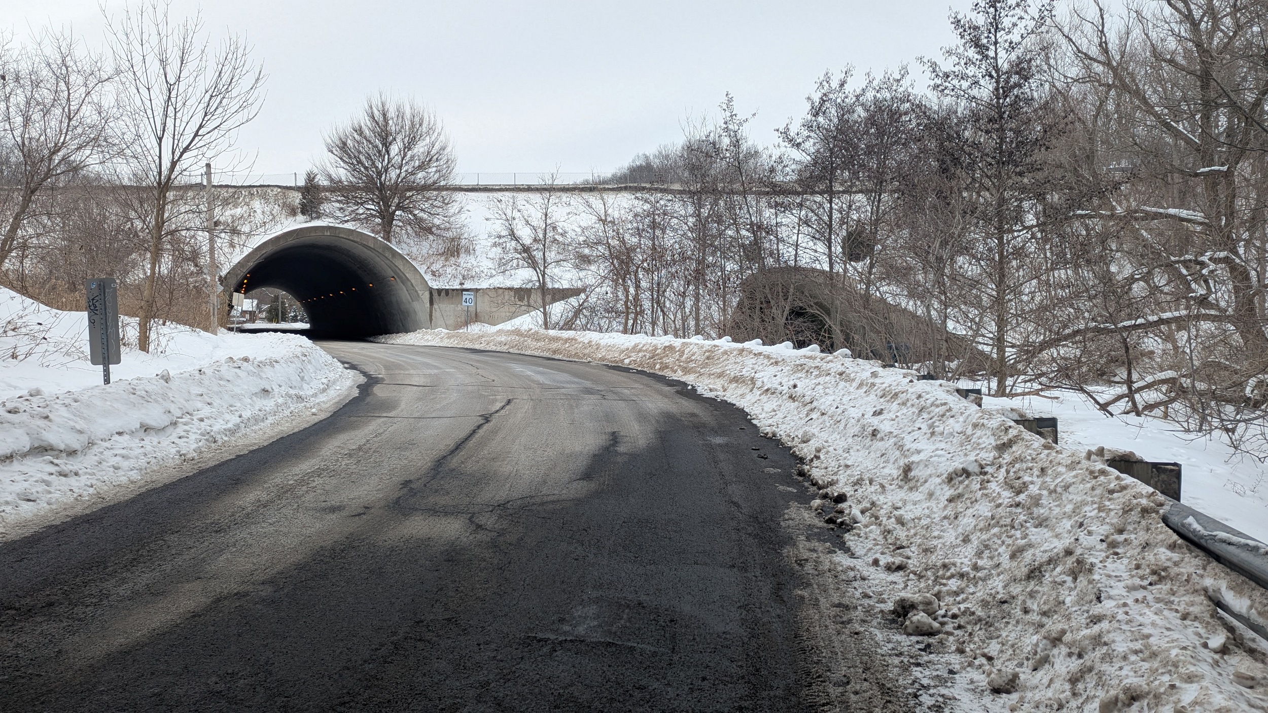 The long detour ends at Lemonville Road, where you get a good glimpse of where the tracks parallel Highway 403. A peek at the bridge and highway tunnel at Hidden Valley Road, and then onwards to Waterdown Road.