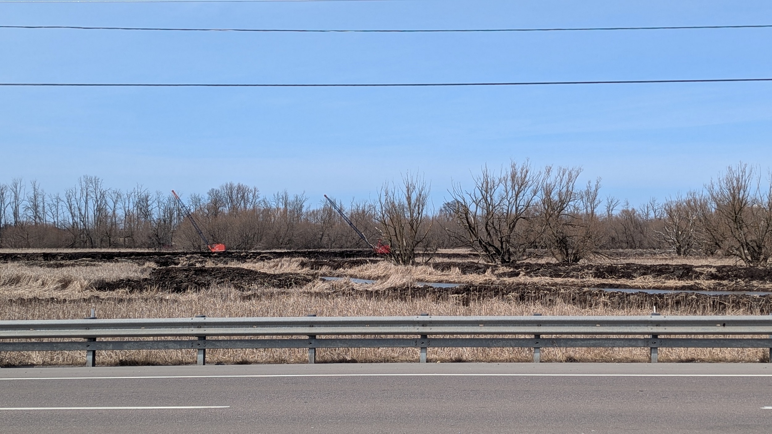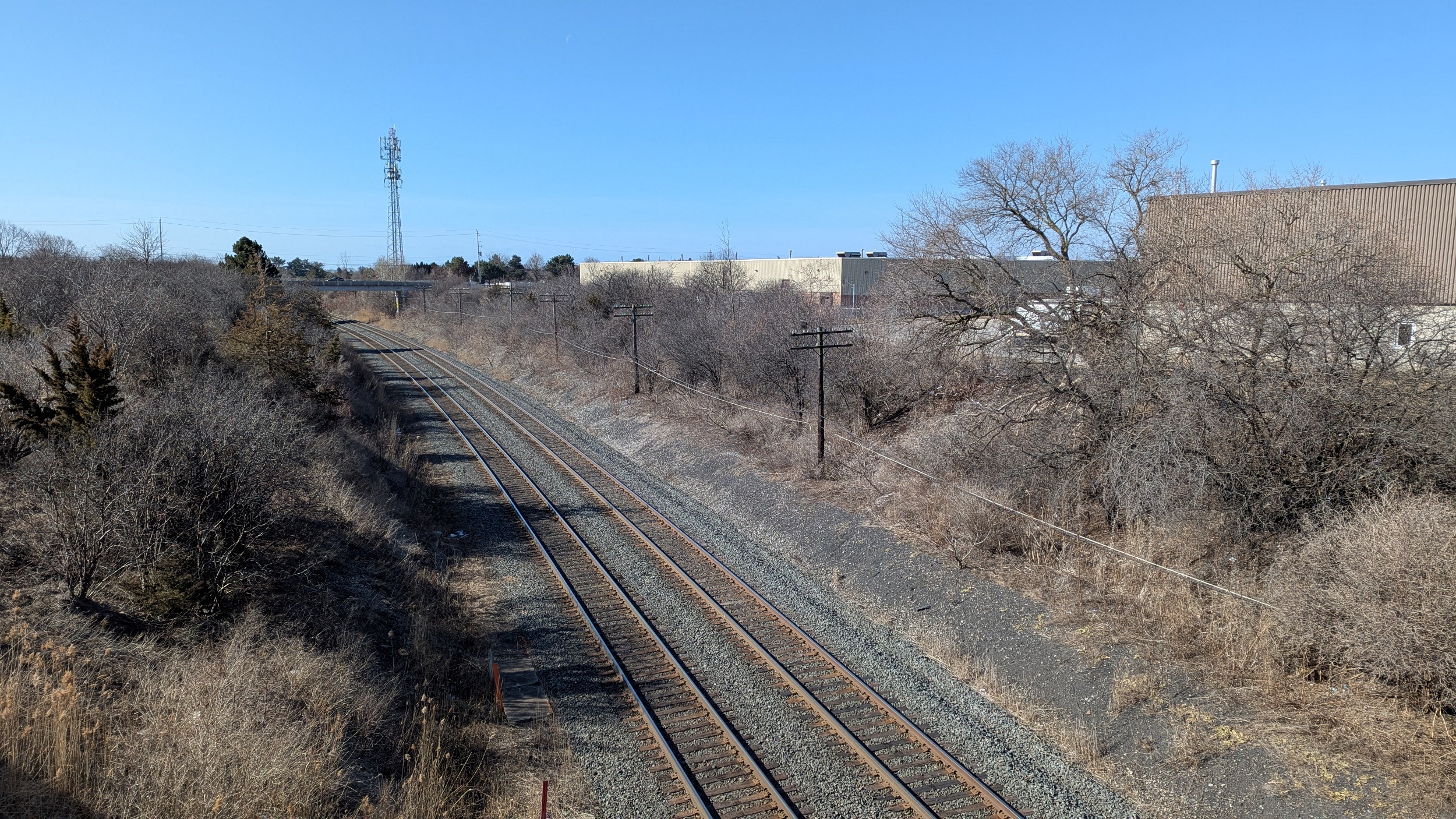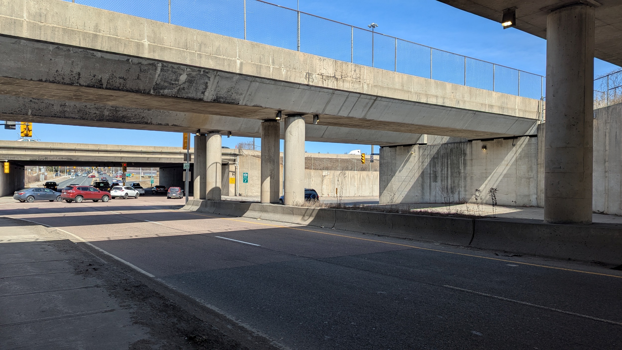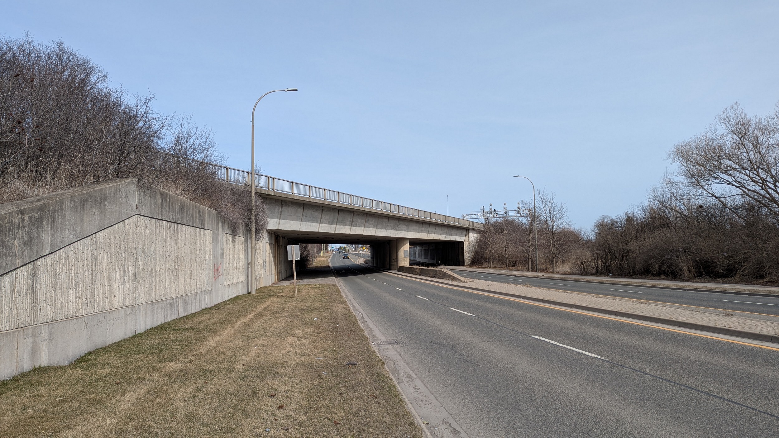 A glimpse at Harwood, then at Salem. It’s quite the corridor here, with the highway, rail lines, drainage works, electrical distribution, and frontage roads, as well as likely pipelines and other conduit. Makes it all ~150+ metres.