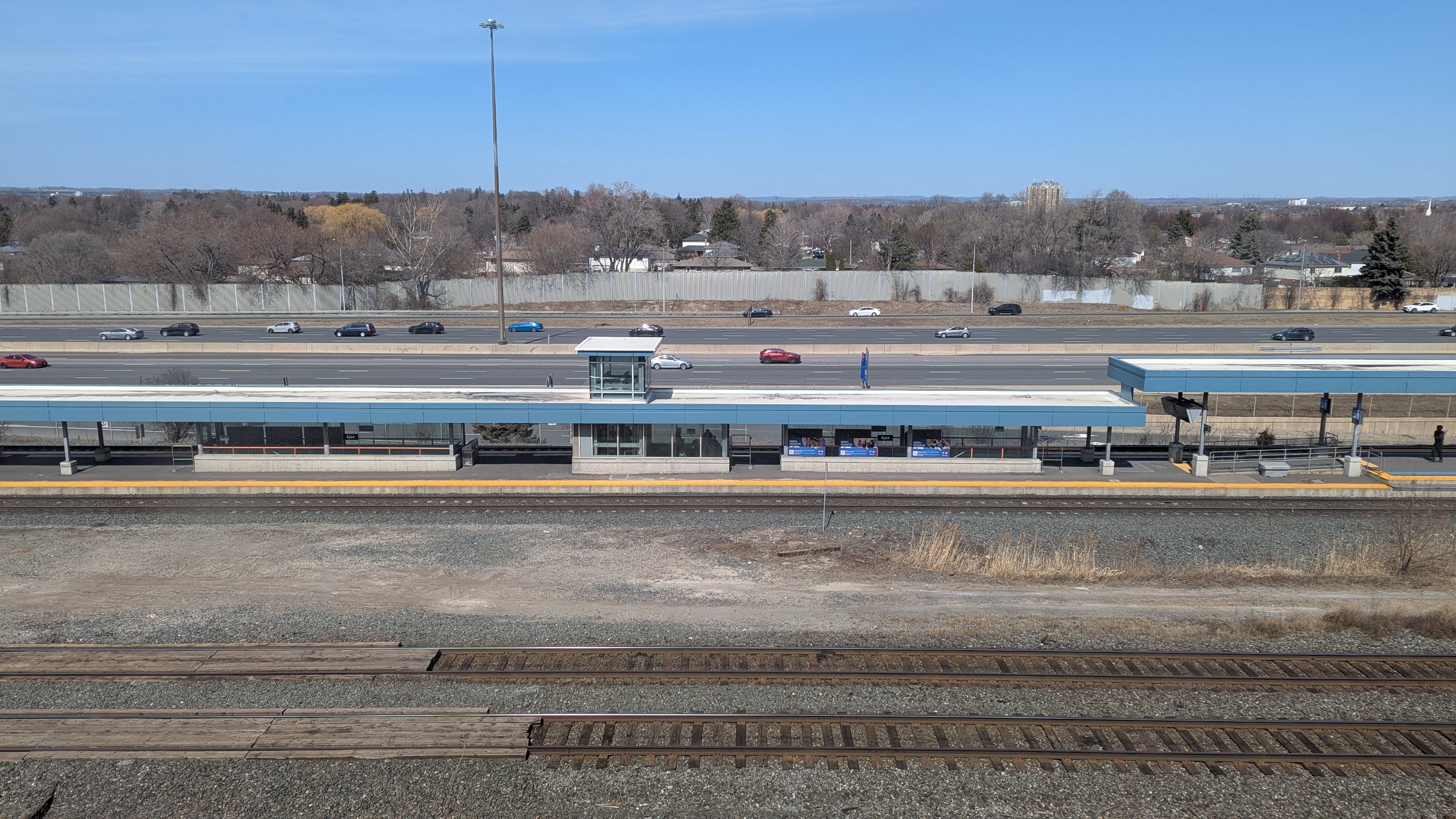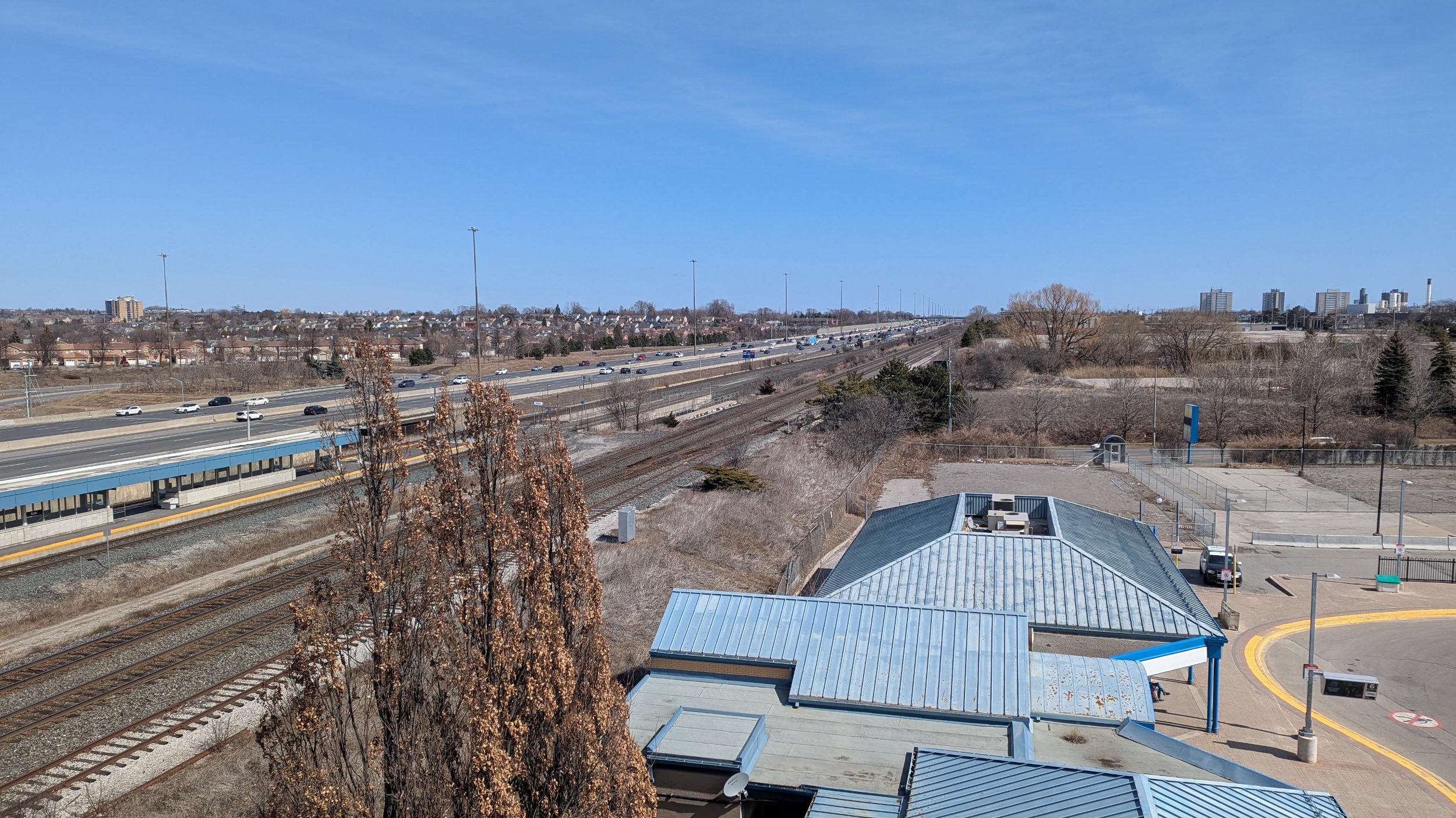 At Westney Road, you pass through a brutal superstructure for the 401, it’s associated interchange, and both sets of tracks. Station buildings look like they haven’t been touched since 1988. Then it’s east again along Fairall, past the Ajax Spur.