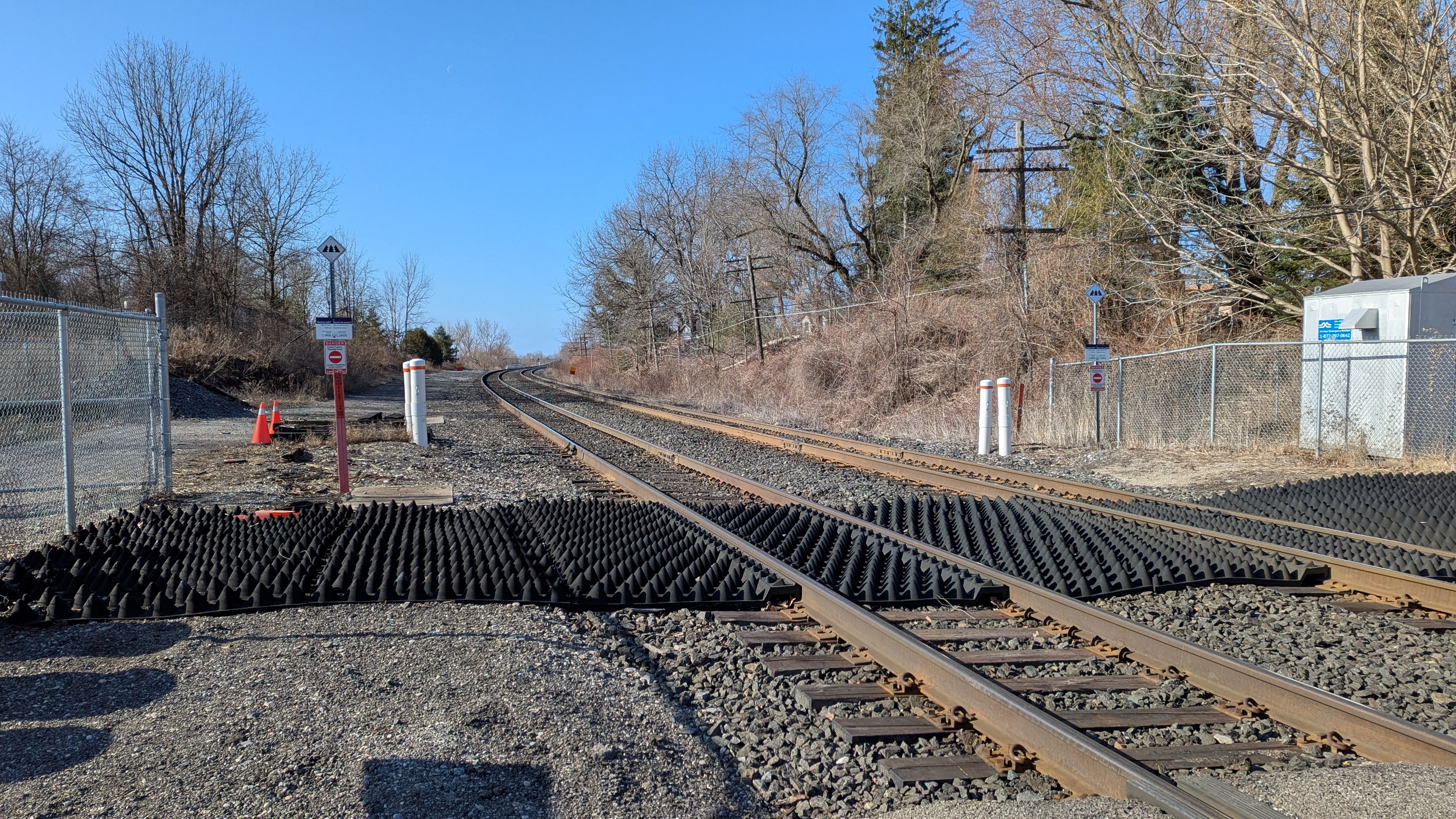 The tracks sweep up adjacent to Highway 401 to Durham Junction. Here, the Kingston and York subdivisions meet; west of here, GO trains follow the former, and CN freight trains go on the latter to bypass Toronto. East of here, CN follows the former, and GO trains go on their own parallel tracks.