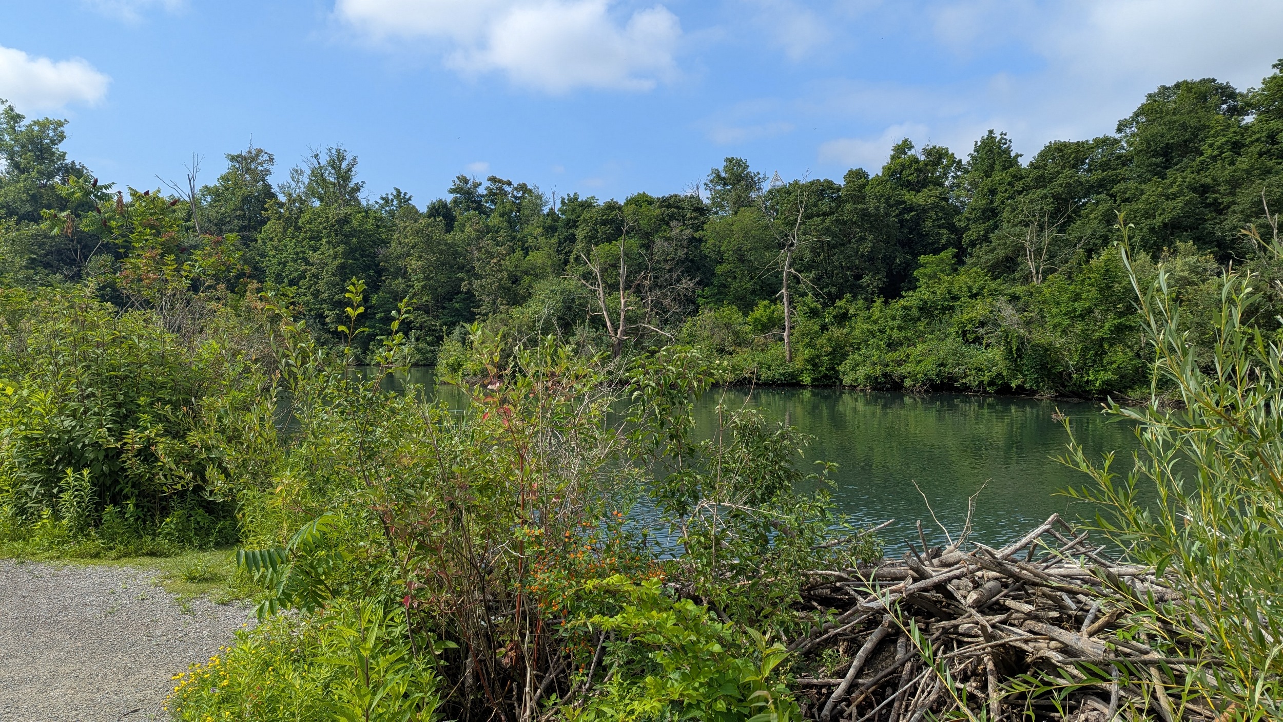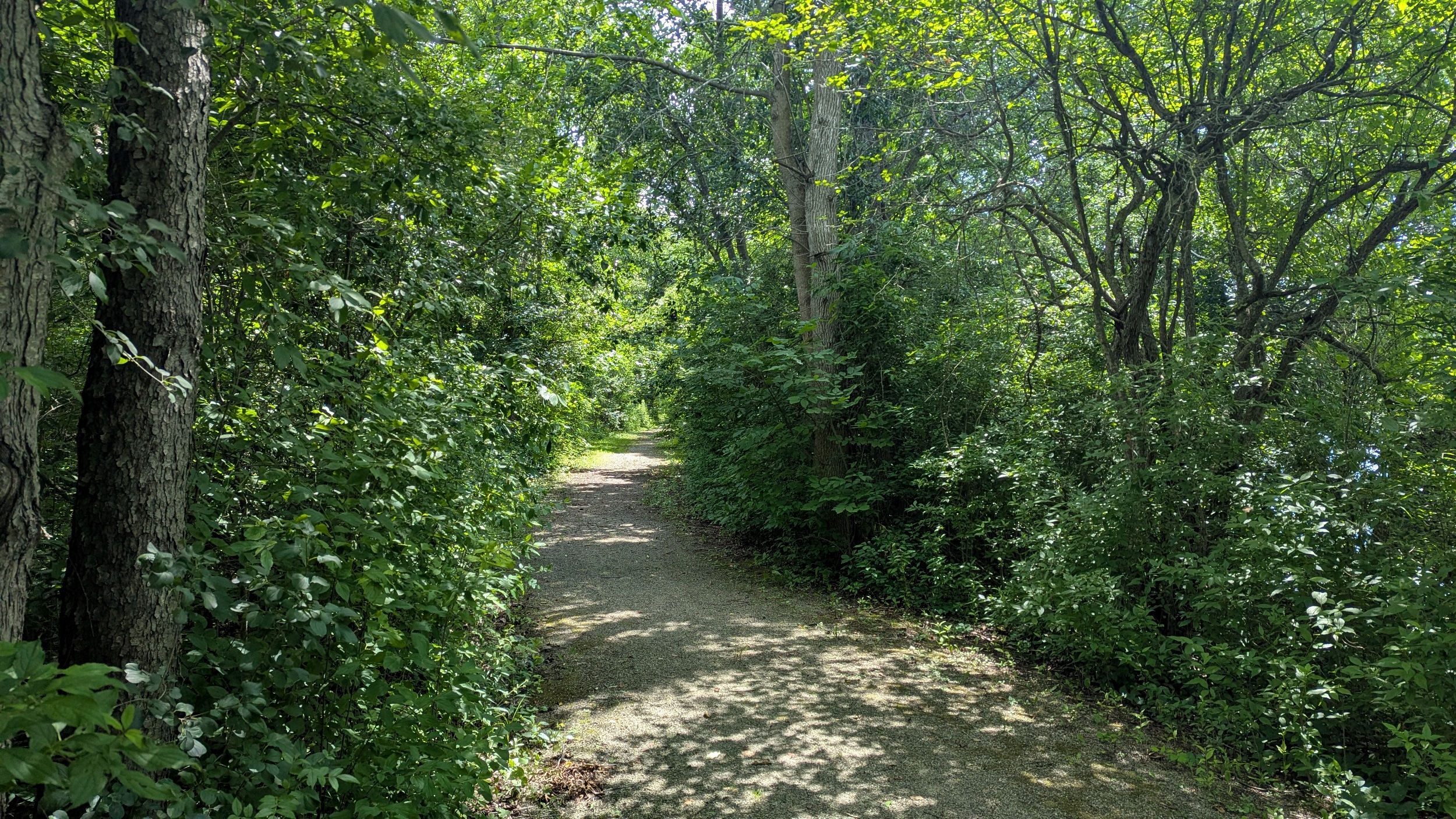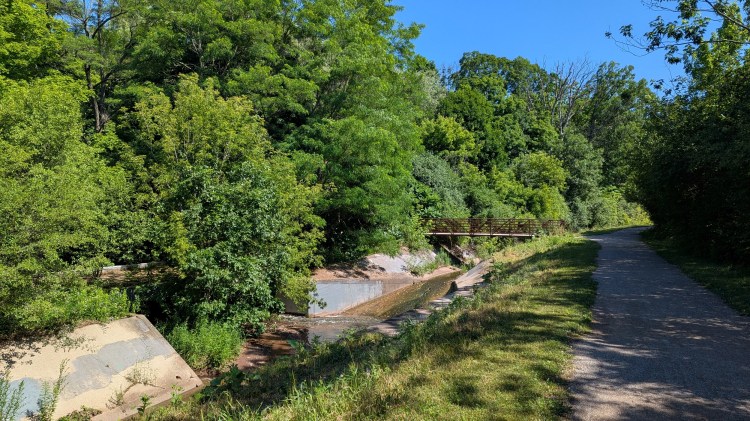 I get back to a formal trail, which is relatively new and a government collaboration. An east-west utility corridor of some sort intersects the trail and power canal, letting you take a jog closer to the canal. I can hear it, I can smell it, but I still can’t see it.