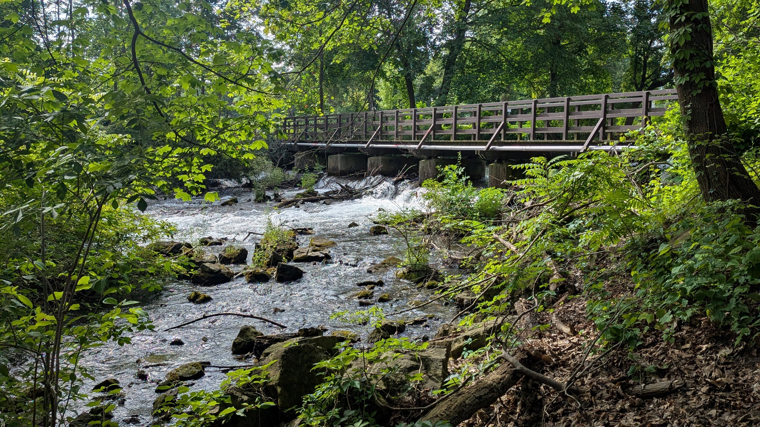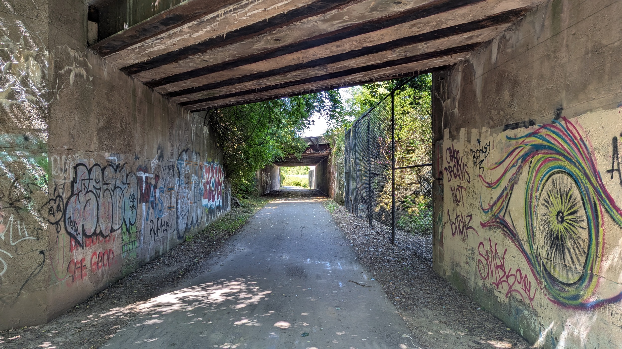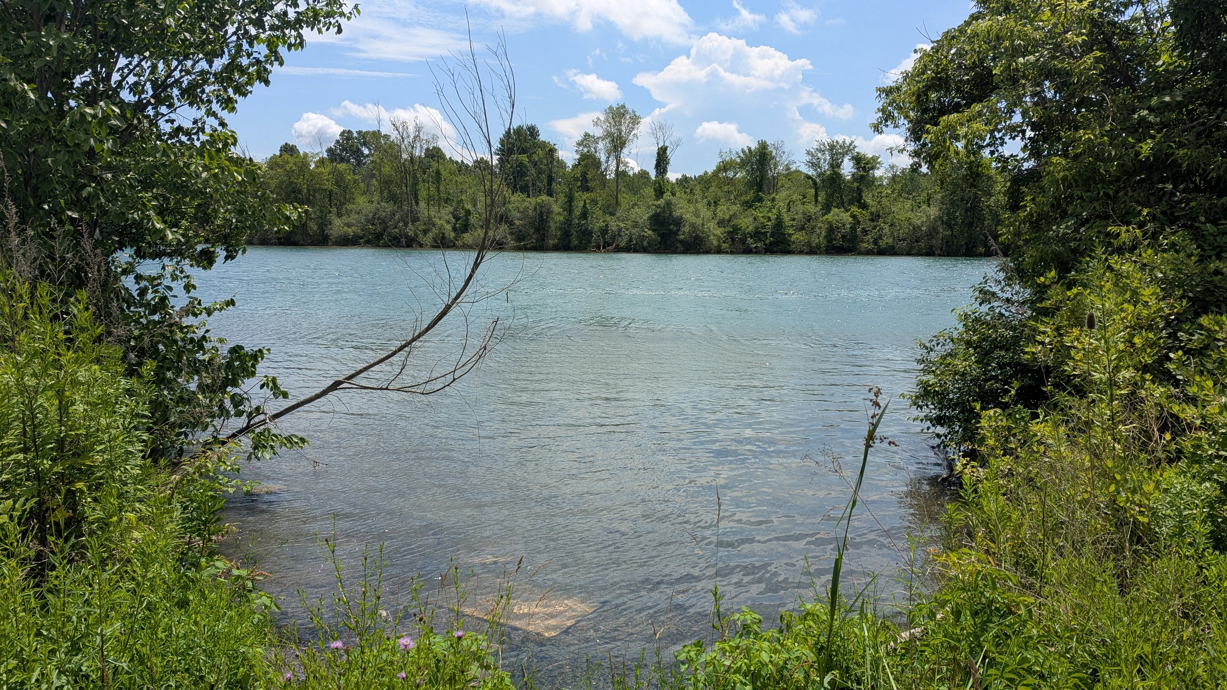 I get back to a formal trail, which is relatively new and a government collaboration. An east-west utility corridor of some sort intersects the trail and power canal, letting you take a jog closer to the canal. I can hear it, I can smell it, but I still can’t see it.