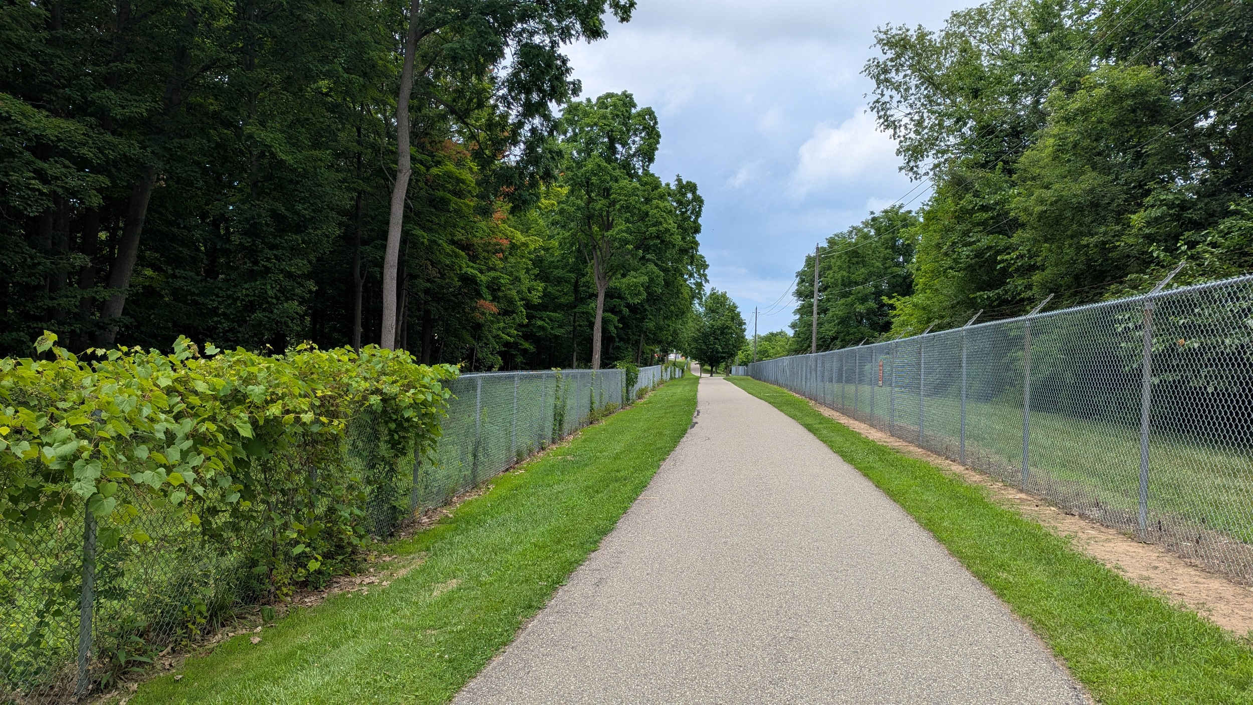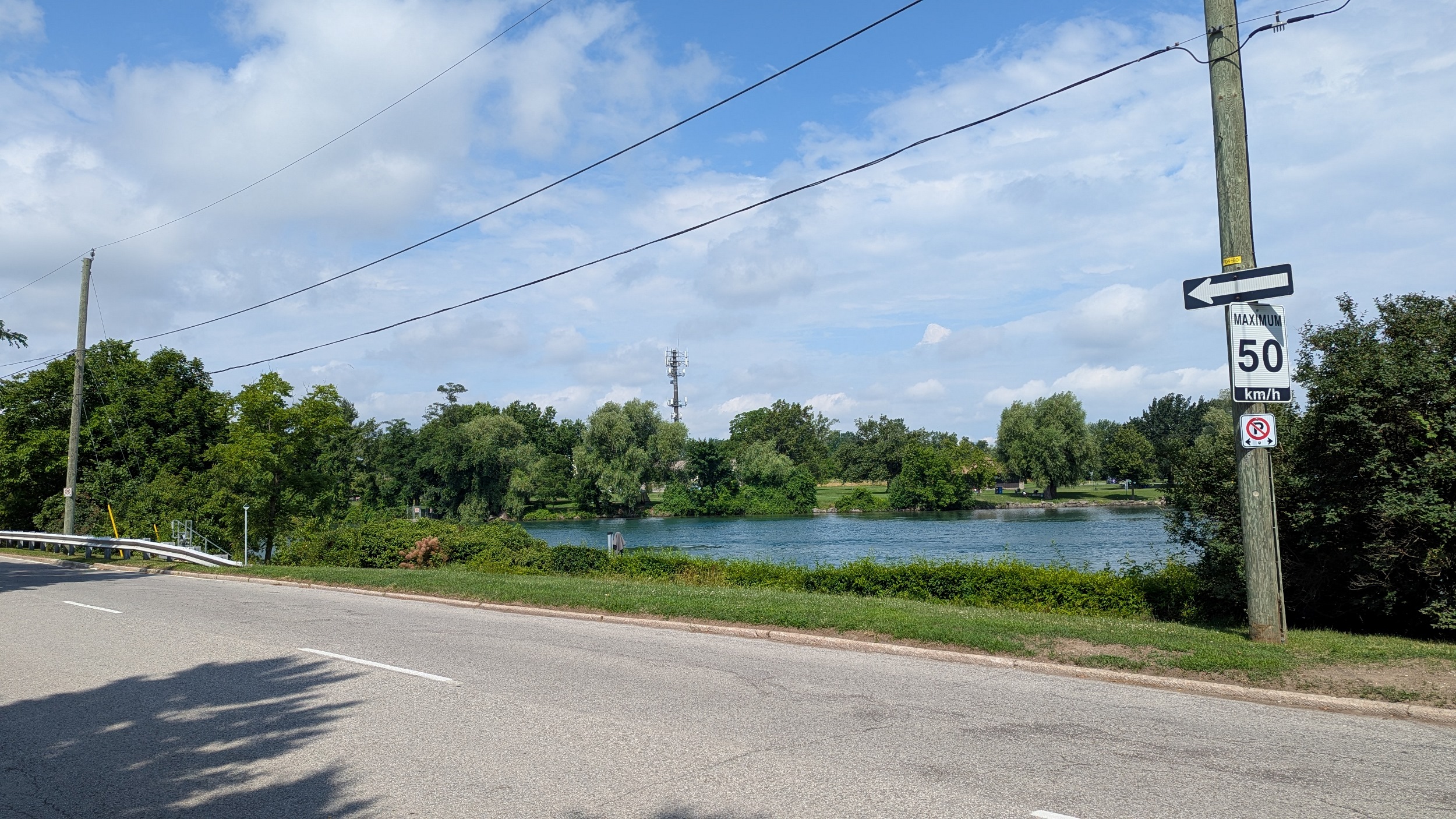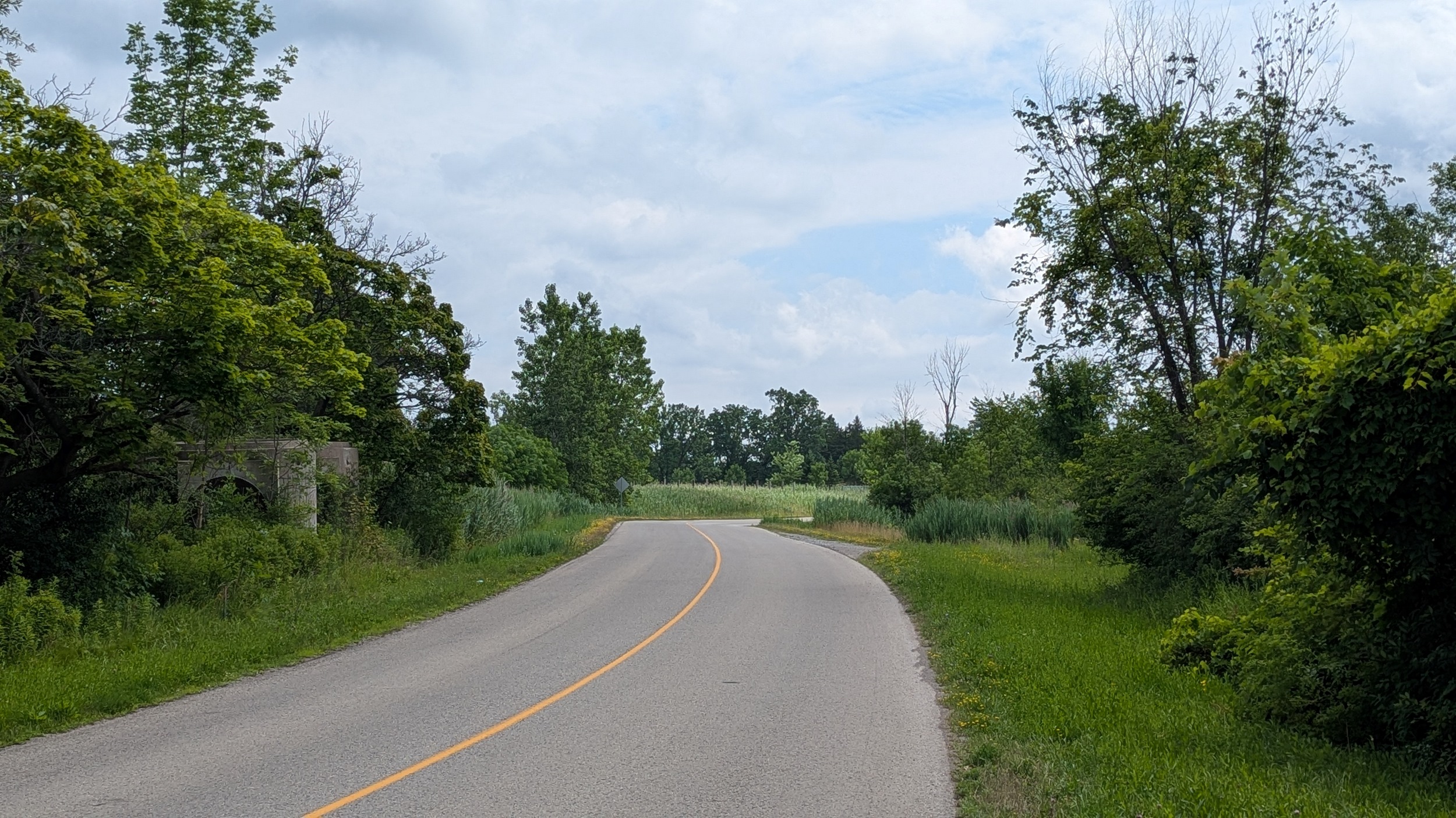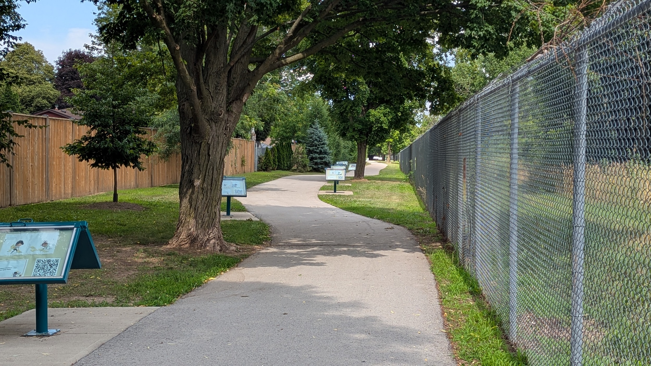 Continuing west along Chippawa Parkway, you come to George Bukator Park. This finally establishes formal riverside trails, which are stonedust and allow for some shade and cool breeze, just what’s needed on a hot muggy day like today. There’s a couple gaps but it’s fine on such a chill road.