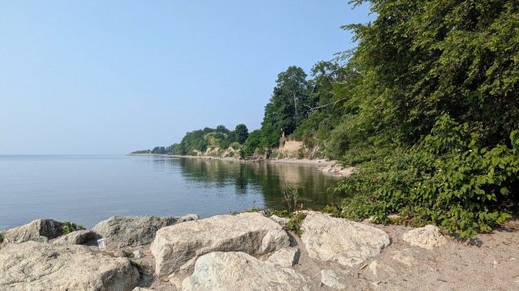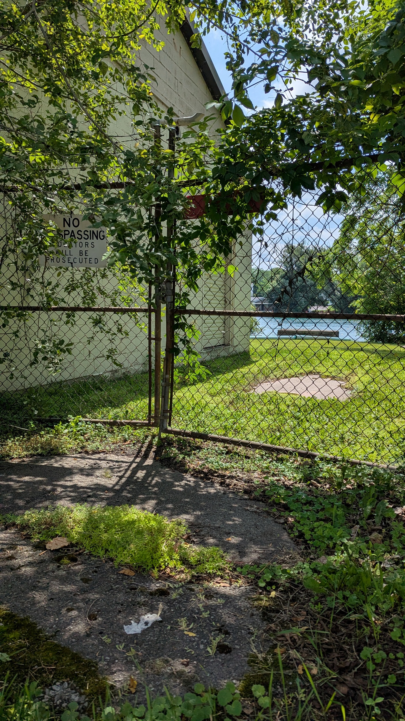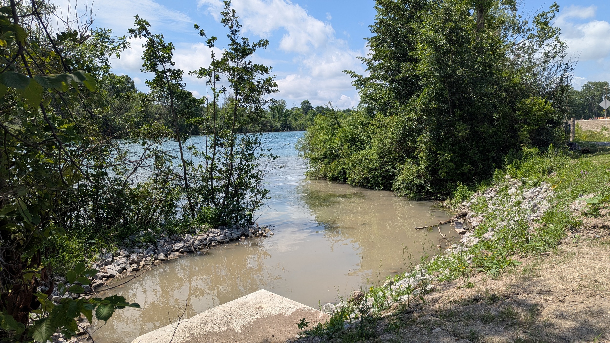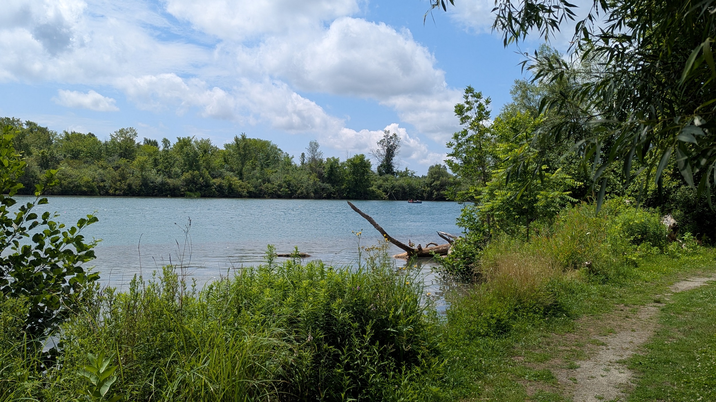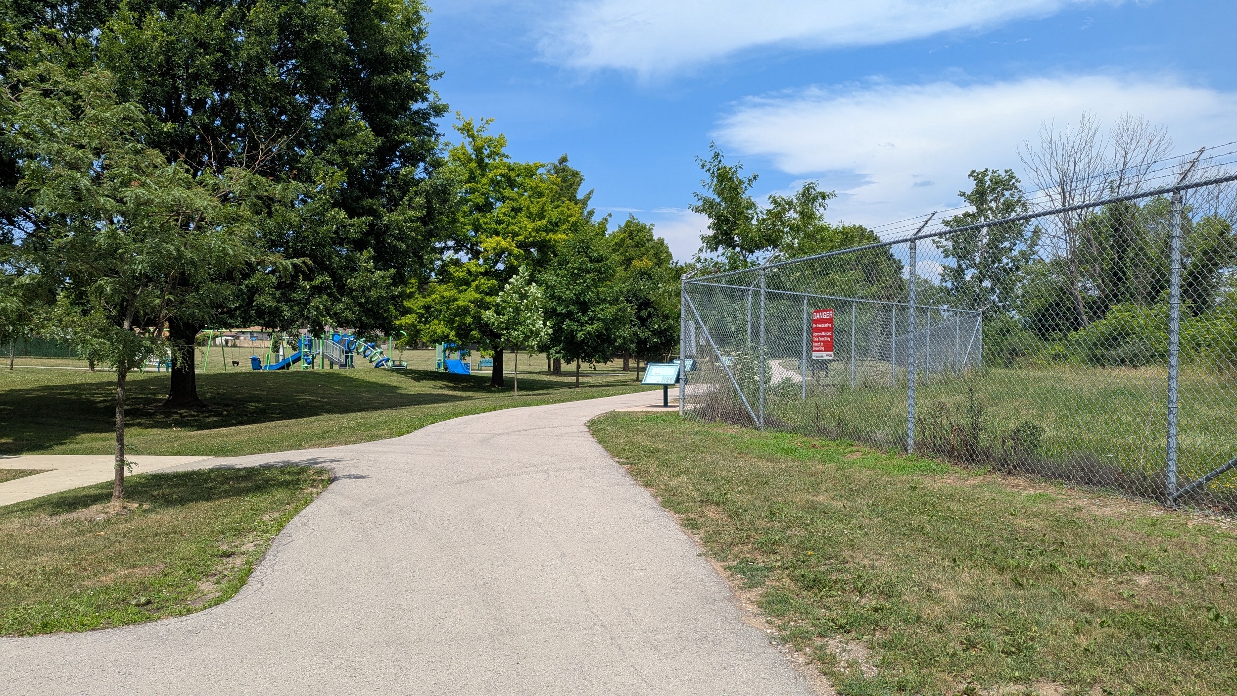 Continuing west along Chippawa Parkway, you come to George Bukator Park. This finally establishes formal riverside trails, which are stonedust and allow for some shade and cool breeze, just what’s needed on a hot muggy day like today. There’s a couple gaps but it’s fine on such a chill road.