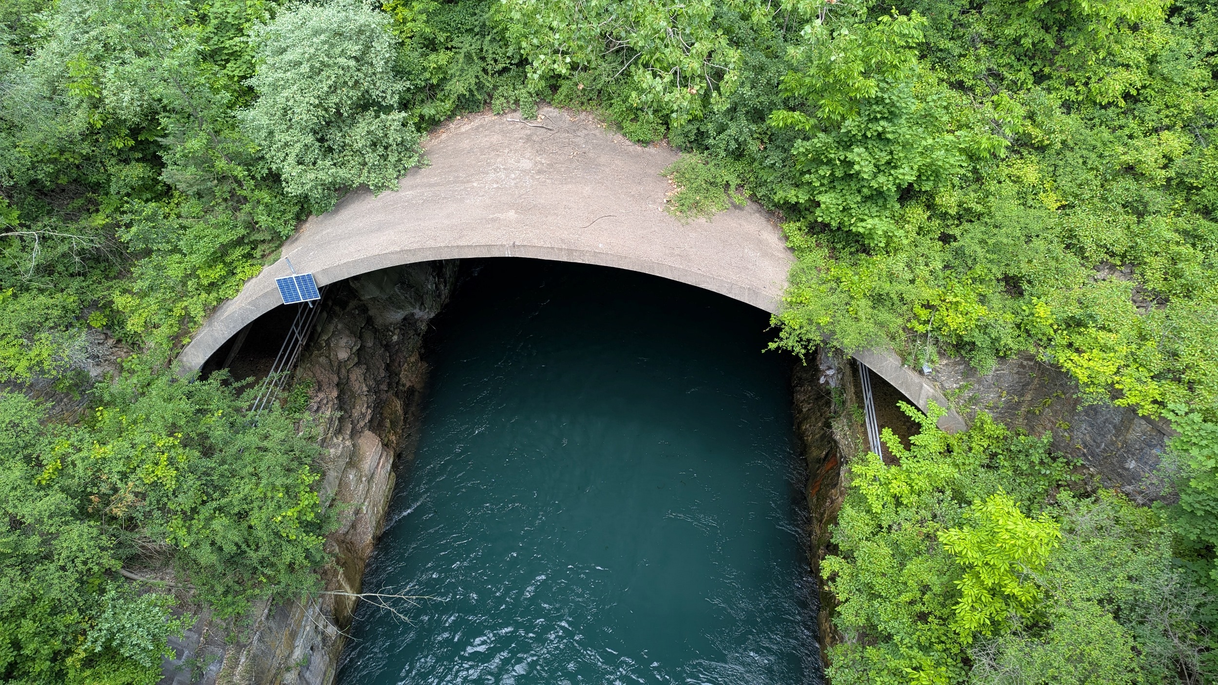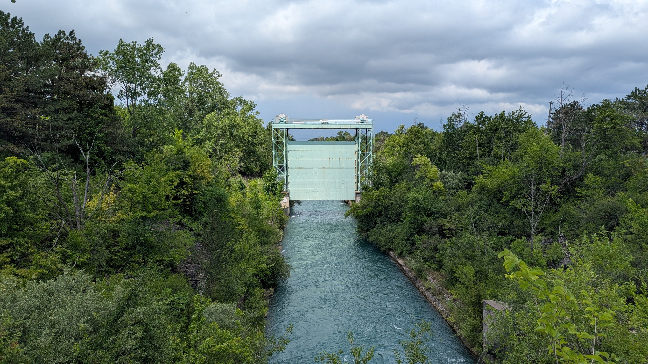 Further up, we come to the structures that are actively used for hydro. These are the inlets to three underground tunnels leading to the Beck Generation Stations. It used to be two, but a third was completed upstream of the International Niagara Control Works in 2013. These gates show you how immense the tunnels are.